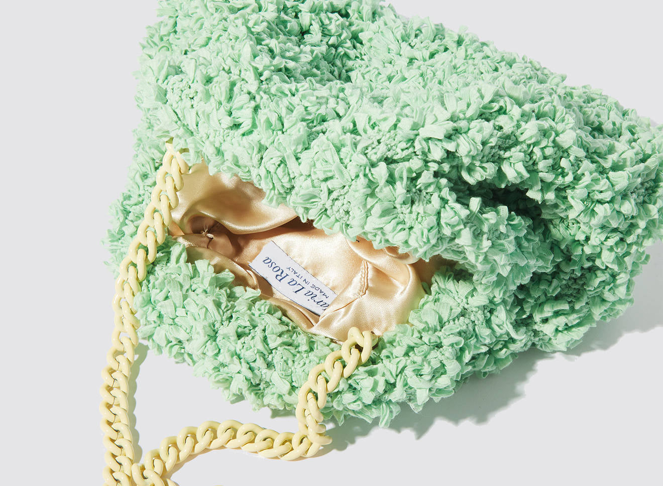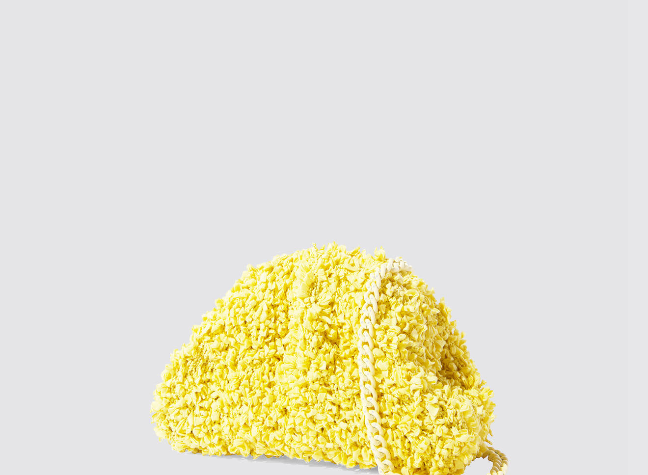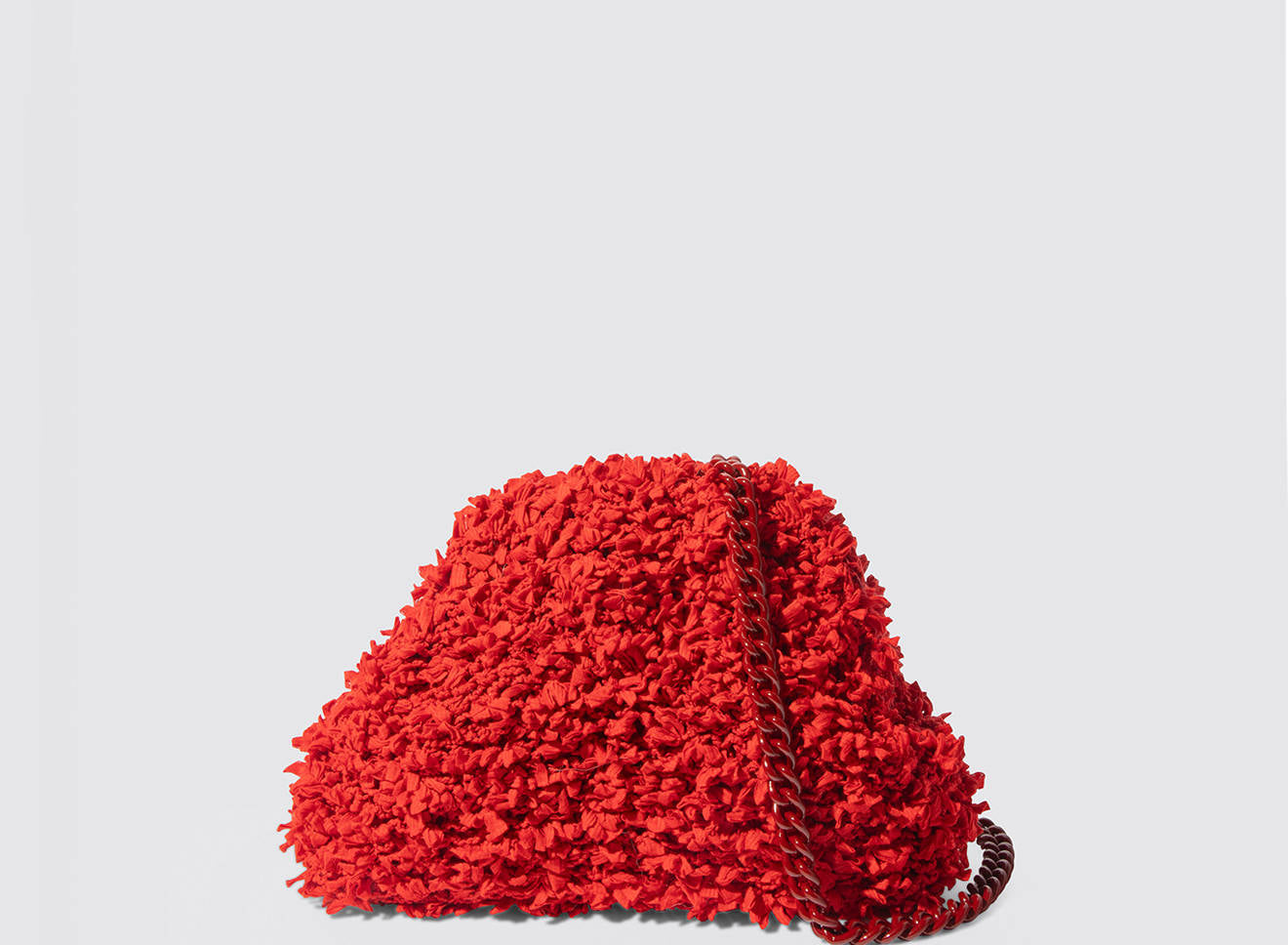 Il tessuto lavorato a maglia, con una texture ricca e tridimensionale, rende questa clutch l’accessorio perfetto per aggiungere un tocco di originalità a qualsiasi look. La silhouette compatta ma capiente la rende ideale sia per il giorno che per la sera. Dotata di tracolla a catena, può essere portata a spalla o a mano, offrendo una versatilità senza compromessi.
