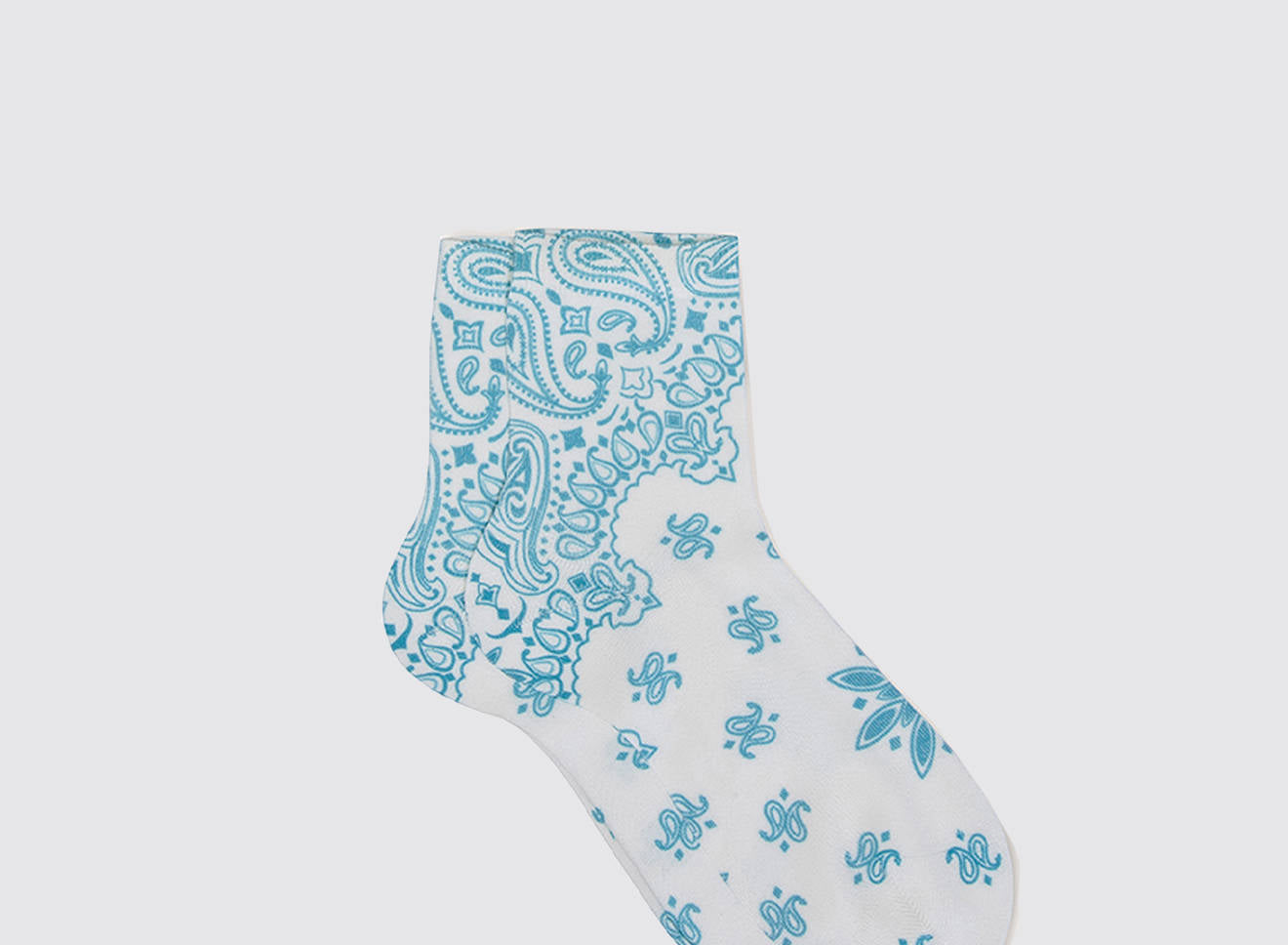 Calzini da donna, realizzati con il pregiato filato di seta. Questo classico Maria La Rosa, ideale per tutte le stagioni, è stato stampato con fantasia bandana, per uno stile senza tempo, rivisitato in chiave giocosa, ma sempre in modo ricercato.