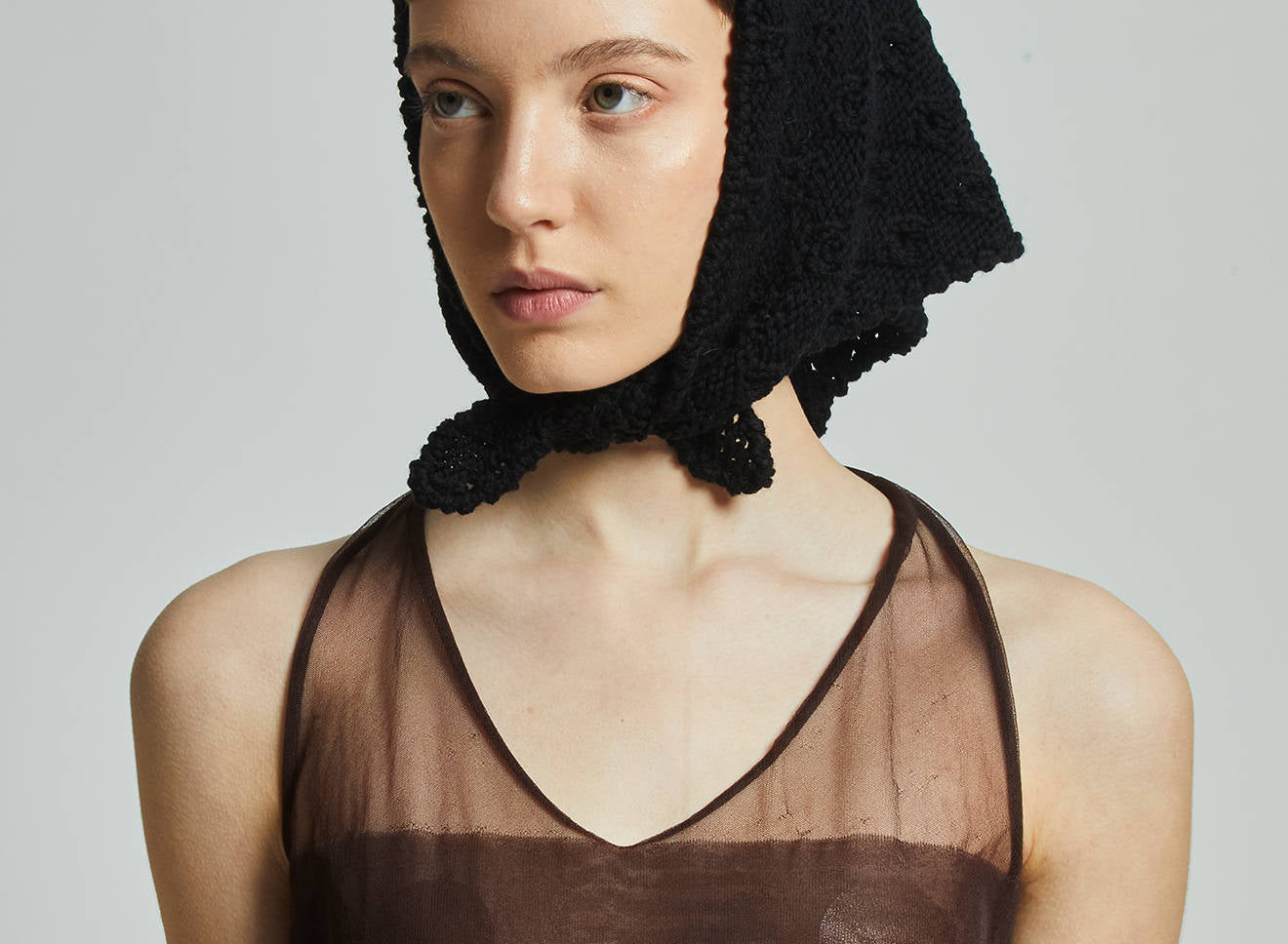 Bandana interamente realizzata a mano con tecniche di lavorazione a maglia tradizionali.