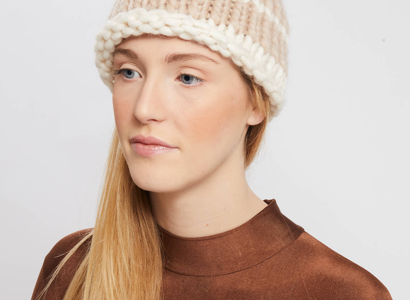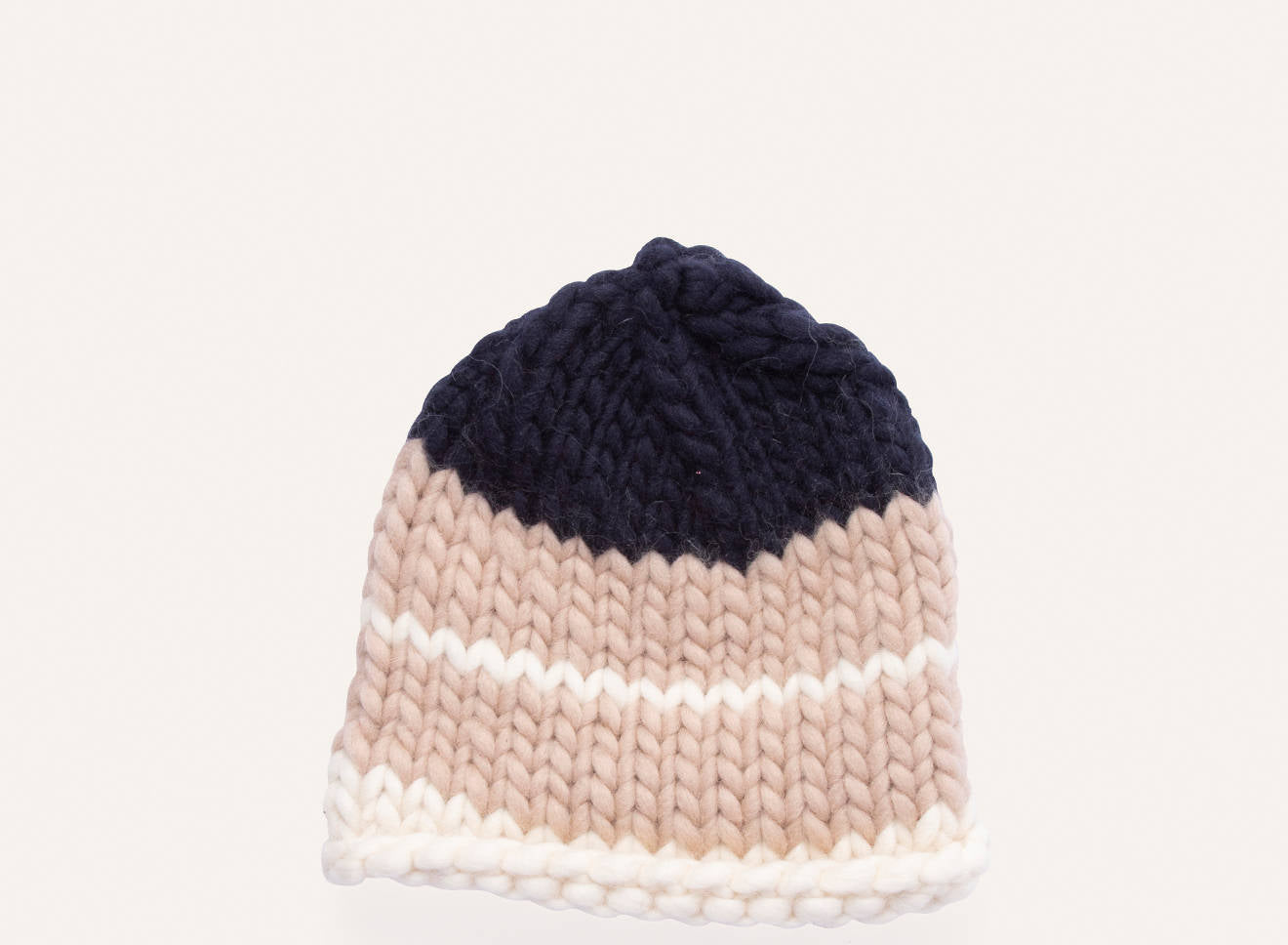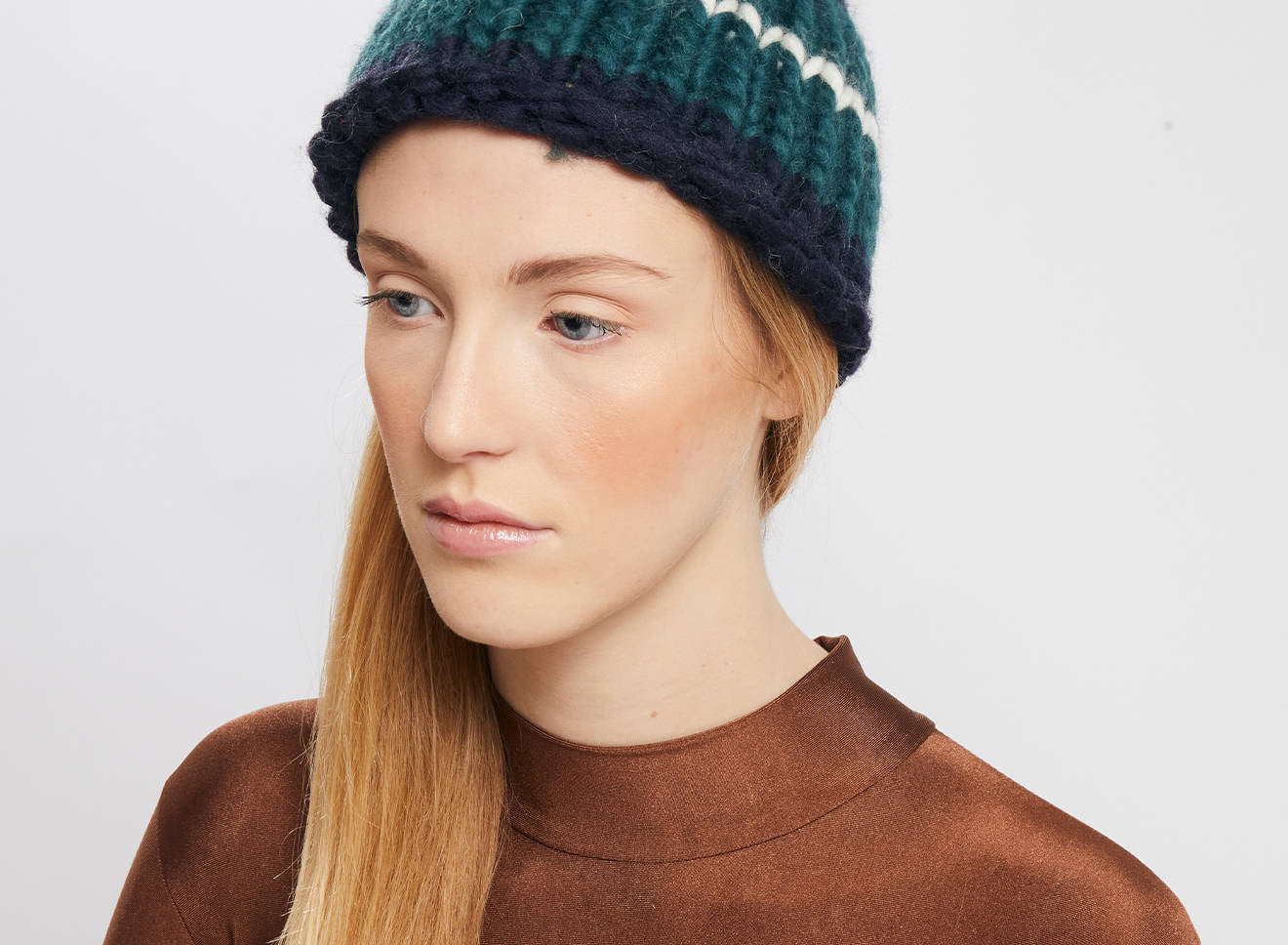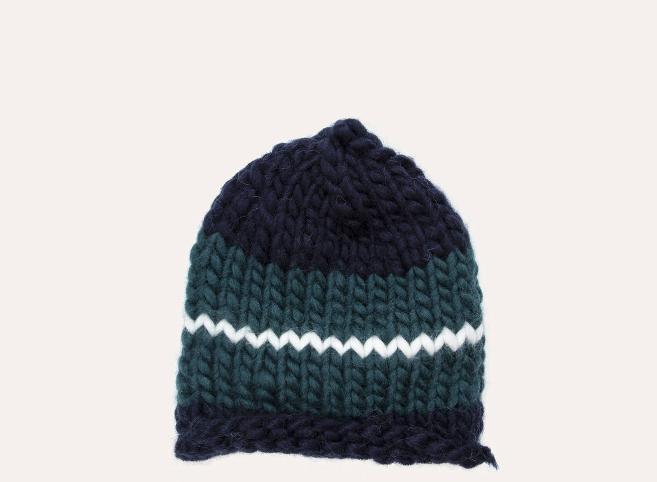 Caldo berretto a righe multicolor. Realizzato in filato italiano 100% lana, corposo ma sorprendentemente soffice e caratterizzato da elevata resistenza.