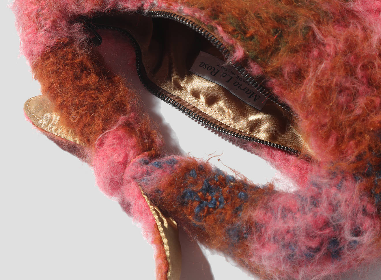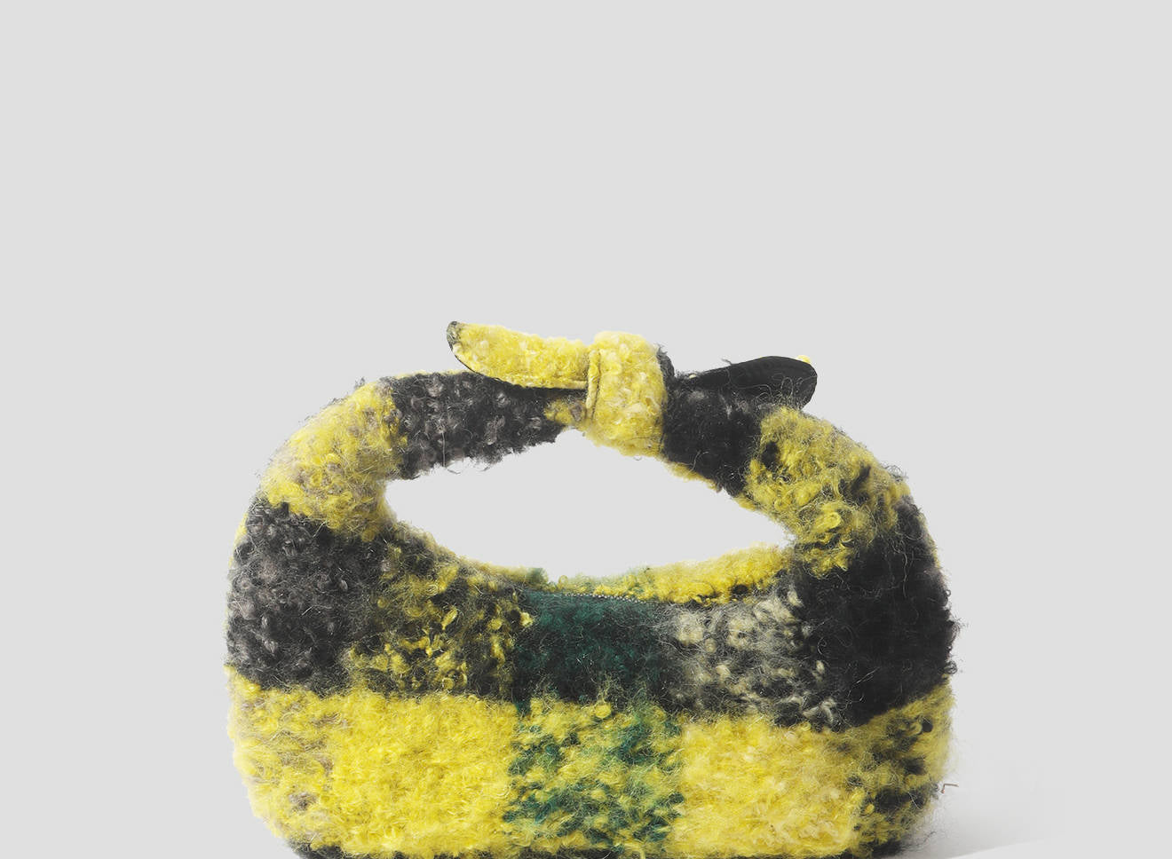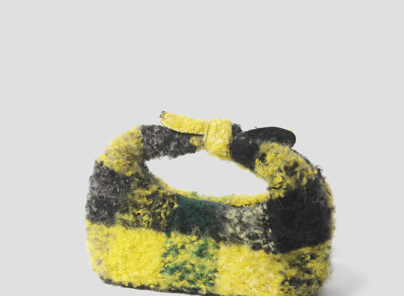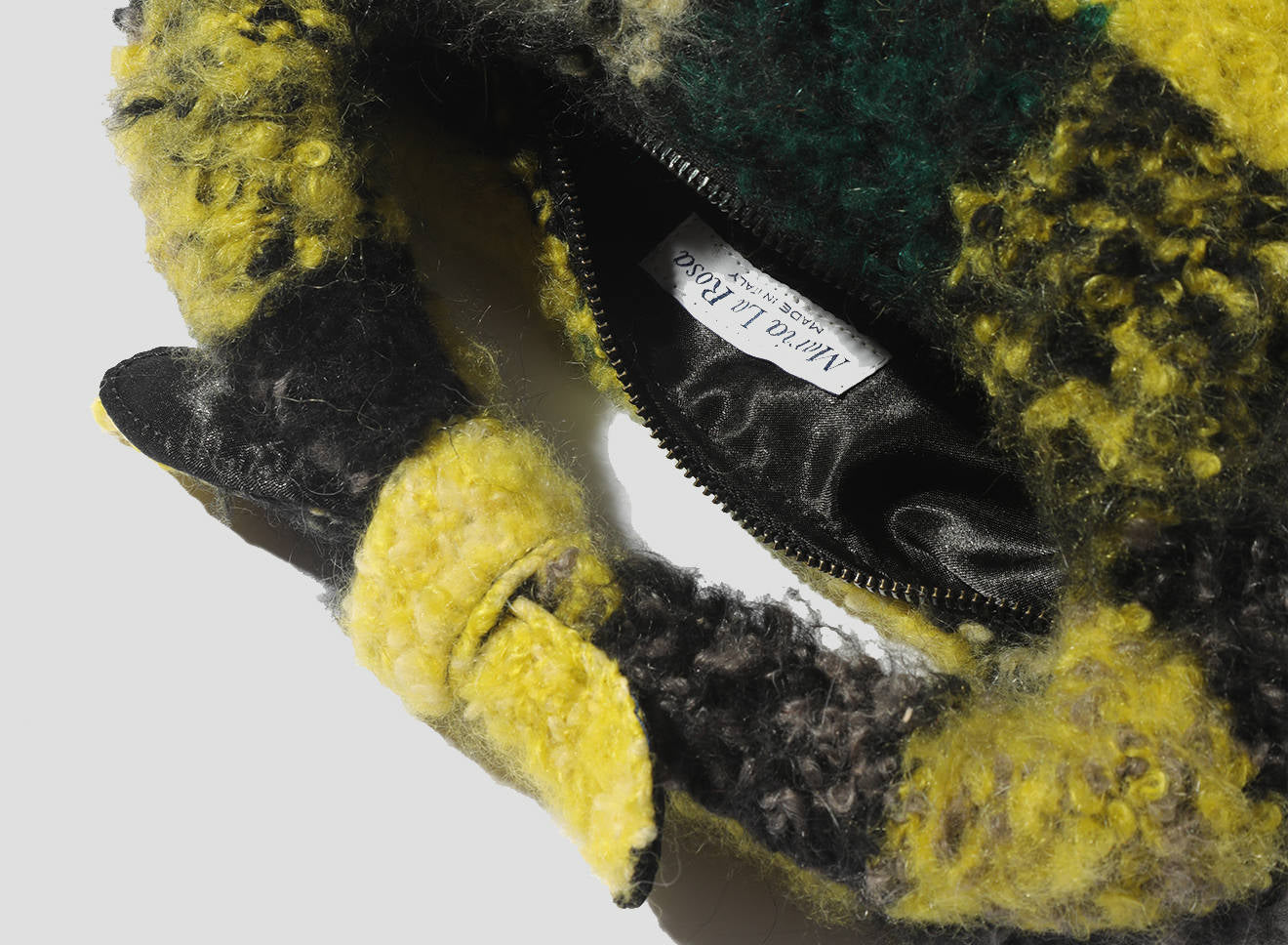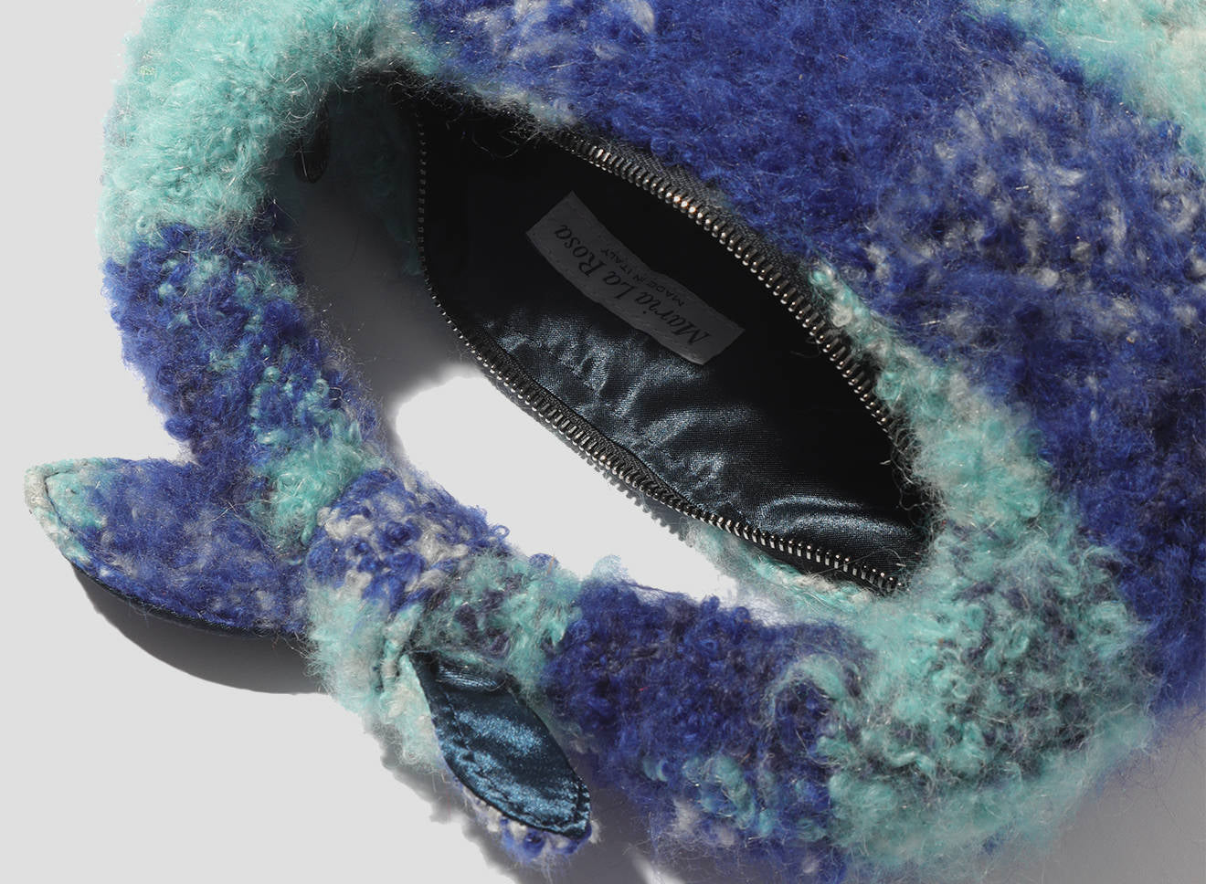 Realizzata interamente a mano con tessuto bouclé di alta qualità, questa borsa a spalla combina morbidezza e struttura per un design unico e accogliente. È perfetta per completare outfit sia casual che sofisticati. Il dettaglio del nodo sulla tracolla aggiunge un tocco distintivo e contemporaneo.