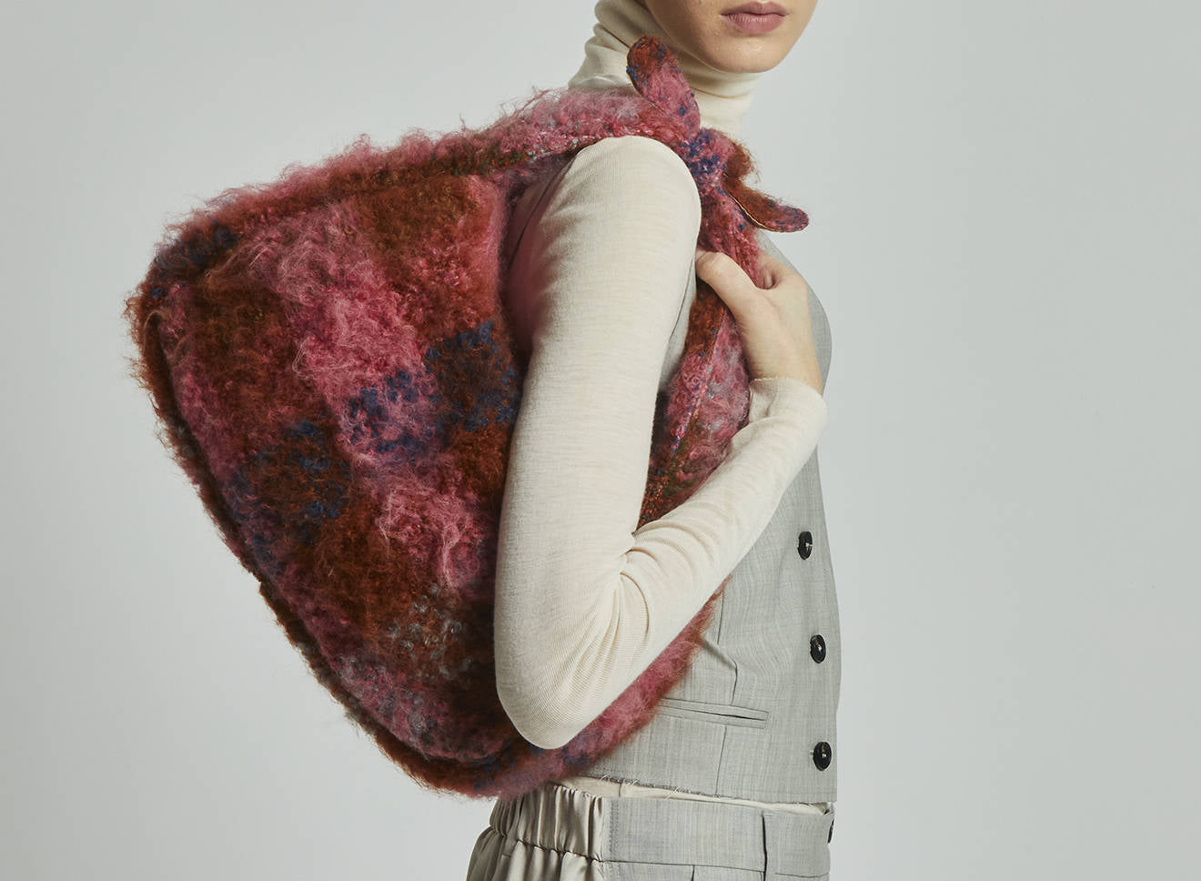 L’arte si trasforma in moda, la tradizione scivola nel contemporaneo e la sostenibilità influenza il costume. L’atelier Maria La Rosa, da oltre trent’anni, coniuga questi diversi universi per creare borse, calze e accessori unici e originali. Fatti a mano: abbinando un’accurata selezione delle materie prime alla lentezza delle secolari tecniche di tessitura, con uno sguardo sempre nuovo e innovativo sul mondo.