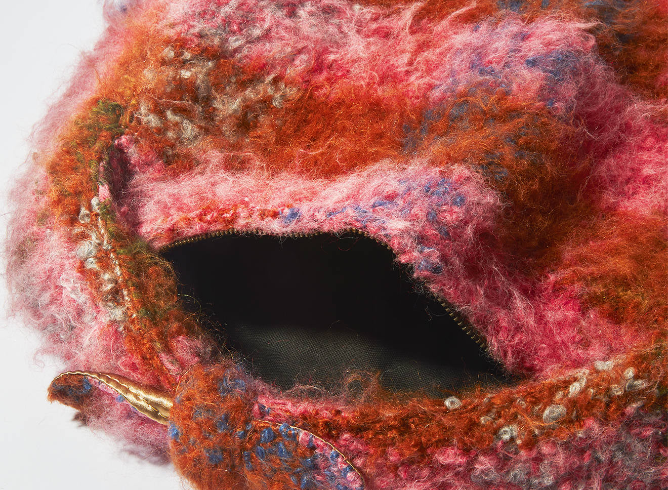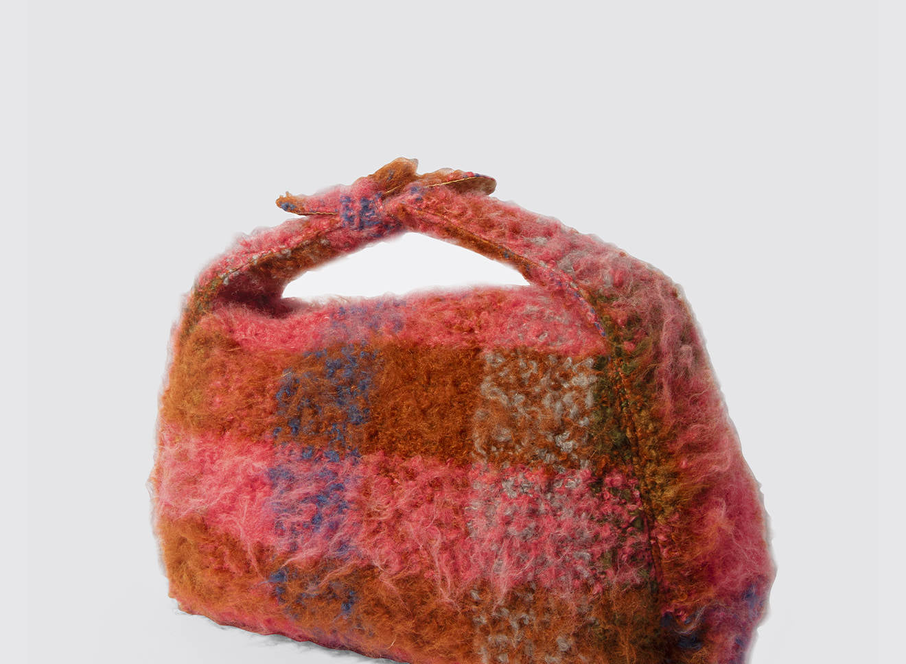 Realizzata interamente a mano con tessuto bouclé di alta qualità, questa borsa a spalla combina morbidezza e struttura per un design unico e accogliente. Capiente e versatile, è perfetta per completare outfit sia casual che sofisticati. Il dettaglio del nodo sulla tracolla aggiunge un tocco distintivo e contemporaneo.