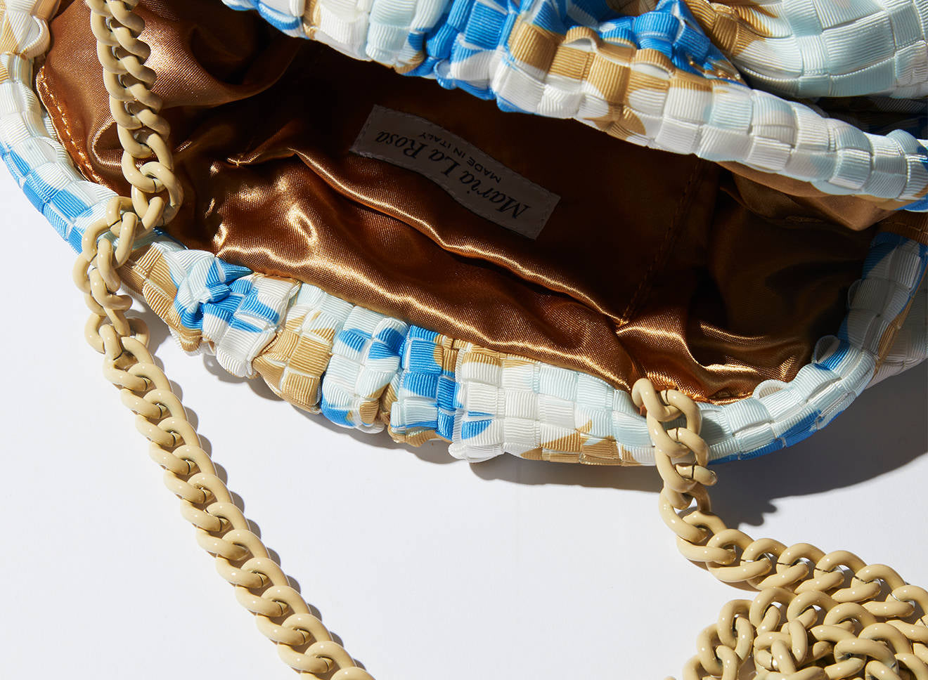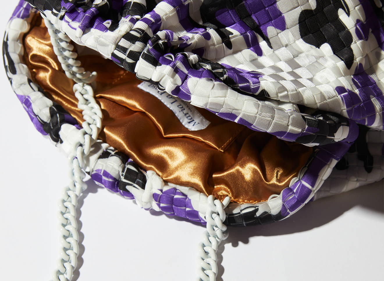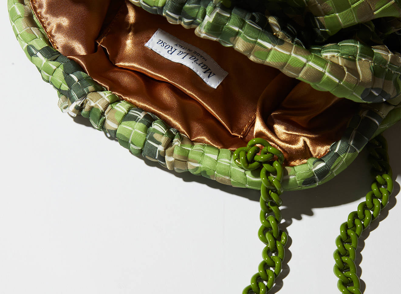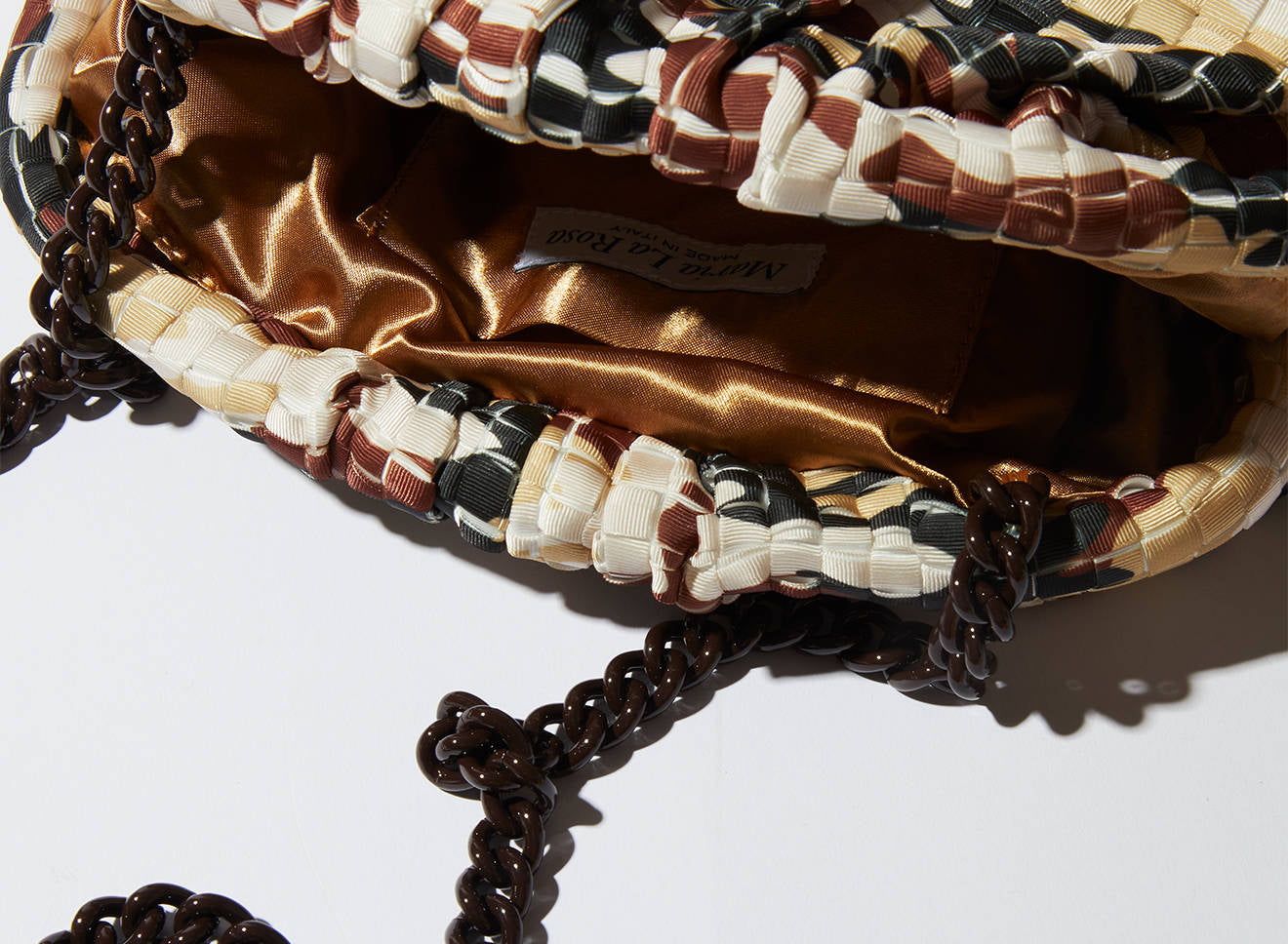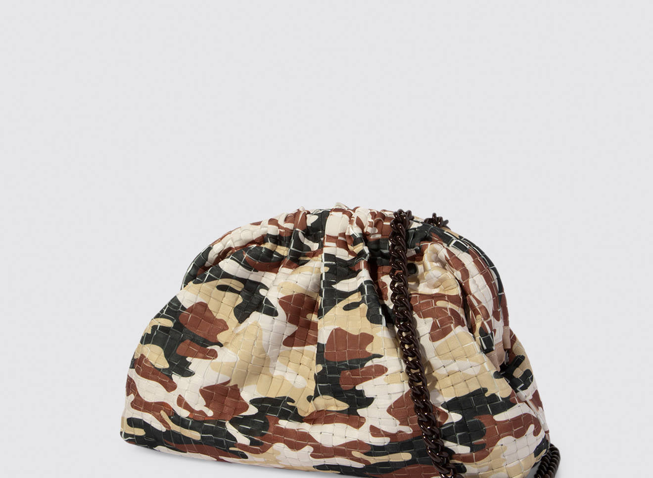 Questo modello costituisce l’icon bag Maria La Rosa, perfetta per tutte le stagioni, emblema di una nuova eleganza metropolitana, che assicura capienza e funzionalità.L’originale stampa camouflage in quattro varianti colore, crea un design audace, perfetto per chi ama un tocco di originalità e lo stile urbano. Interamente disegnata e prodotta in Italia.