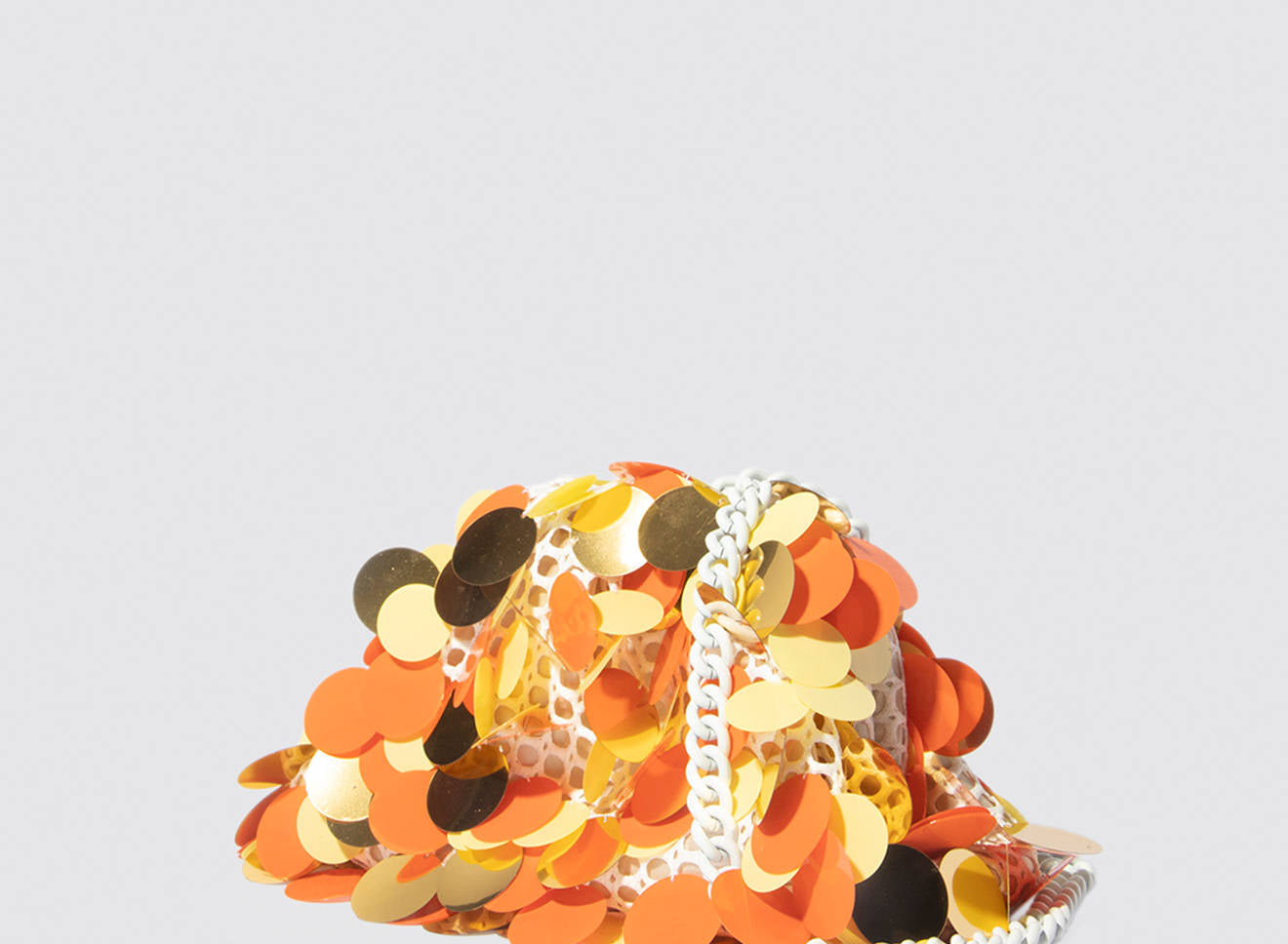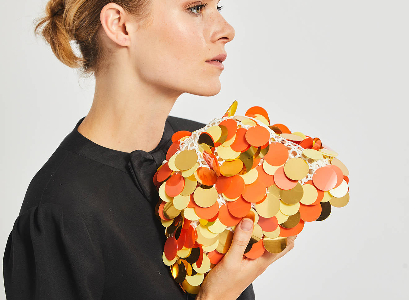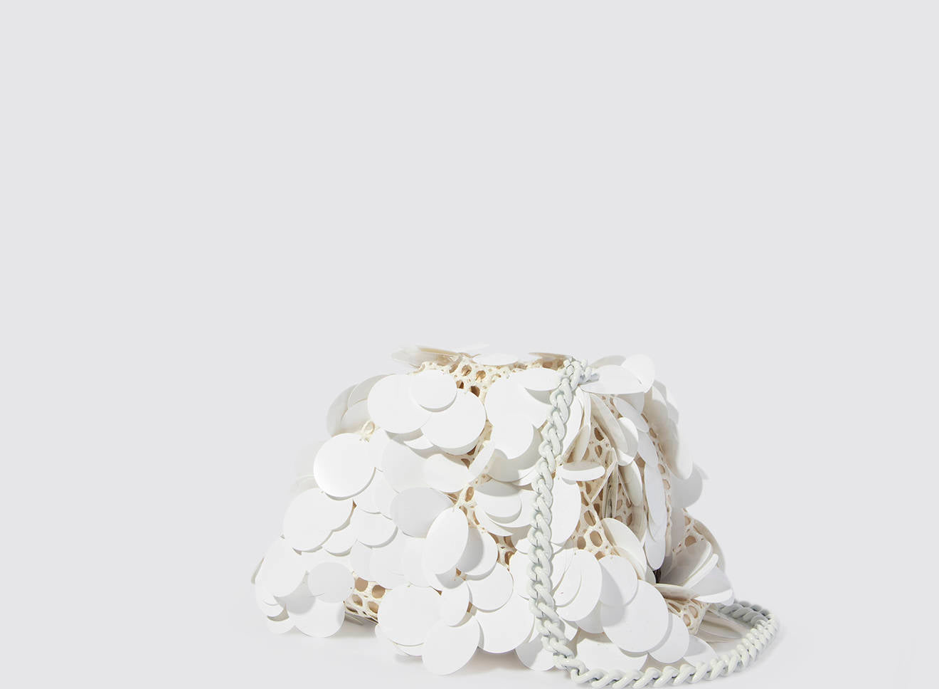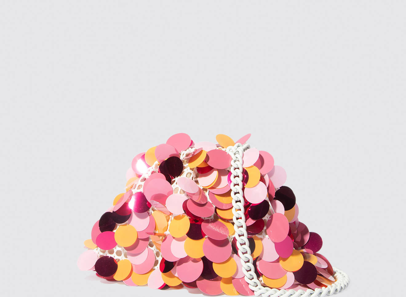 Clutch da donna di piccole dimensioni realizzata in tessuto ricamato a mano con maxi paillettes. Questo modello costituisce l’icon bag Maria La Rosa, perfetta per tutte le stagioni, emblema di una nuova eleganza metropolitana, che assicura capienza e funzionalità. Il tessuto in paillettes si fa notare per il suo design eccentrico e conferisce ai tuoi look un tocco di elegante vivacità. È dotata di catena abbinata per indossarla anche a tracolla.