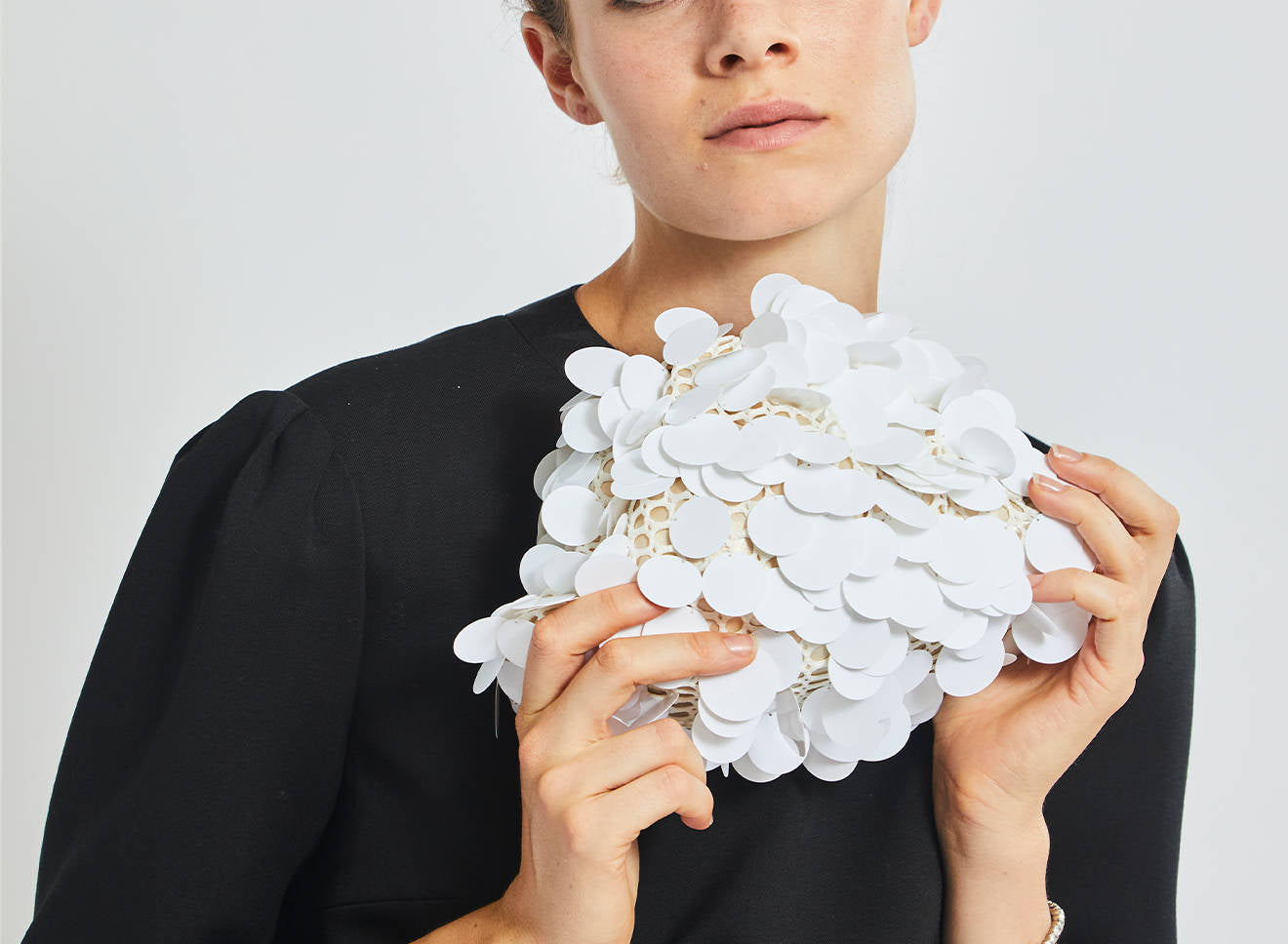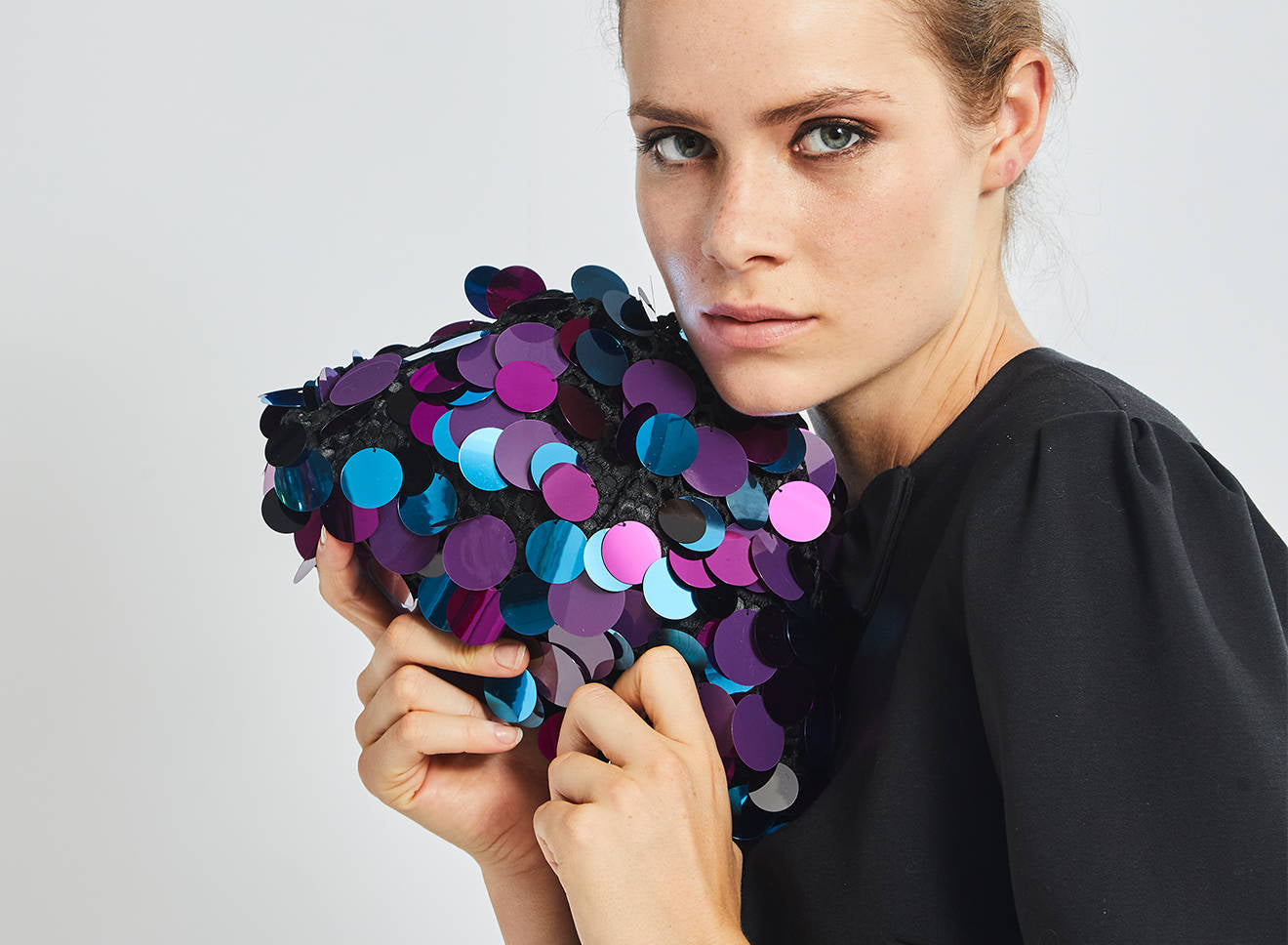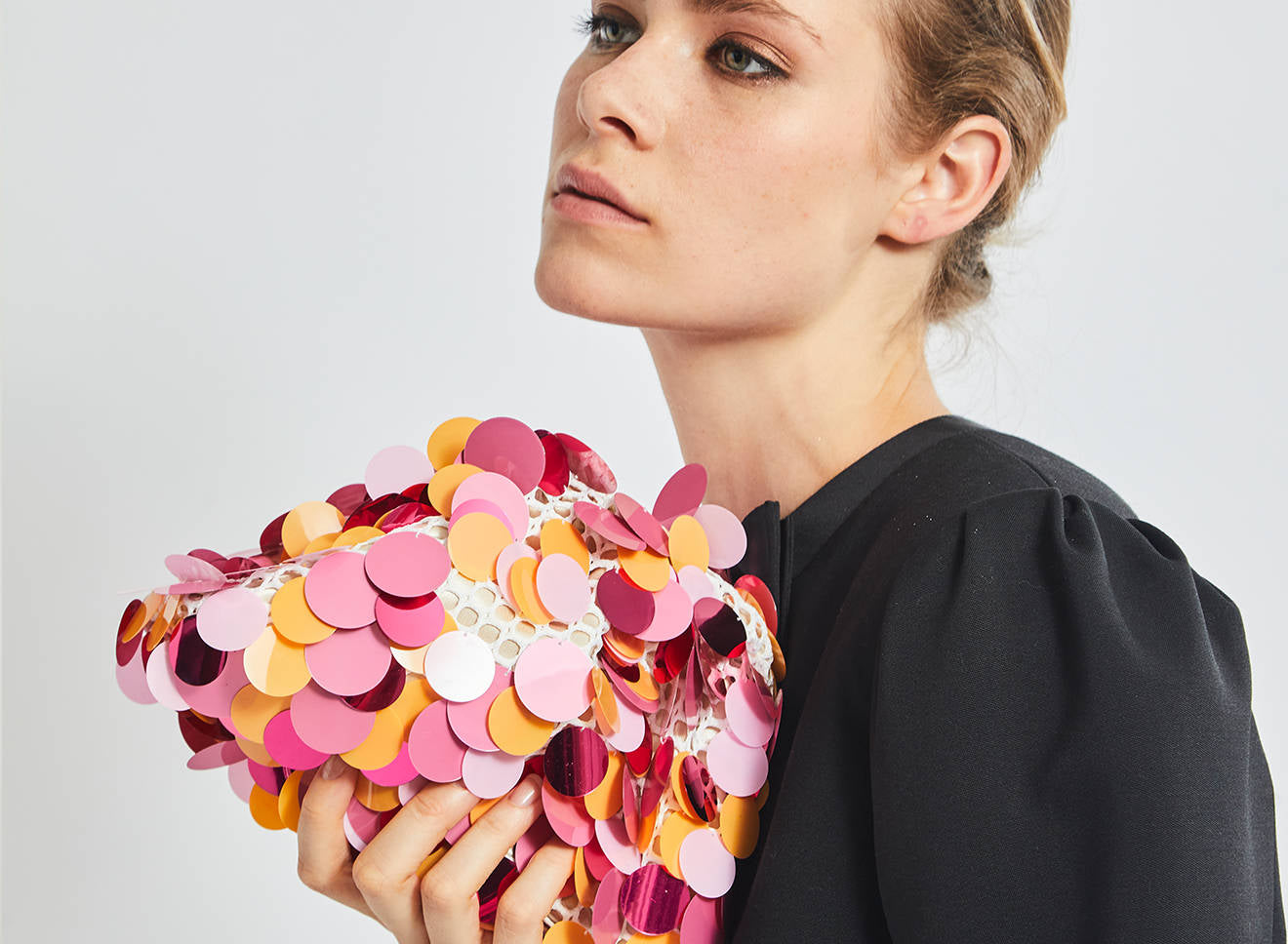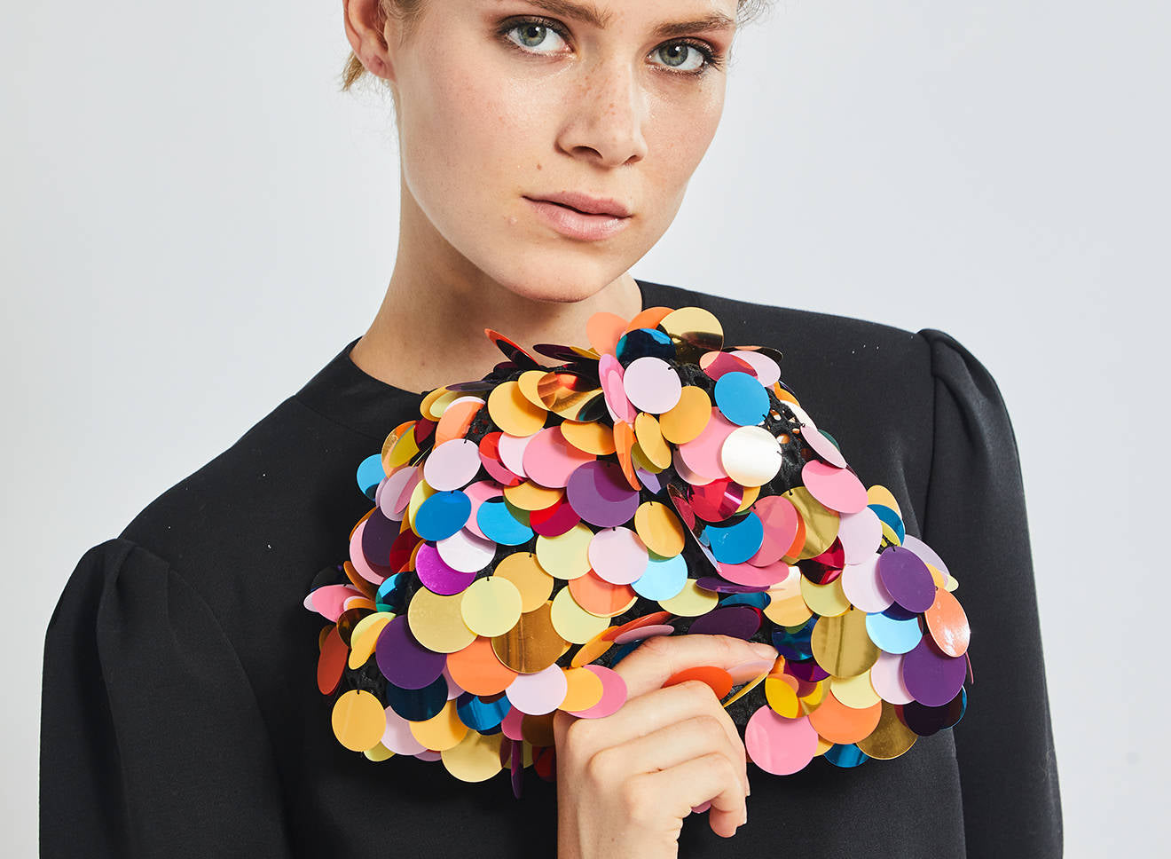 Clutch da donna di piccole dimensioni realizzata in tessuto ricamato a mano con maxi paillettes. Questo modello costituisce l’icon bag Maria La Rosa, perfetta per tutte le stagioni, emblema di una nuova eleganza metropolitana, che assicura capienza e funzionalità. Il tessuto in paillettes si fa notare per il suo design eccentrico e conferisce ai tuoi look un tocco di elegante vivacità. È dotata di catena abbinata per indossarla anche a tracolla.
