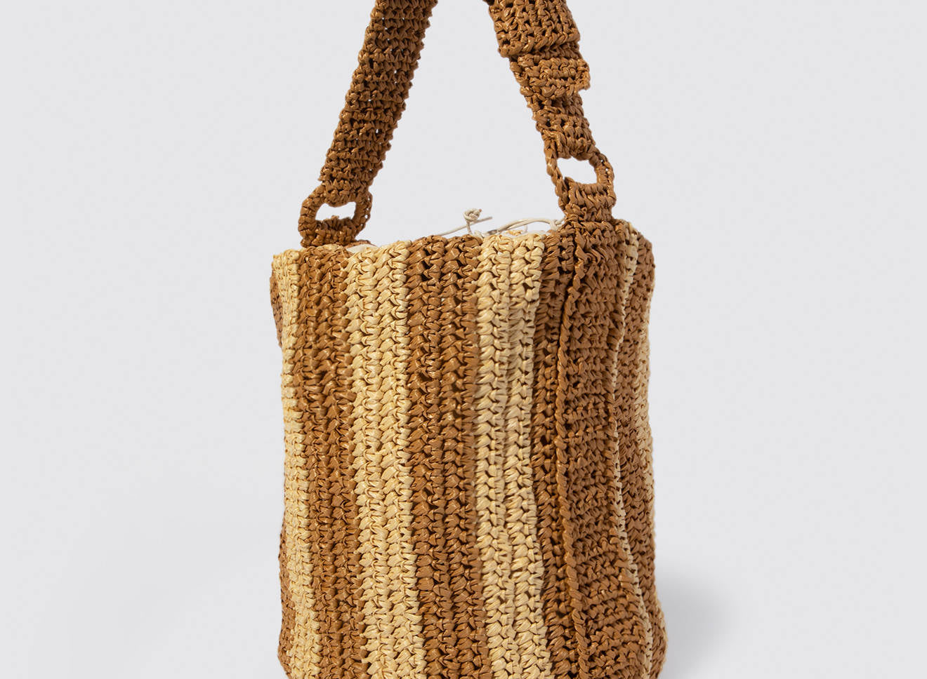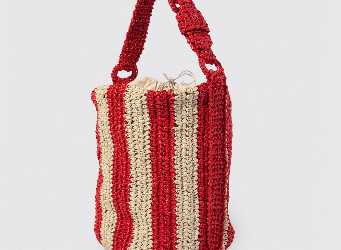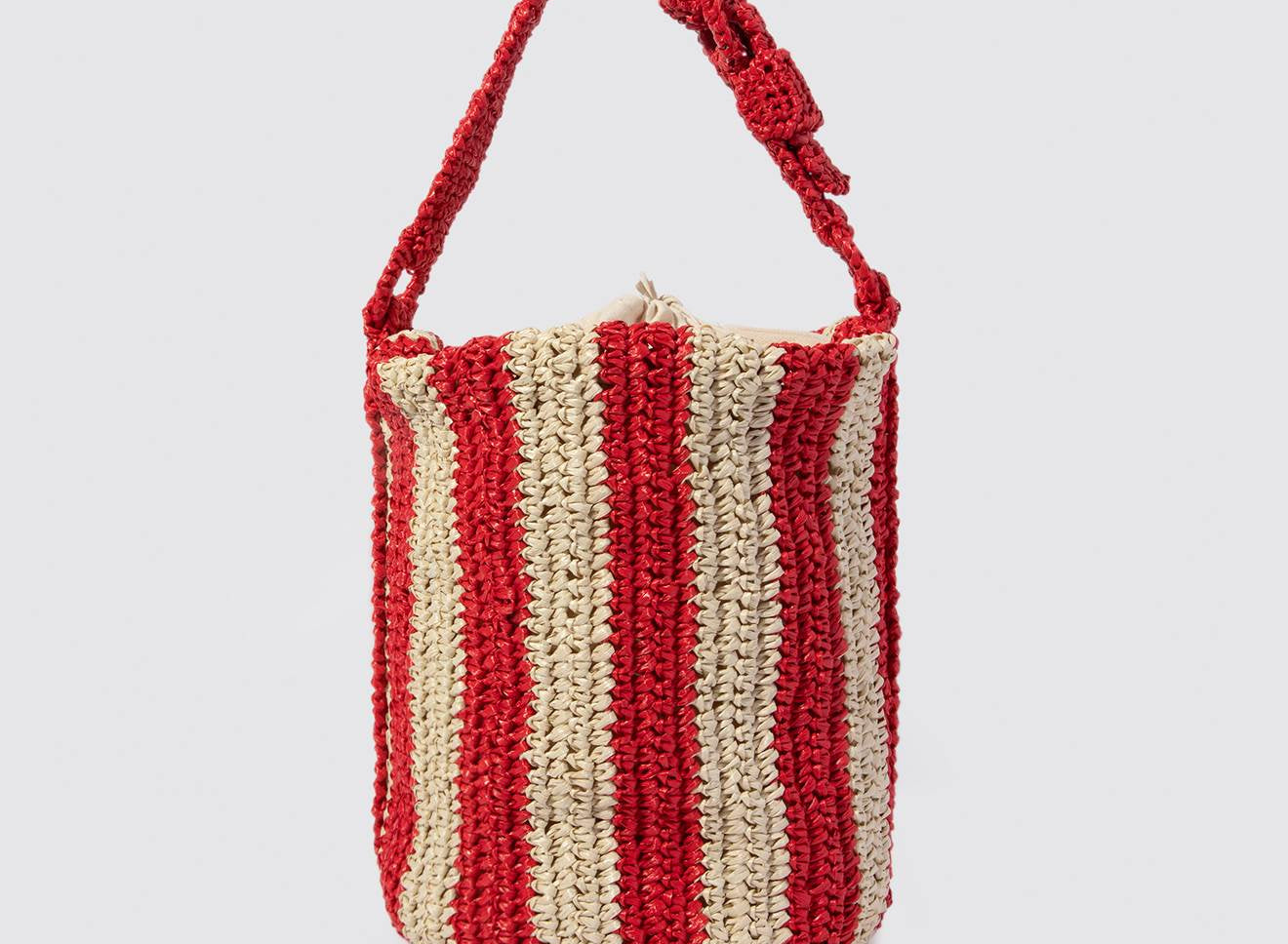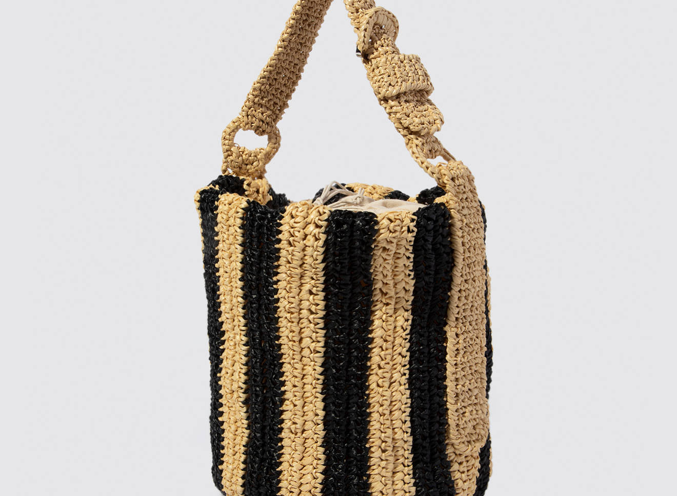 Borsa da donna di medie dimensioni, in tessuto di rafia, realizzato a mano con tecnica crochet. È la risposta di Maria La Rosa alla tendenza sempreverde delle borse a secchiello. Perfetto per aggiungere un tocco di freschezza e stile al tuo look estivo. La sua forma minimale è arricchita da un motivo a righe in tonalità classiche, ideali per chi cerca praticità senza rinunciare alla moda.Interamente disegnata e prodotta in Italia.