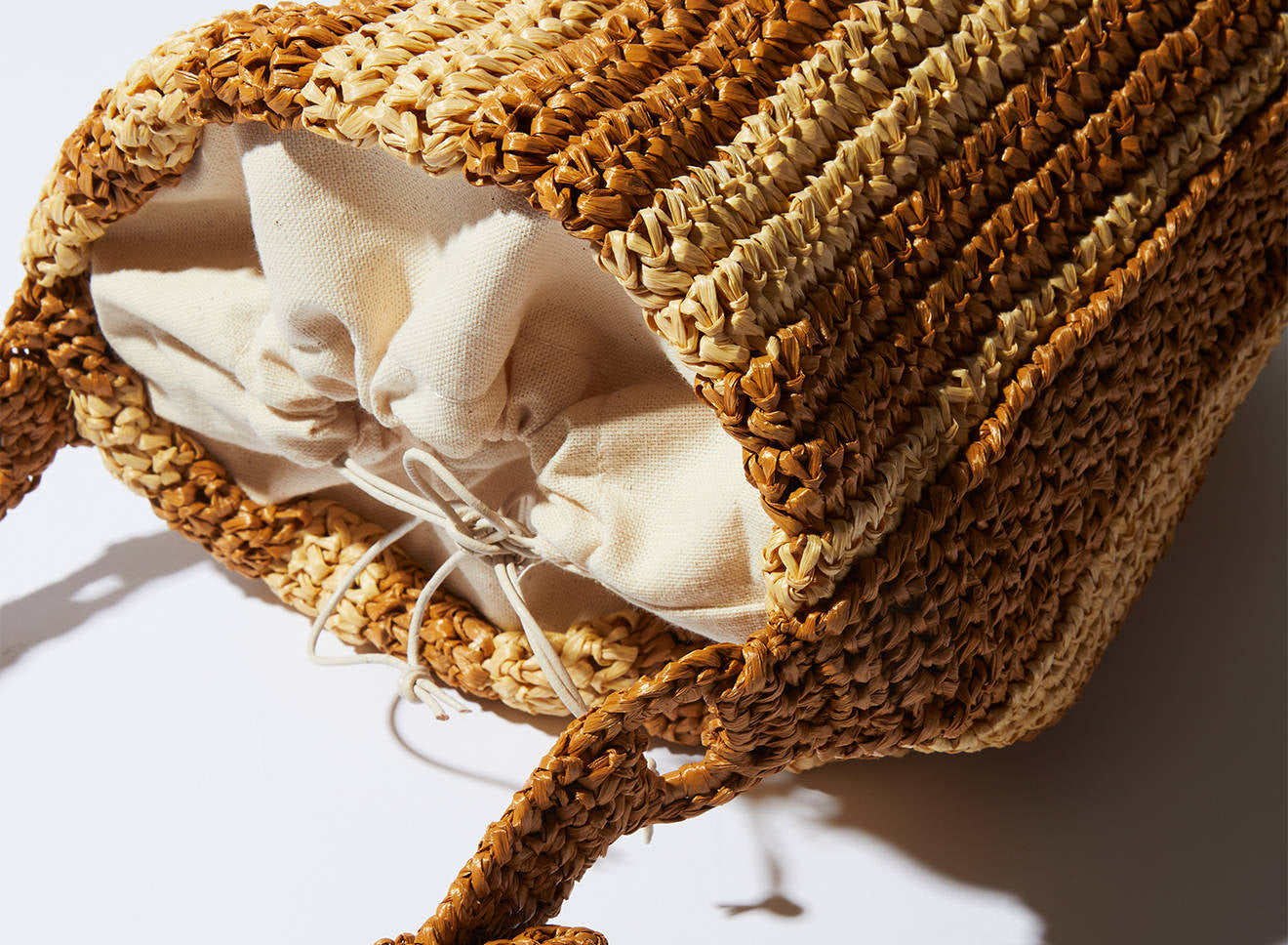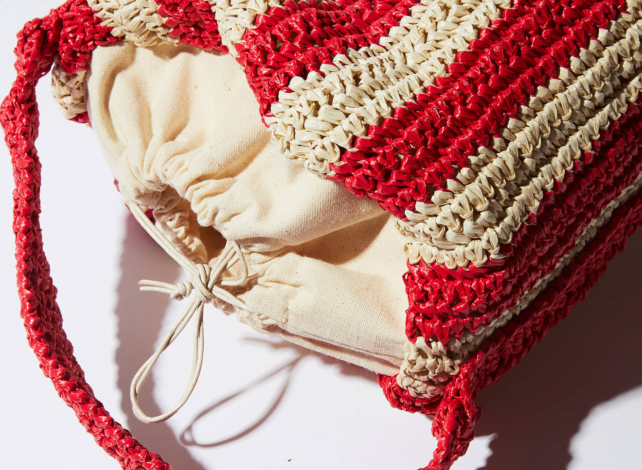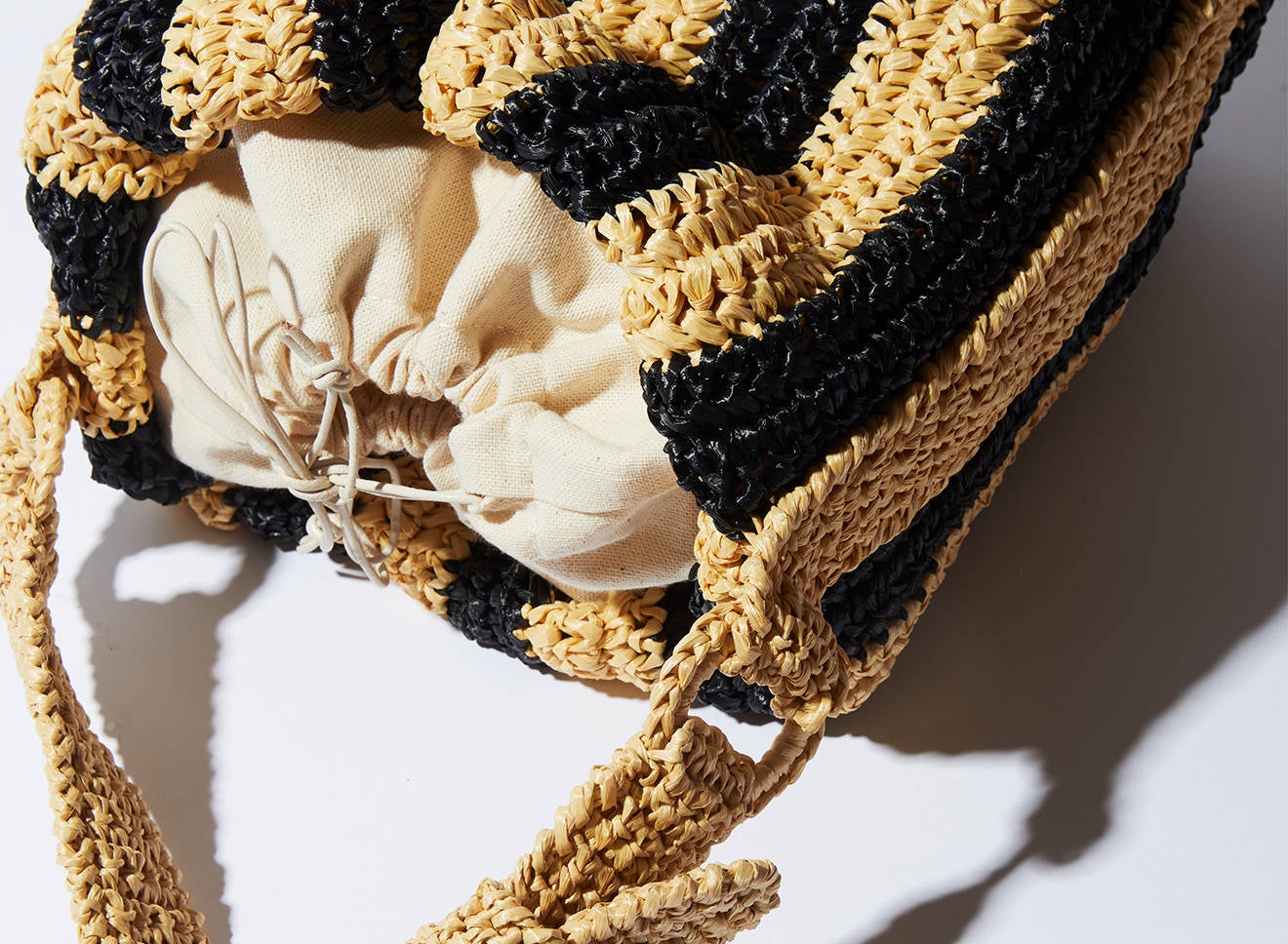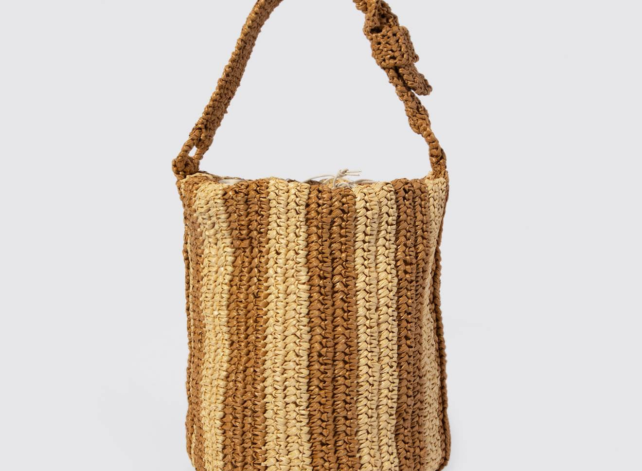 Borsa da donna di medie dimensioni, in tessuto di rafia, realizzato a mano con tecnica crochet. È la risposta di Maria La Rosa alla tendenza sempreverde delle borse a secchiello. Perfetto per aggiungere un tocco di freschezza e stile al tuo look estivo. La sua forma minimale è arricchita da un motivo a righe in tonalità classiche, ideali per chi cerca praticità senza rinunciare alla moda.Interamente disegnata e prodotta in Italia.