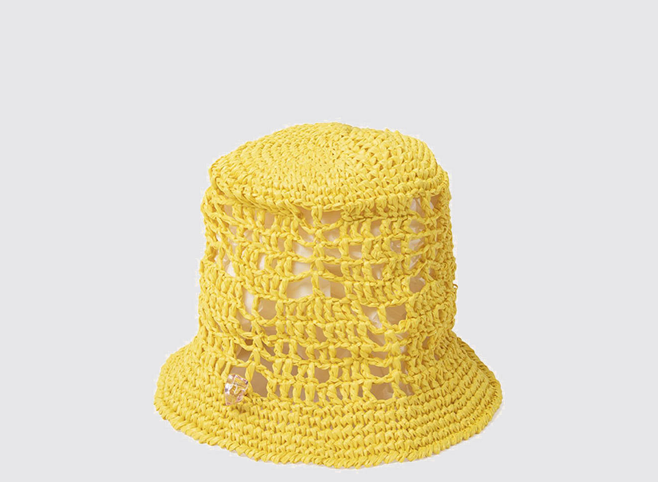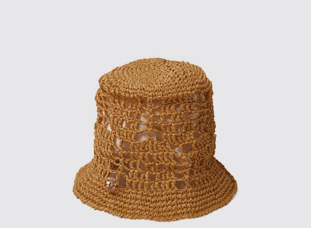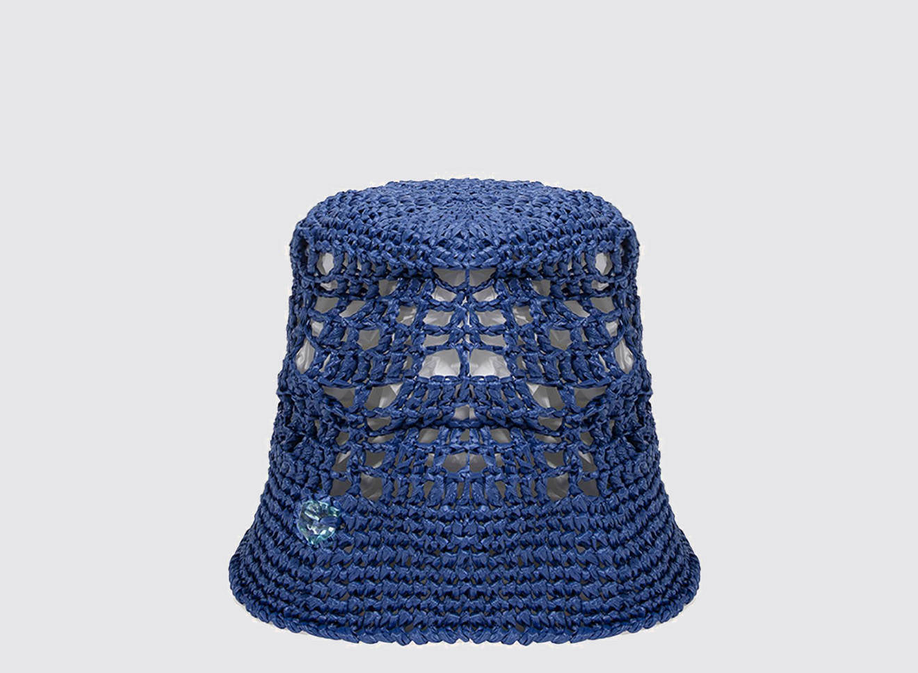 Cappello estivo in rafia di viscosa, un materiale più strutturato e resistente rispetto alla sua versione naturale. La pregiata lavorazione a crochet di questo modello, interamente realizzato a mano, è ulteriormente impreziosita da una pietra in tinta posta sul davanti. Disponibile in diversi colori, si presenta con un moderno design a pescatore che è diventato il protagonista assoluto nelle passerelle cittadine.
