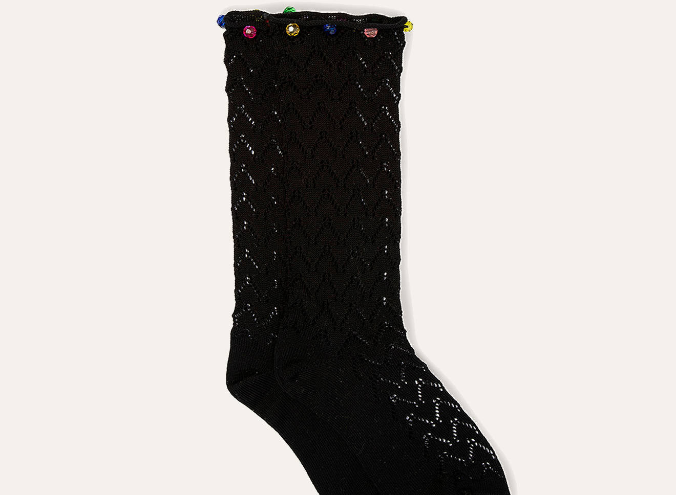 Questo modello risulta, infatti, leggerissimo e comodo al piede grazie alla fibra in cotone, che dona freschezza e traspirabilità. Sono caratterizzate da una divertente lavorazione traforata e da pietre colorate ricamate sull'orlo superiore. Disponibili in diverse varianti colore.
