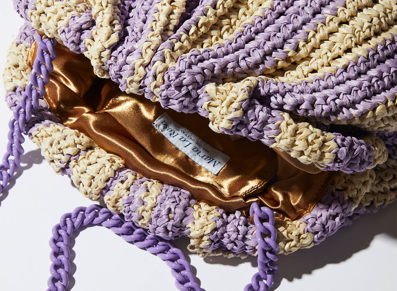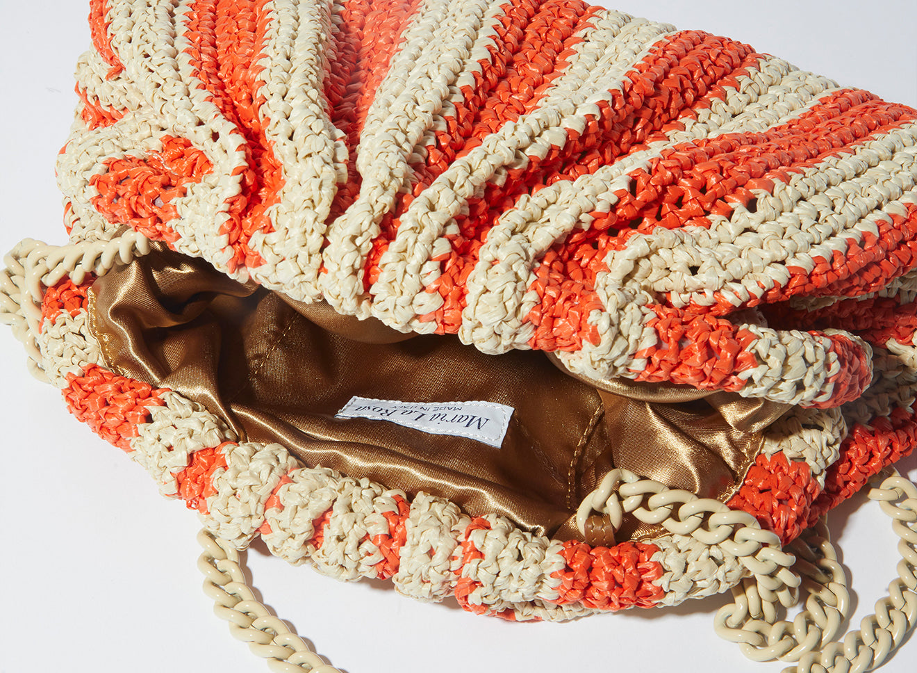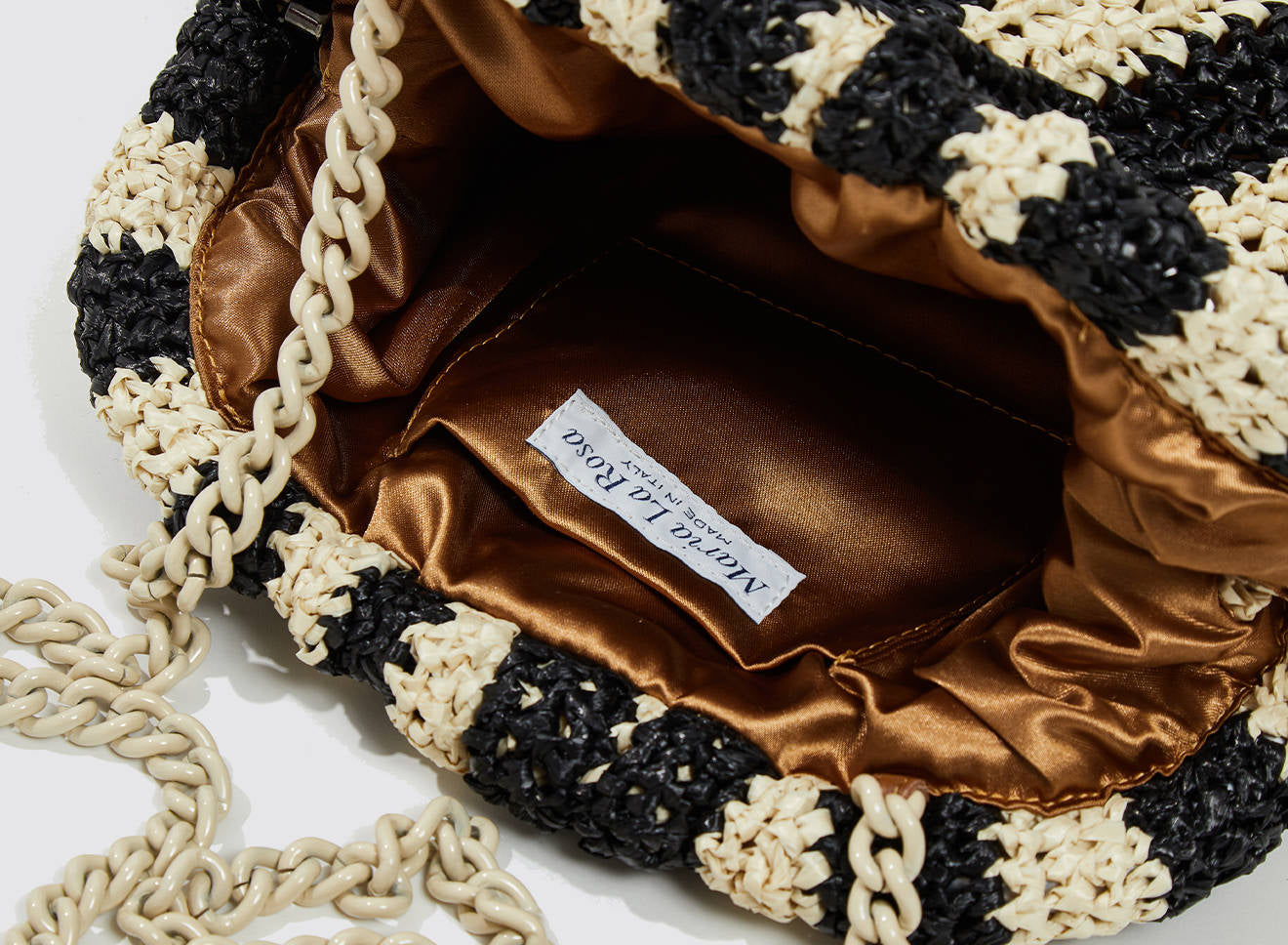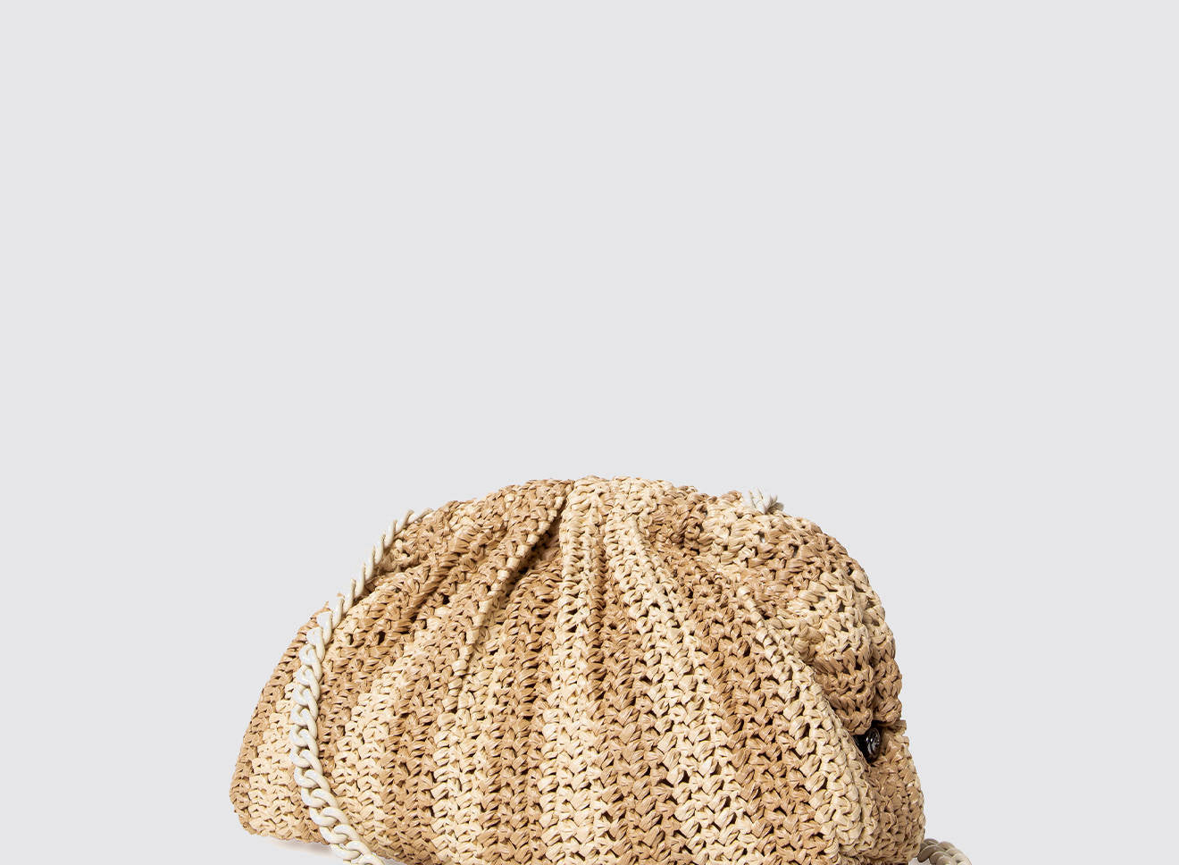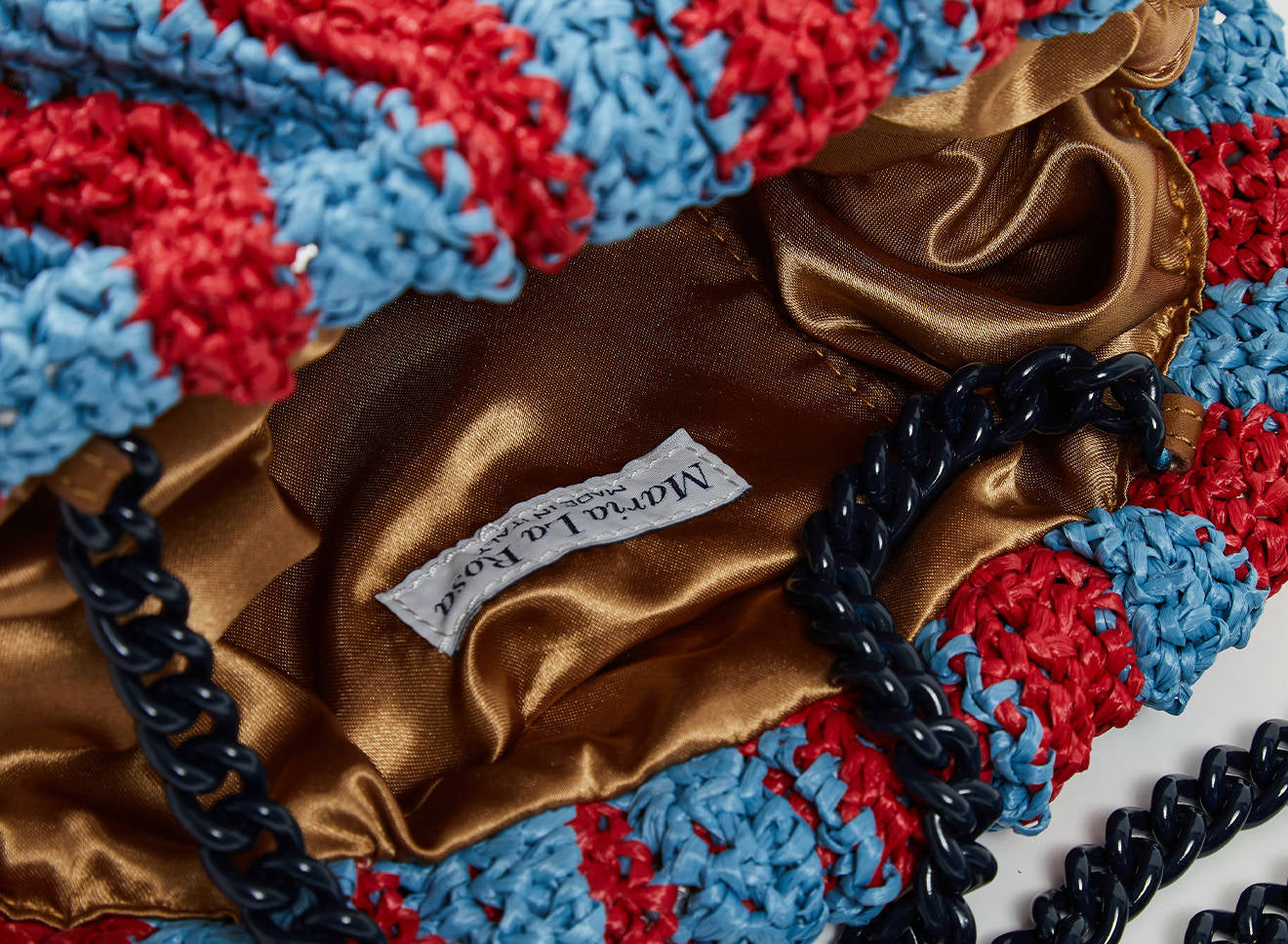 Clutch da donna di medie dimensioni in rafia, realizzata interamente a mano con la tecnica crochet. Questo modello costituisce l’icon bag Maria La Rosa, perfetta per tutte le occasioni, emblema di una nuova eleganza metropolitana, che assicura capienza e funzionalità.