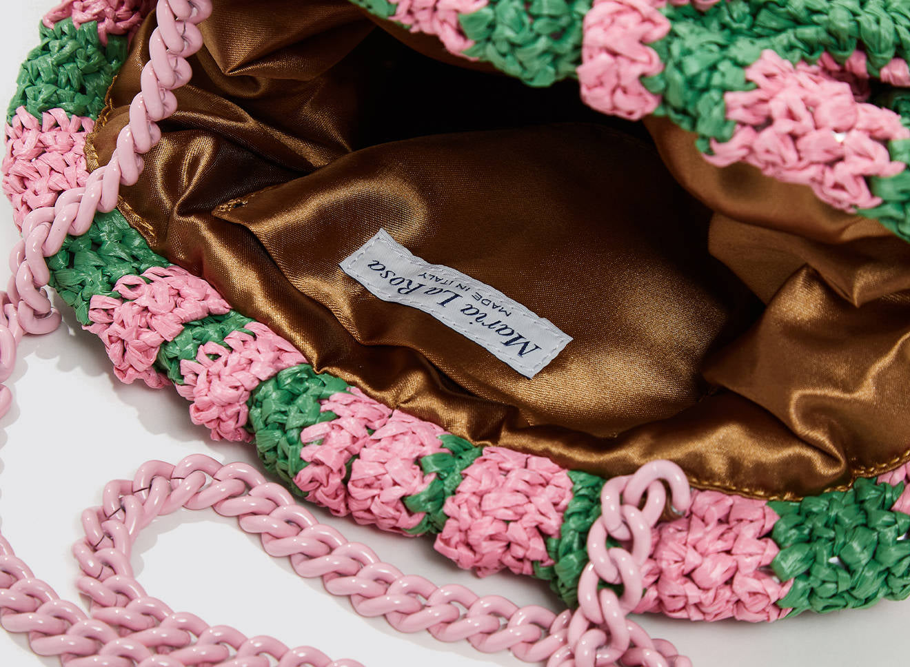L’arte si trasforma in moda, la tradizione scivola nel contemporaneo e la sostenibilità influenza il costume. L’atelier Maria La Rosa, da oltre trent’anni, coniuga questi diversi universi per creare borse, calze e accessori unici e originali. Fatti a mano: abbinando un’accurata selezione delle materie prime alla lentezza delle secolari tecniche di tessitura, con uno sguardo sempre nuovo e innovativo sul mondo.