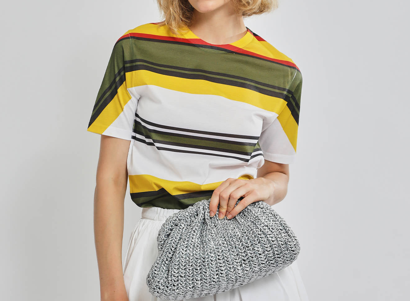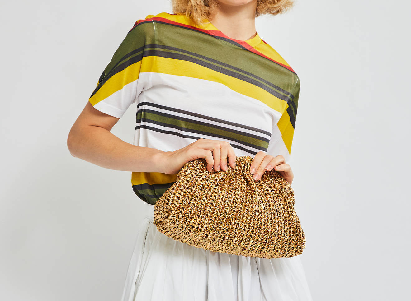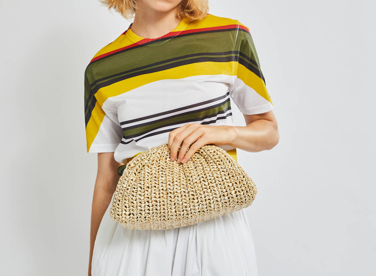 Clutch da donna di medie dimensioni in rafia, realizzata interamente a mano con la tecnica crochet. Questo modello costituisce l’icon bag Maria La Rosa, perfetta per tutte le occasioni, emblema di una nuova eleganza metropolitana, che assicura capienza e funzionalità.