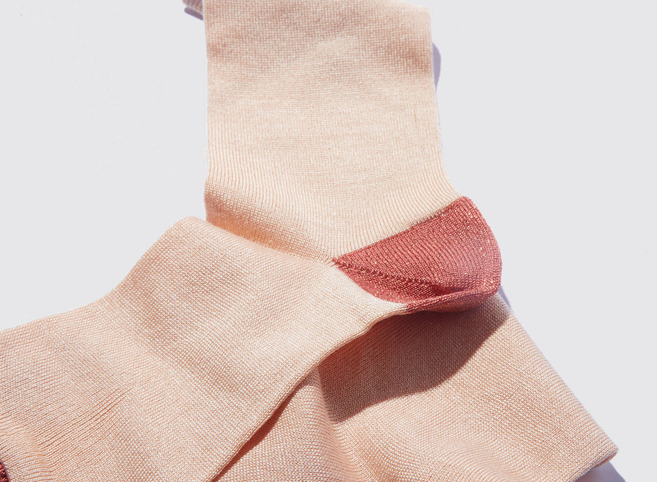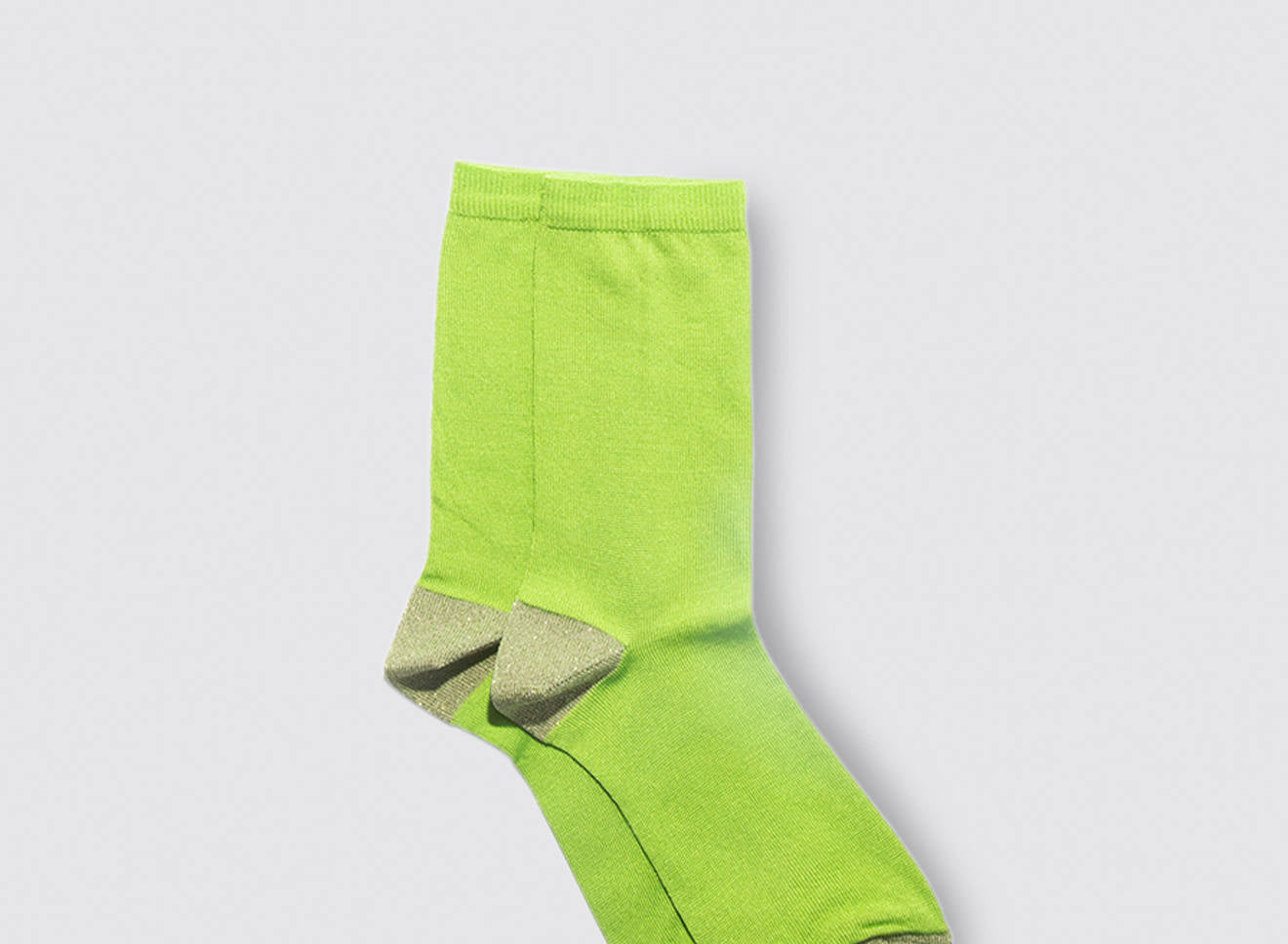 Con polsino elastico, punta e tallone in lurex ton sur ton, costituiscono un incontro tra leggerezza, resistenza e comfort, con un elegante effetto sfavillante. Ideali da indossare sia con le sneakers sia con il tacco. Disponibili in diversi colori pastello ma anche nei toni più classici del nero e del grigio.