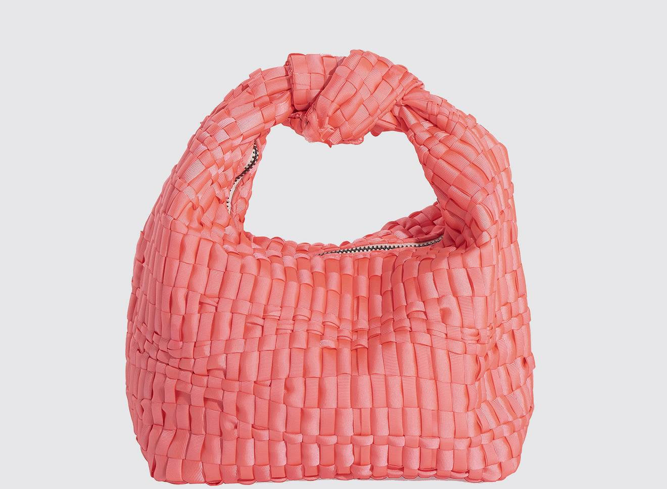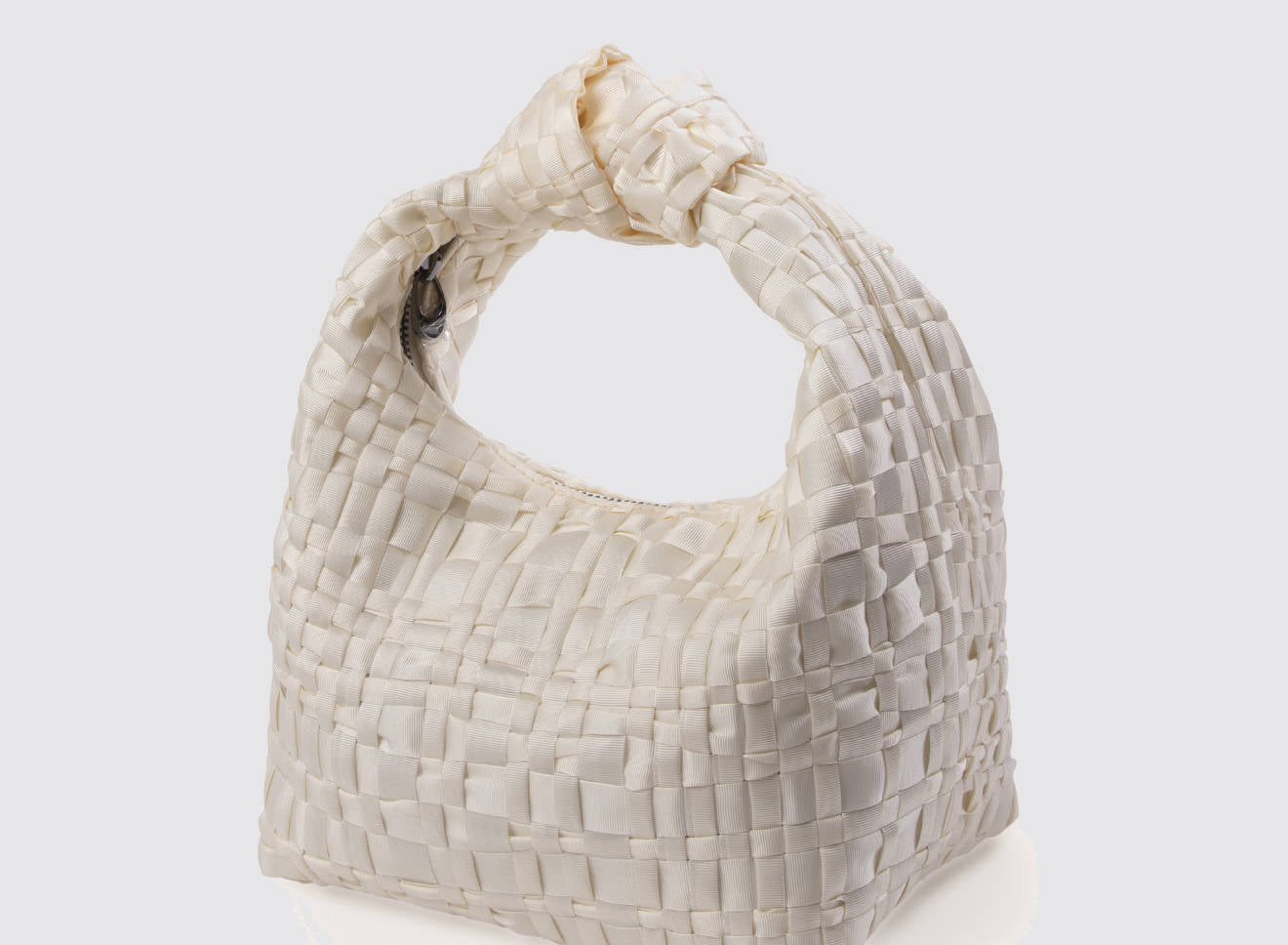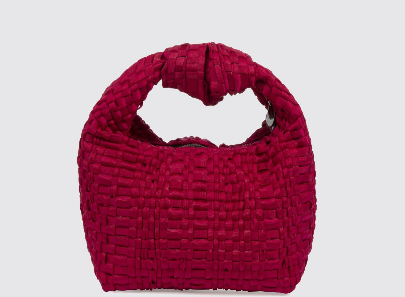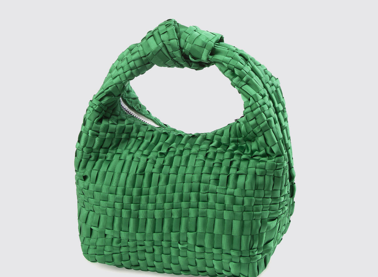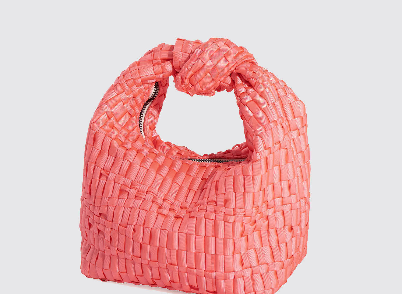 Borsa di piccole dimensioni in tessuto di nastro intrecciato, realizzato a mano su antichi telai. Dal design semplice, disponibile in diversi colori tinta unita, è perfetta per la stagione estiva. Dotata di chiusura a zip, manico a fusciacca con nodo, costituisce un modello compatto, dallo stile fresco e vivace. Interamente disegnata e prodotta in Italia.