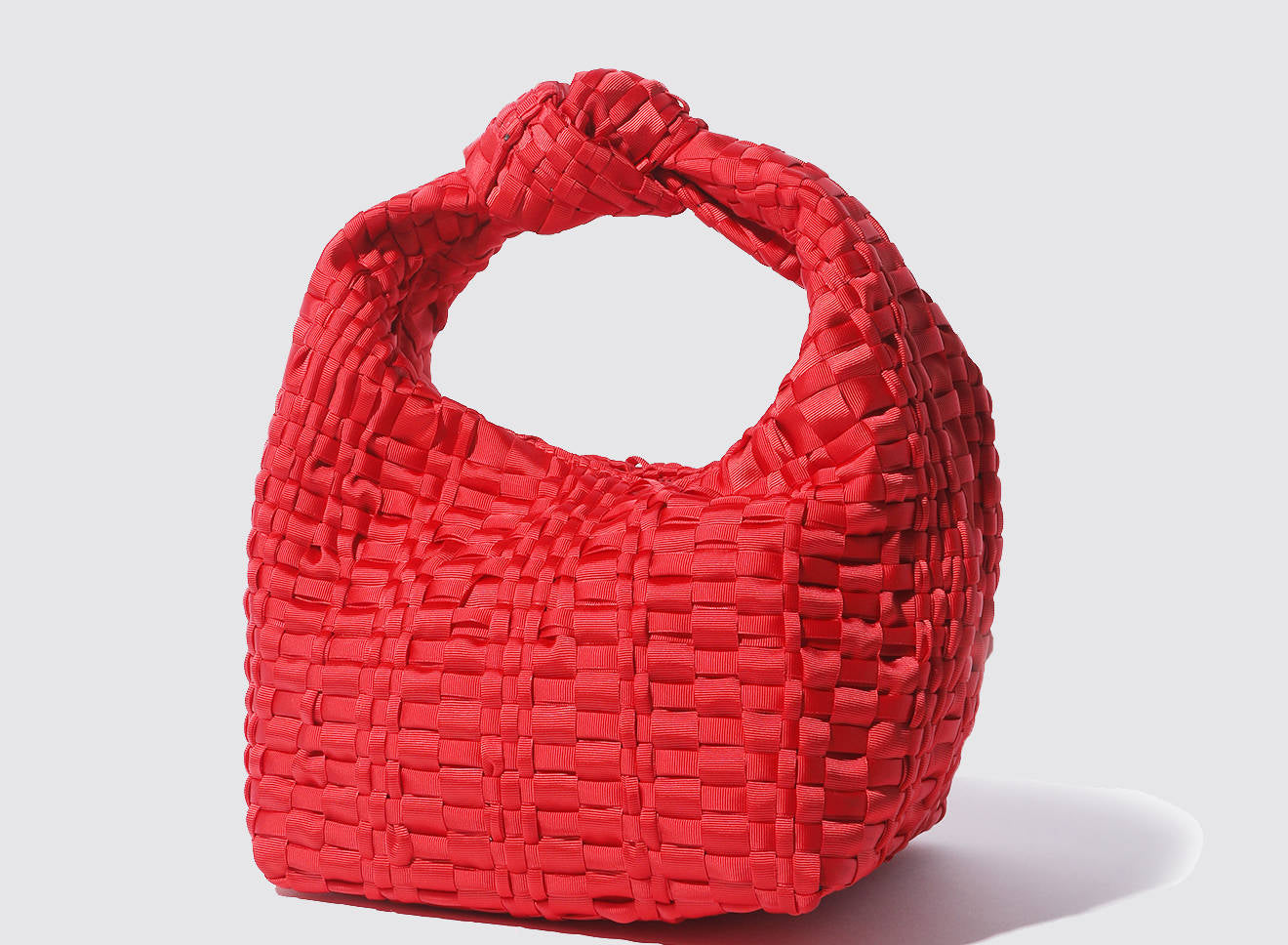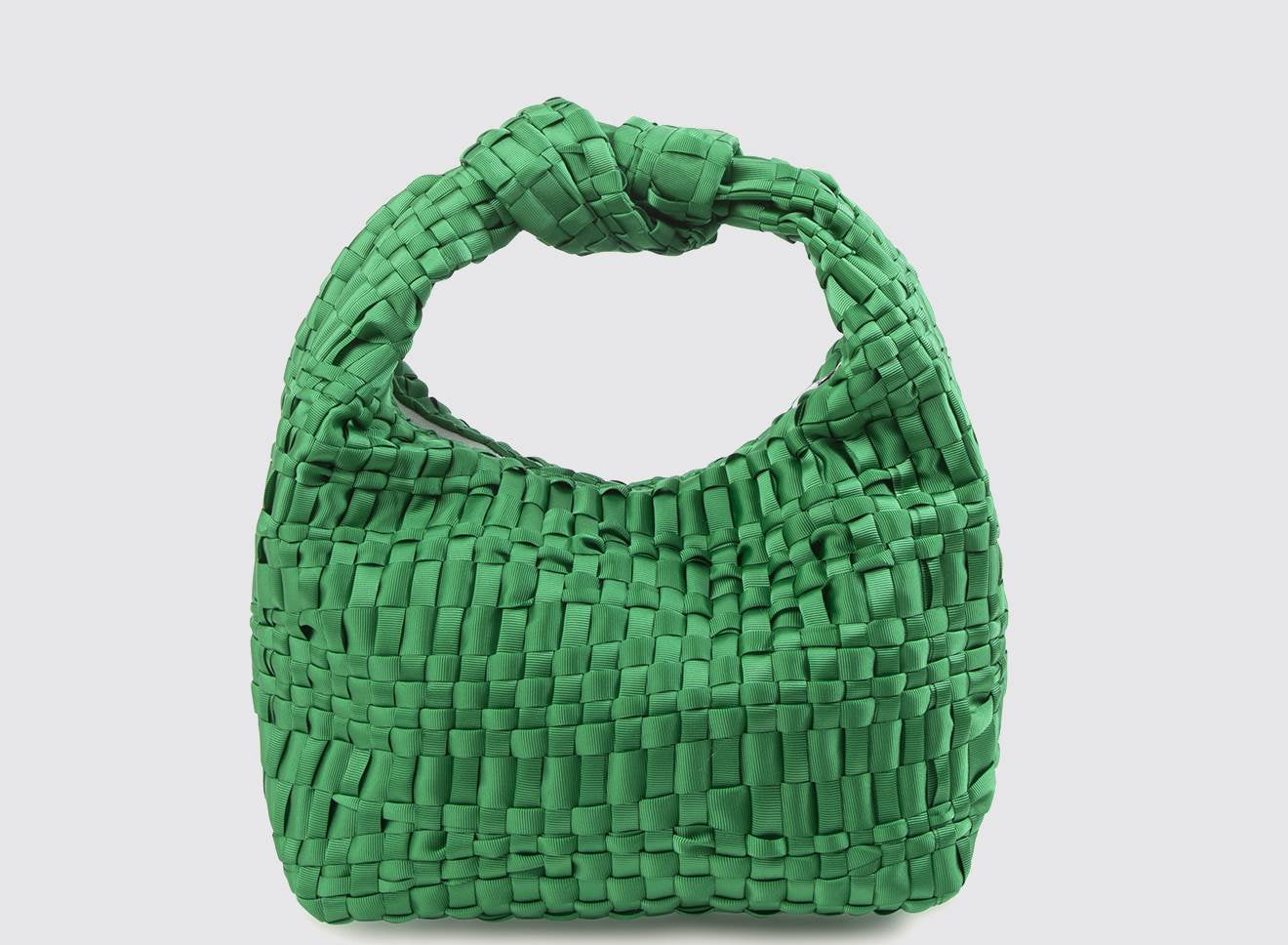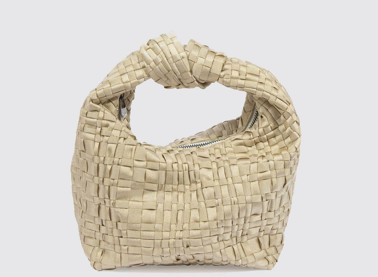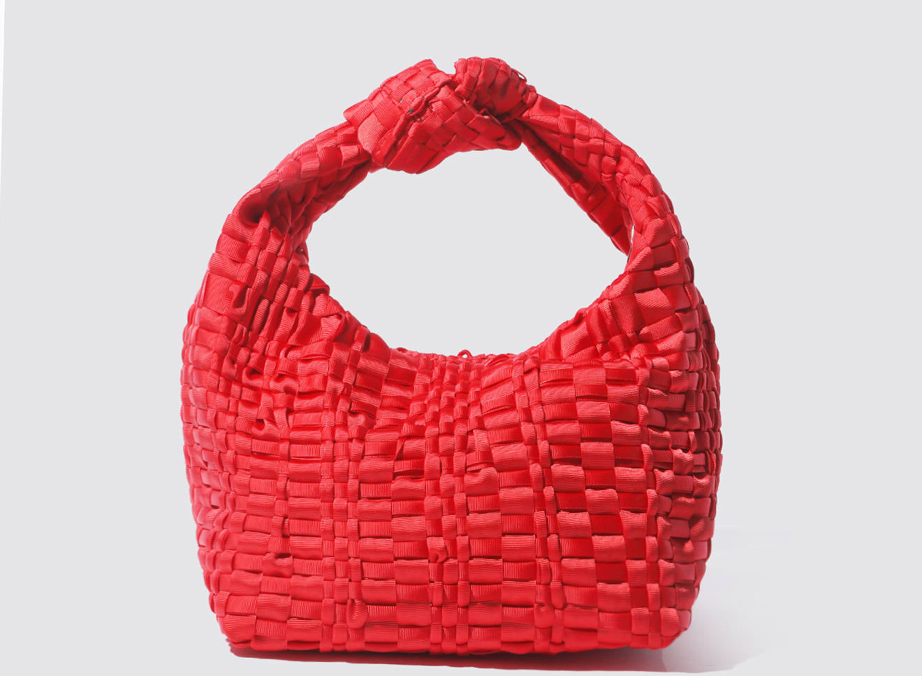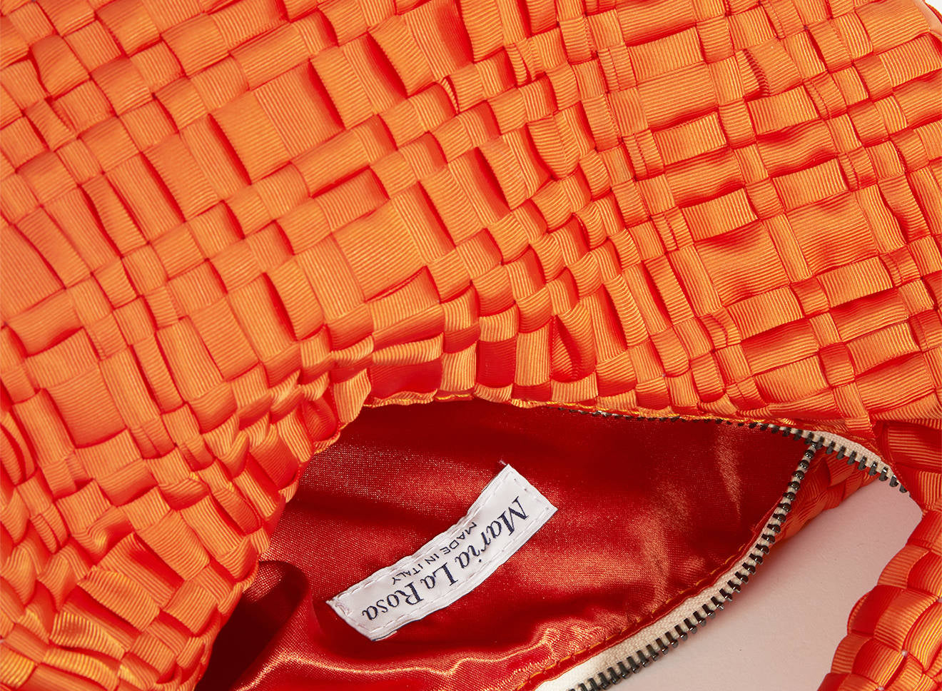 Borsa di piccole dimensioni in tessuto di nastro intrecciato, realizzato a mano su antichi telai. Dal design semplice, disponibile in diversi colori tinta unita, è perfetta per la stagione estiva. Dotata di chiusura a zip, manico a fusciacca con nodo, costituisce un modello compatto, dallo stile fresco e vivace. Interamente disegnata e prodotta in Italia.
