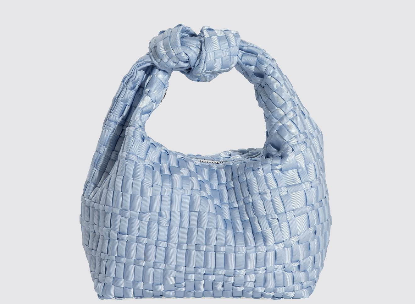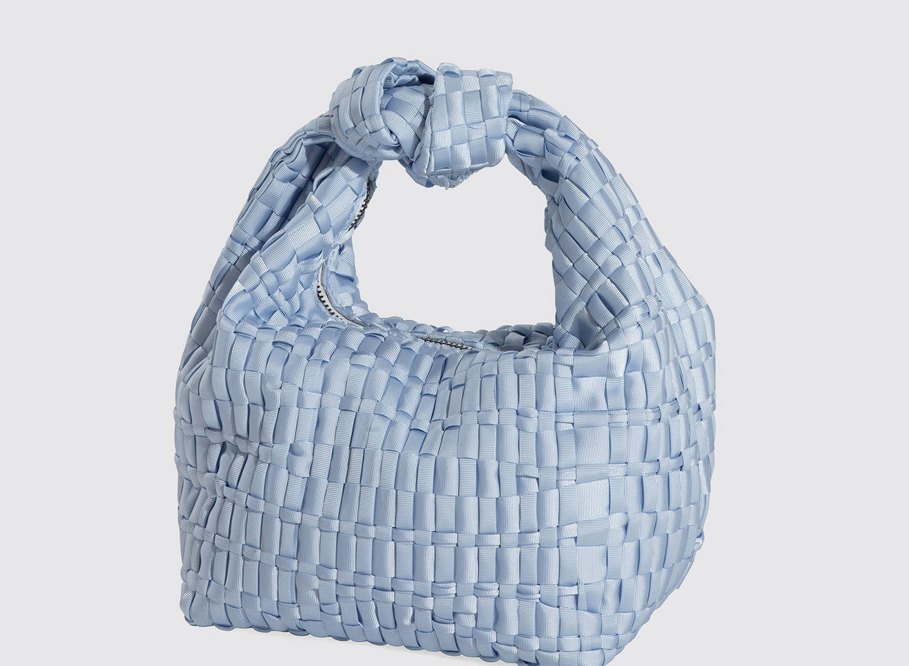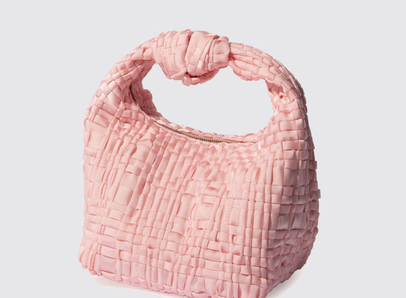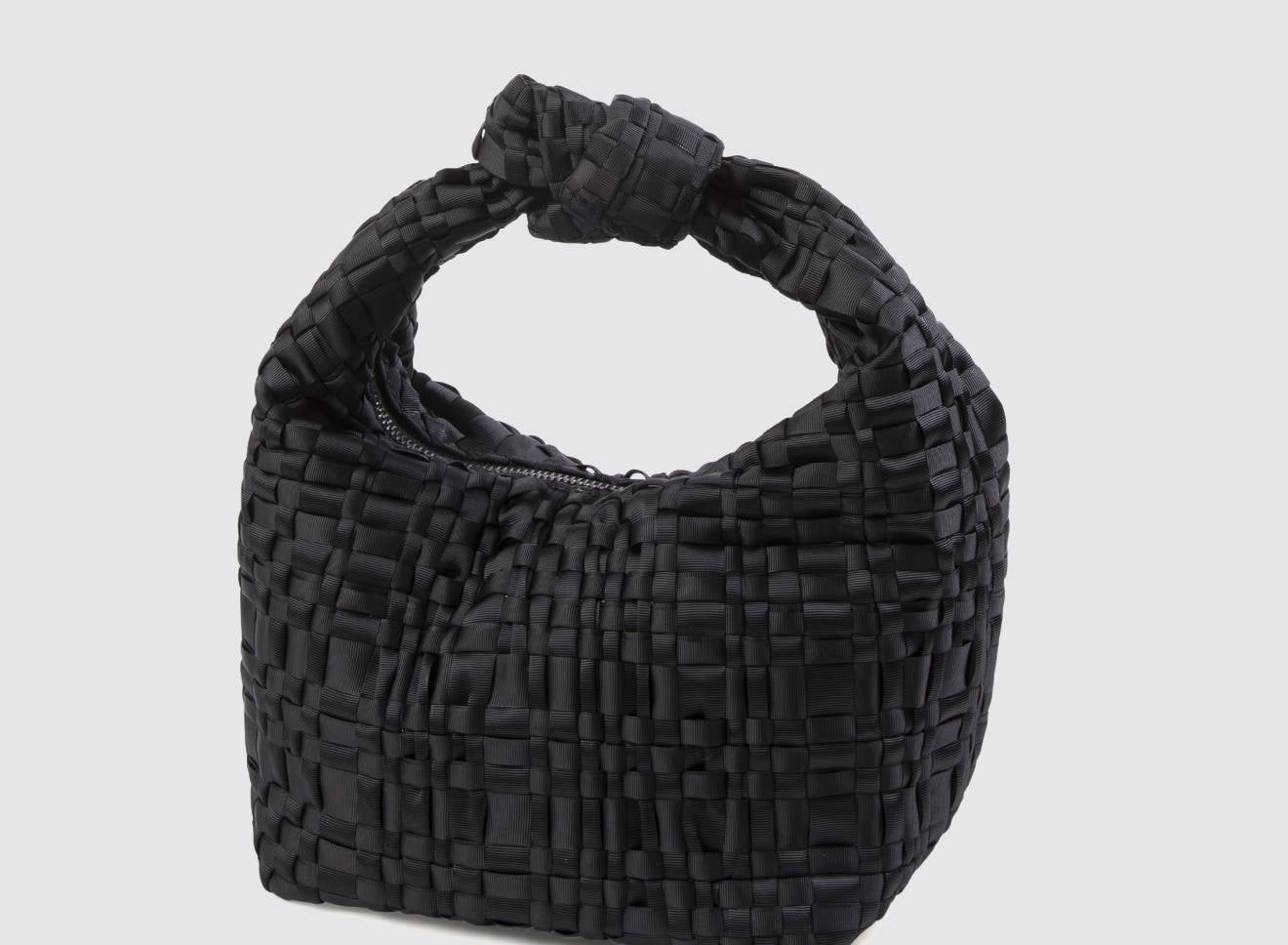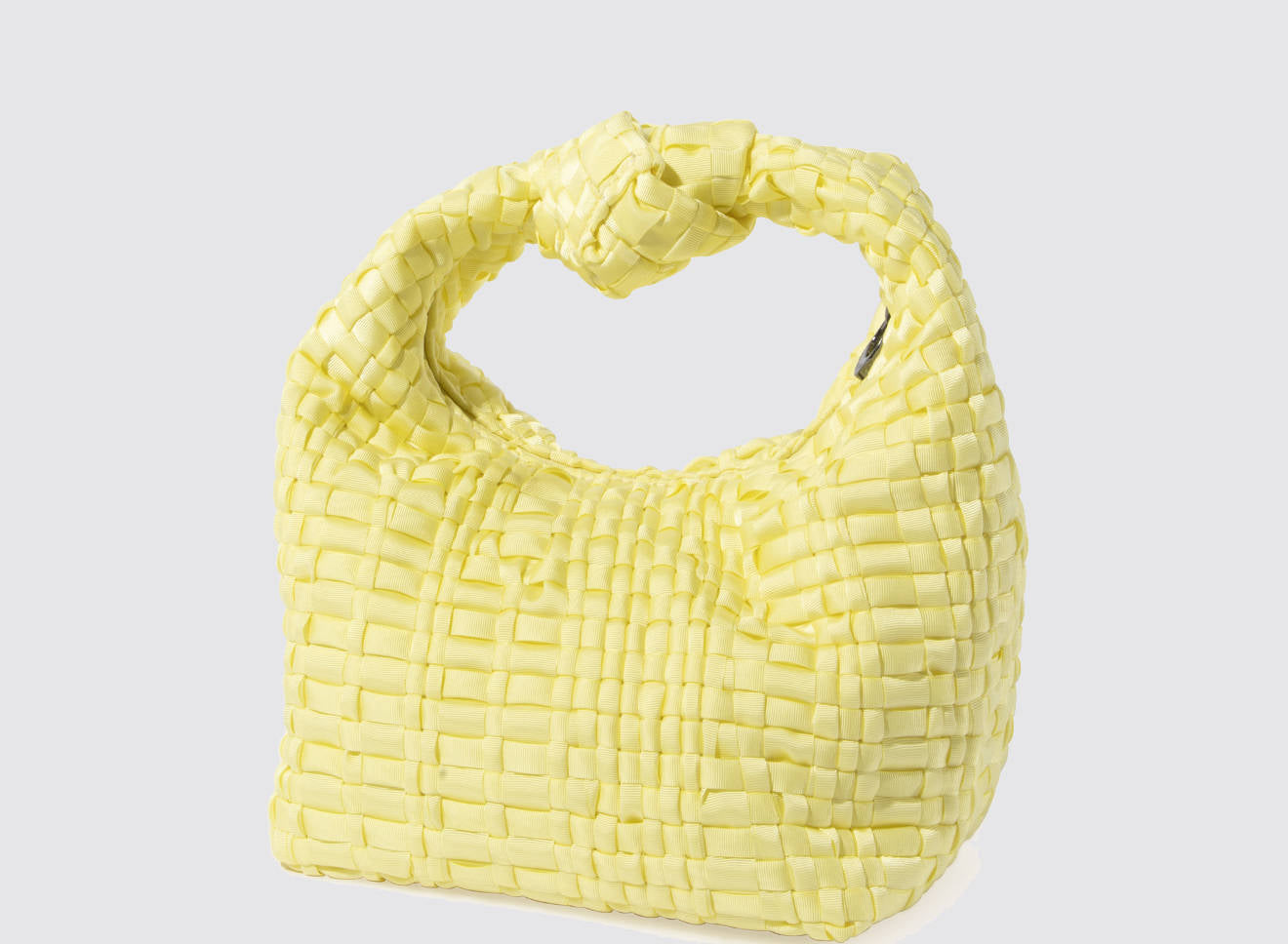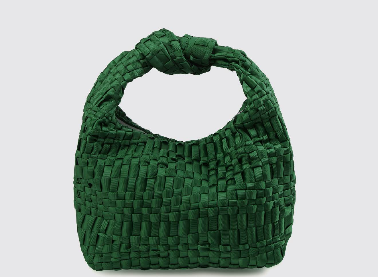 Borsa di piccole dimensioni in tessuto di nastro intrecciato, realizzato a mano su antichi telai. Dal design semplice, disponibile in diversi colori tinta unita, è perfetta per la stagione estiva. Dotata di chiusura a zip, manico a fusciacca con nodo, costituisce un modello compatto, dallo stile fresco e vivace. Interamente disegnata e prodotta in Italia.