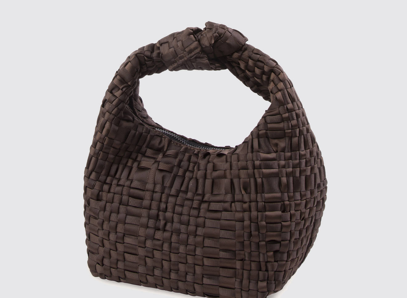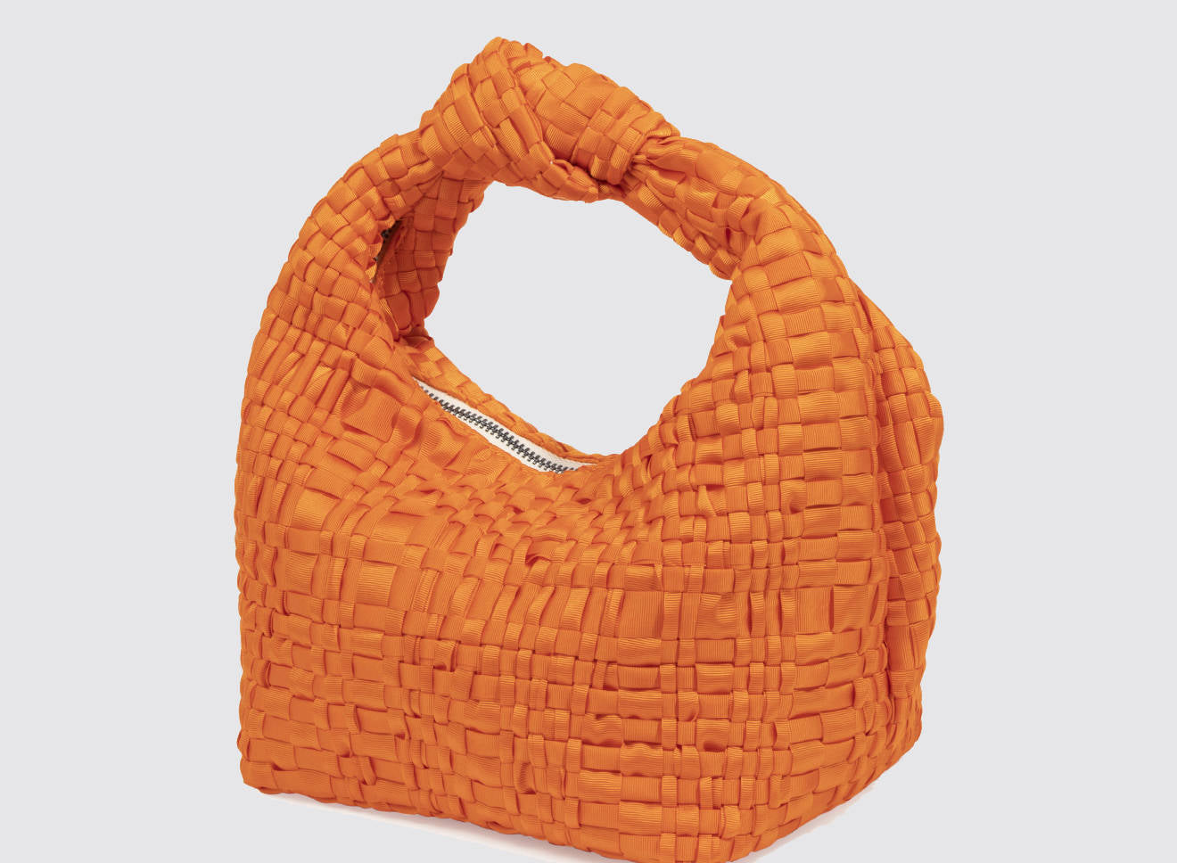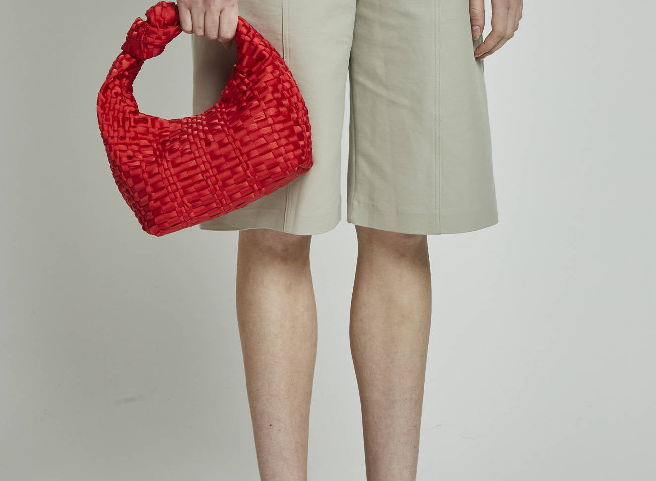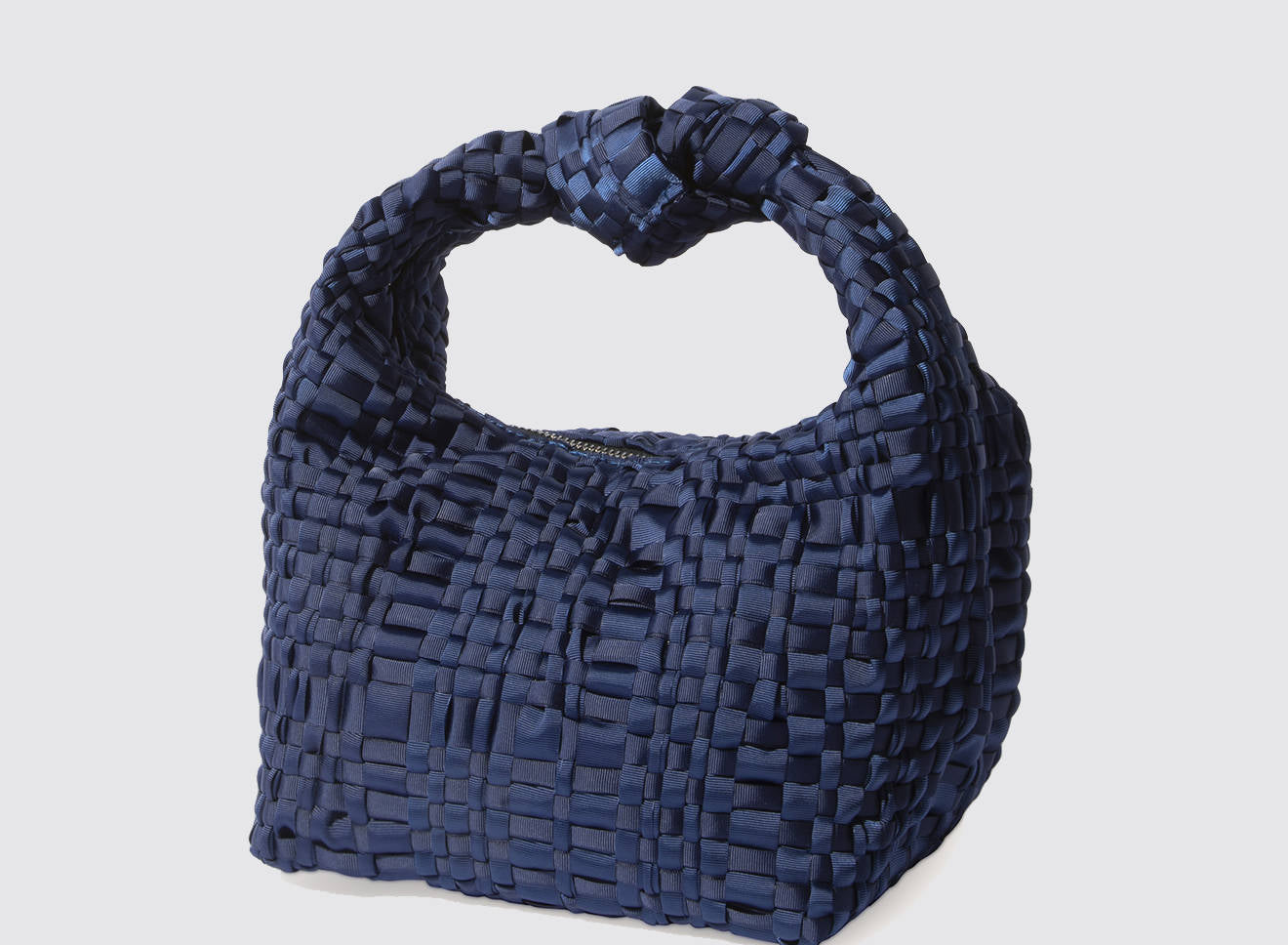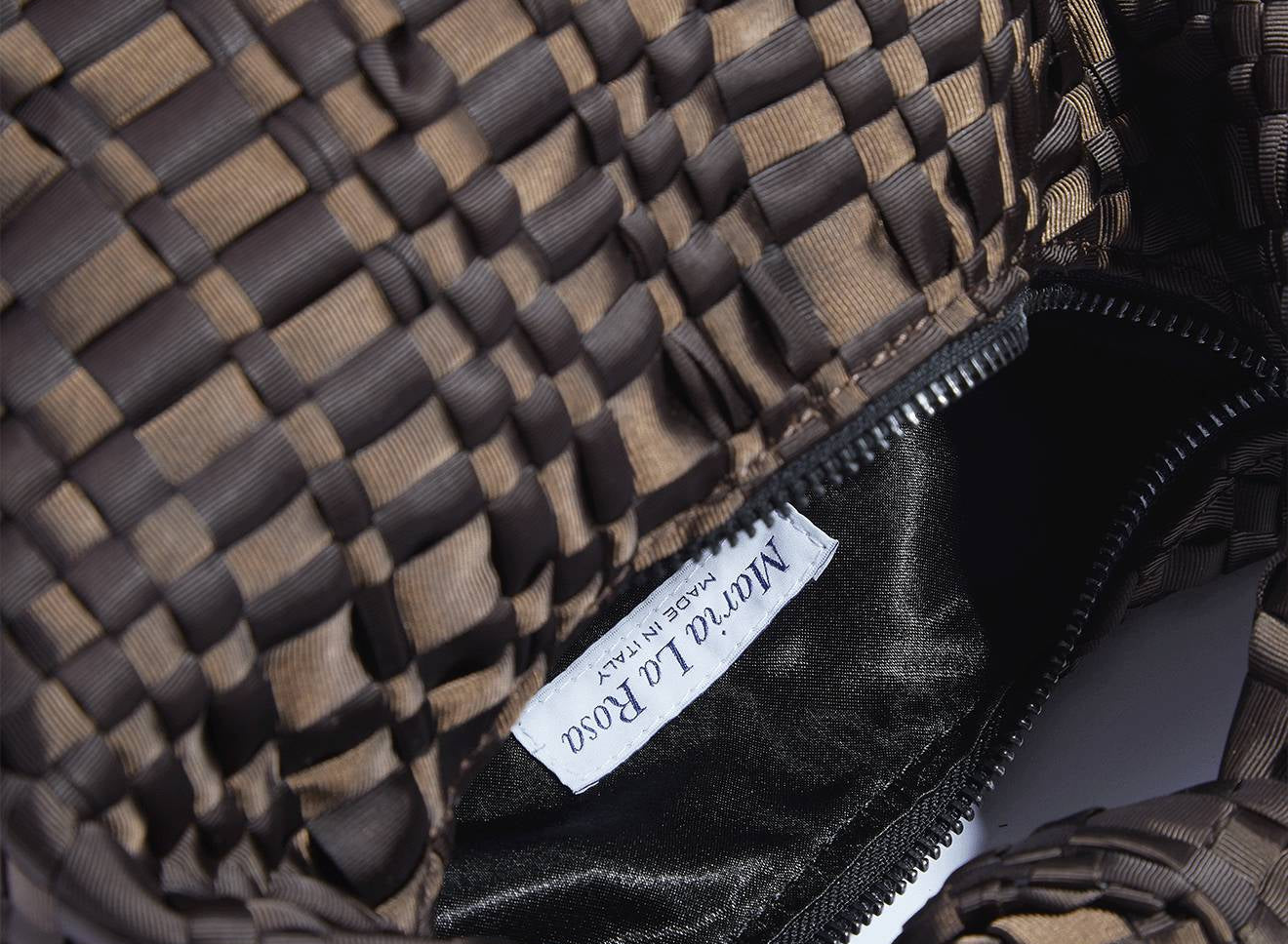 Borsa di piccole dimensioni in tessuto di nastro intrecciato, realizzato a mano su antichi telai. Dal design semplice, disponibile in diversi colori tinta unita, è perfetta per la stagione estiva. Dotata di chiusura a zip, manico a fusciacca con nodo, costituisce un modello compatto, dallo stile fresco e vivace. Interamente disegnata e prodotta in Italia.