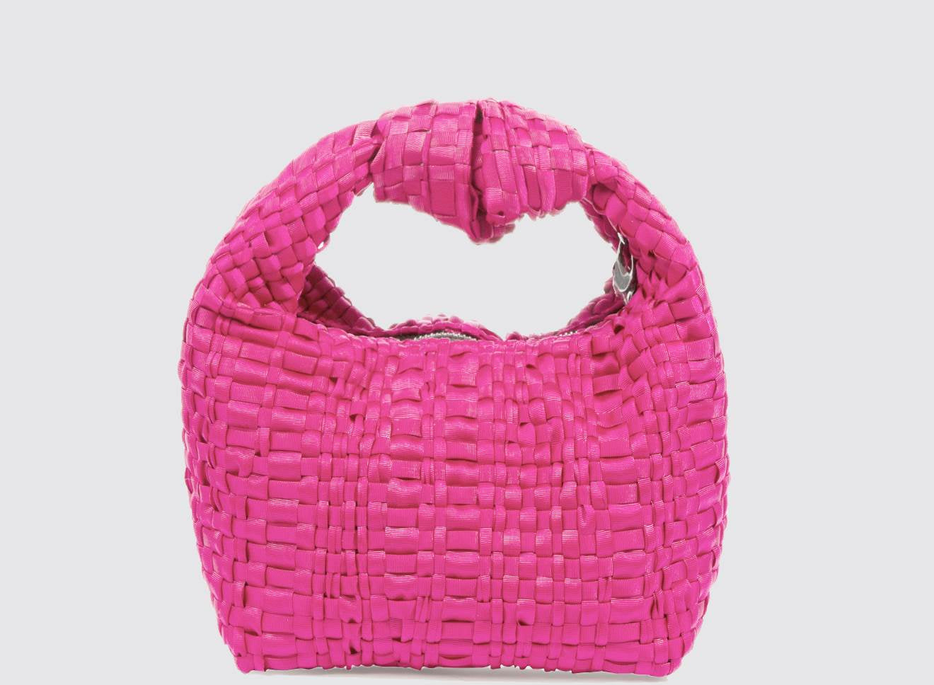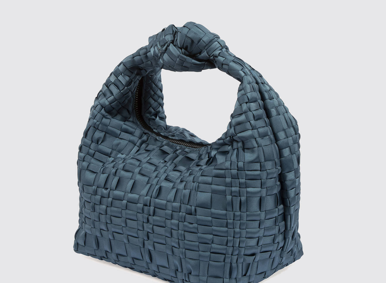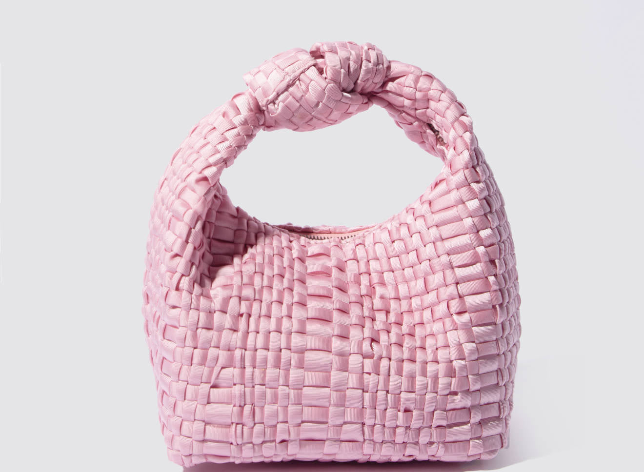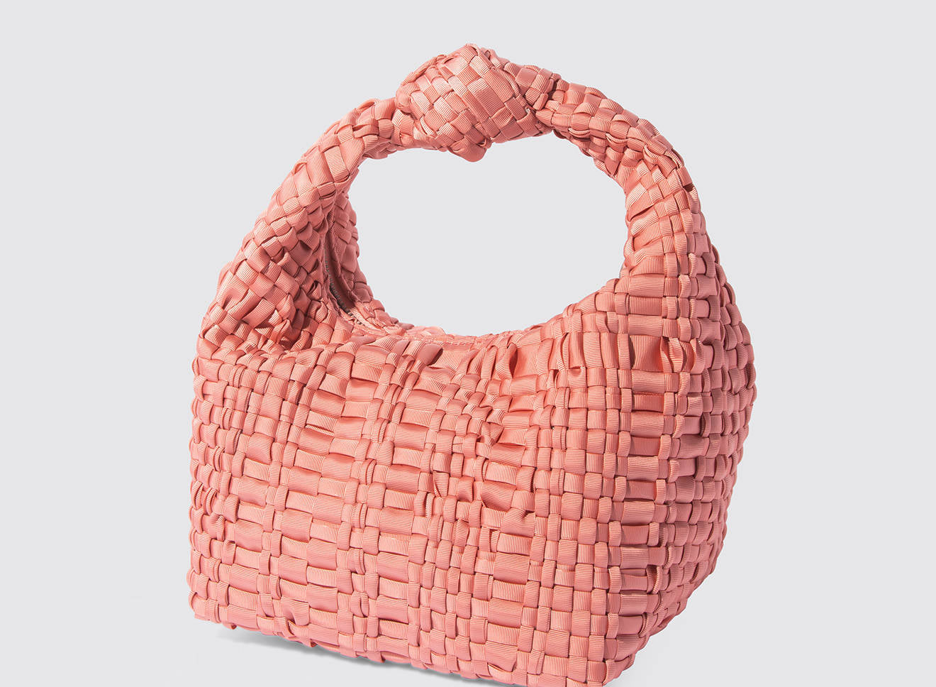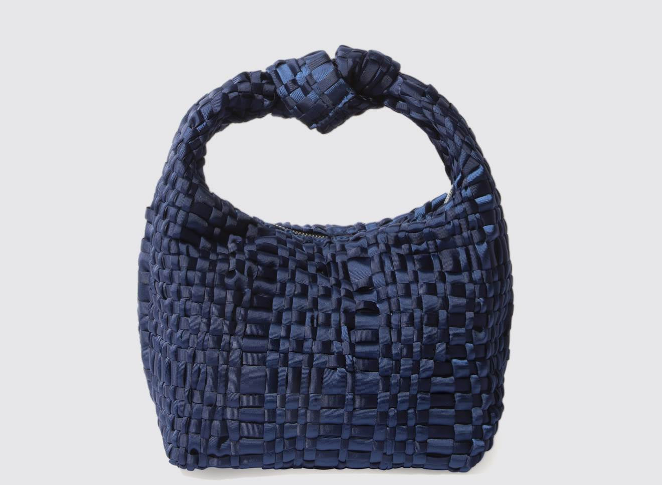 Borsa di piccole dimensioni in tessuto di nastro intrecciato, realizzato a mano su antichi telai. Dal design semplice, disponibile in diversi colori tinta unita, è perfetta per la stagione estiva. Dotata di chiusura a zip, manico a fusciacca con nodo, costituisce un modello compatto, dallo stile fresco e vivace. Interamente disegnata e prodotta in Italia.