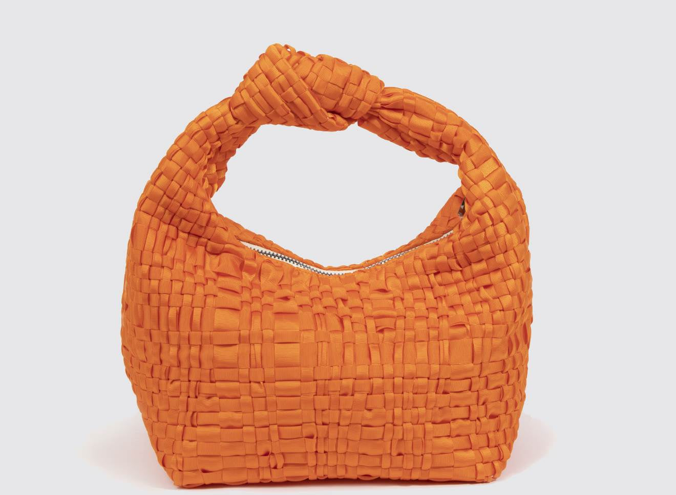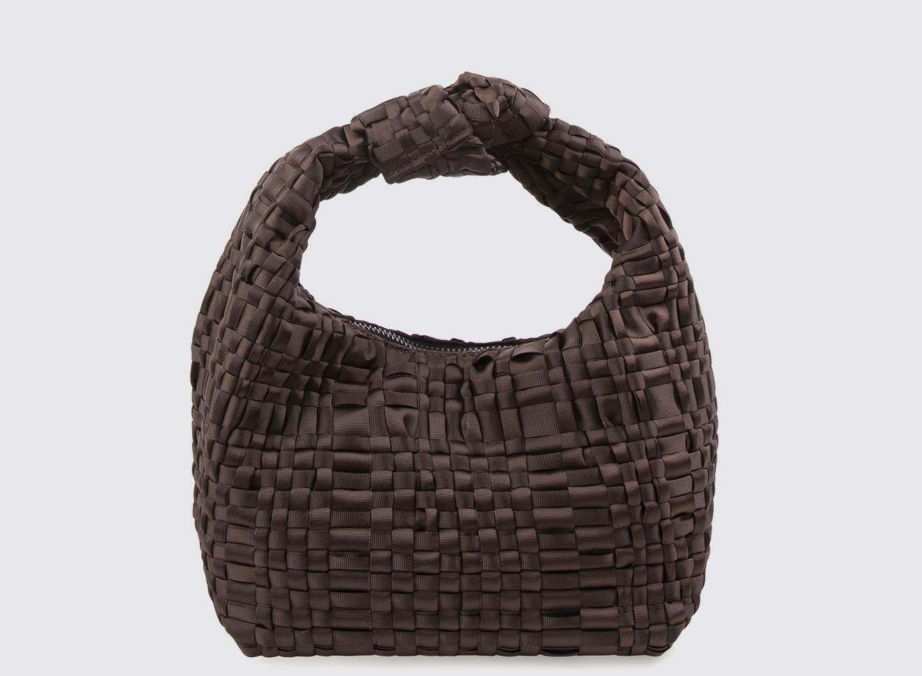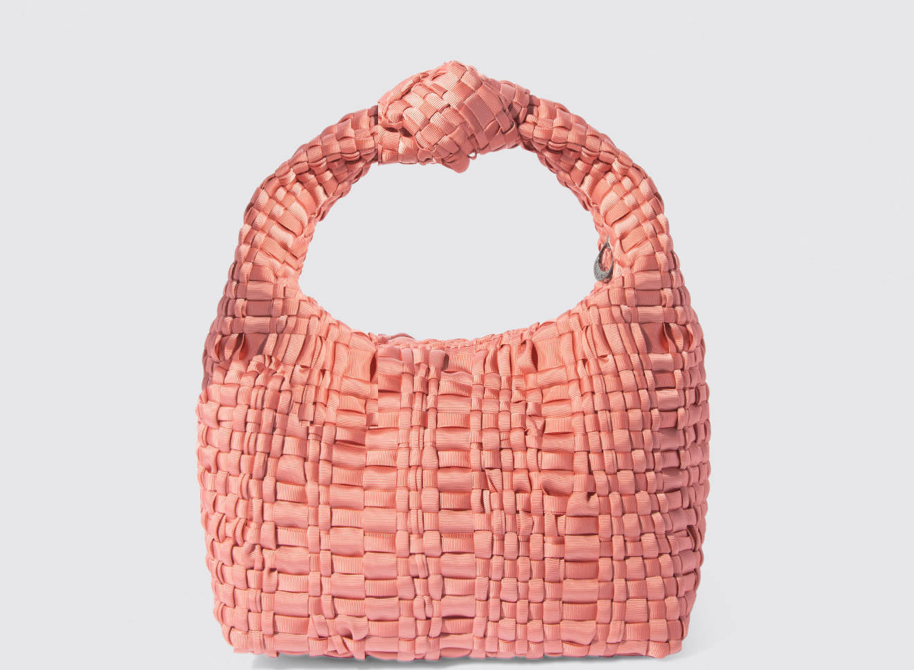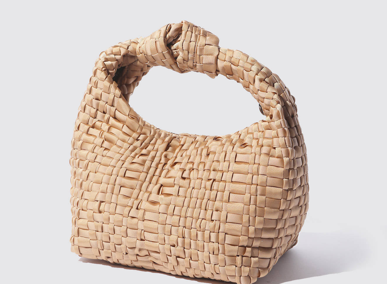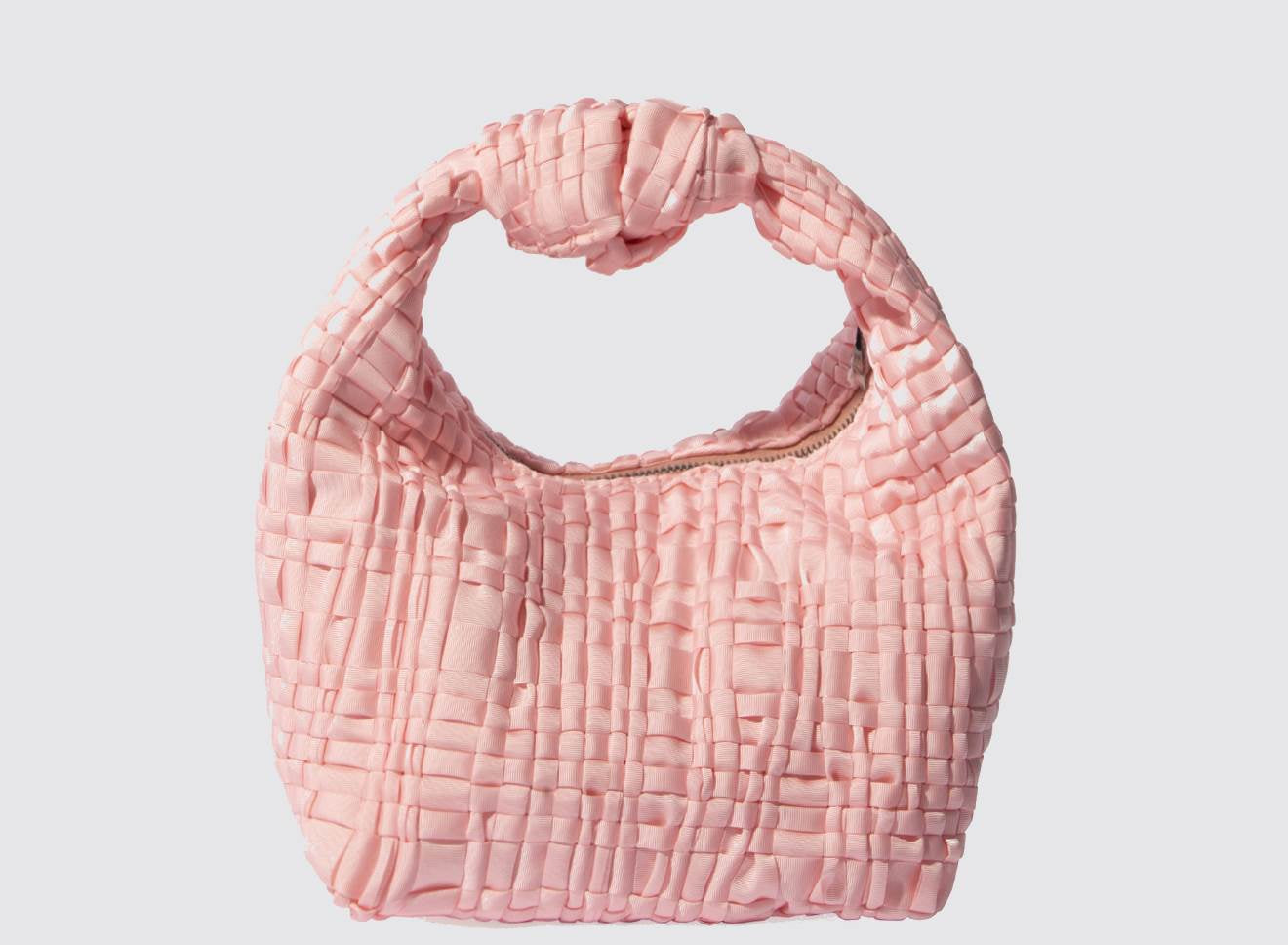 Borsa di piccole dimensioni in tessuto di nastro intrecciato, realizzato a mano su antichi telai. Dal design semplice, disponibile in diversi colori tinta unita, è perfetta per la stagione estiva. Dotata di chiusura a zip, manico a fusciacca con nodo, costituisce un modello compatto, dallo stile fresco e vivace. Interamente disegnata e prodotta in Italia.
