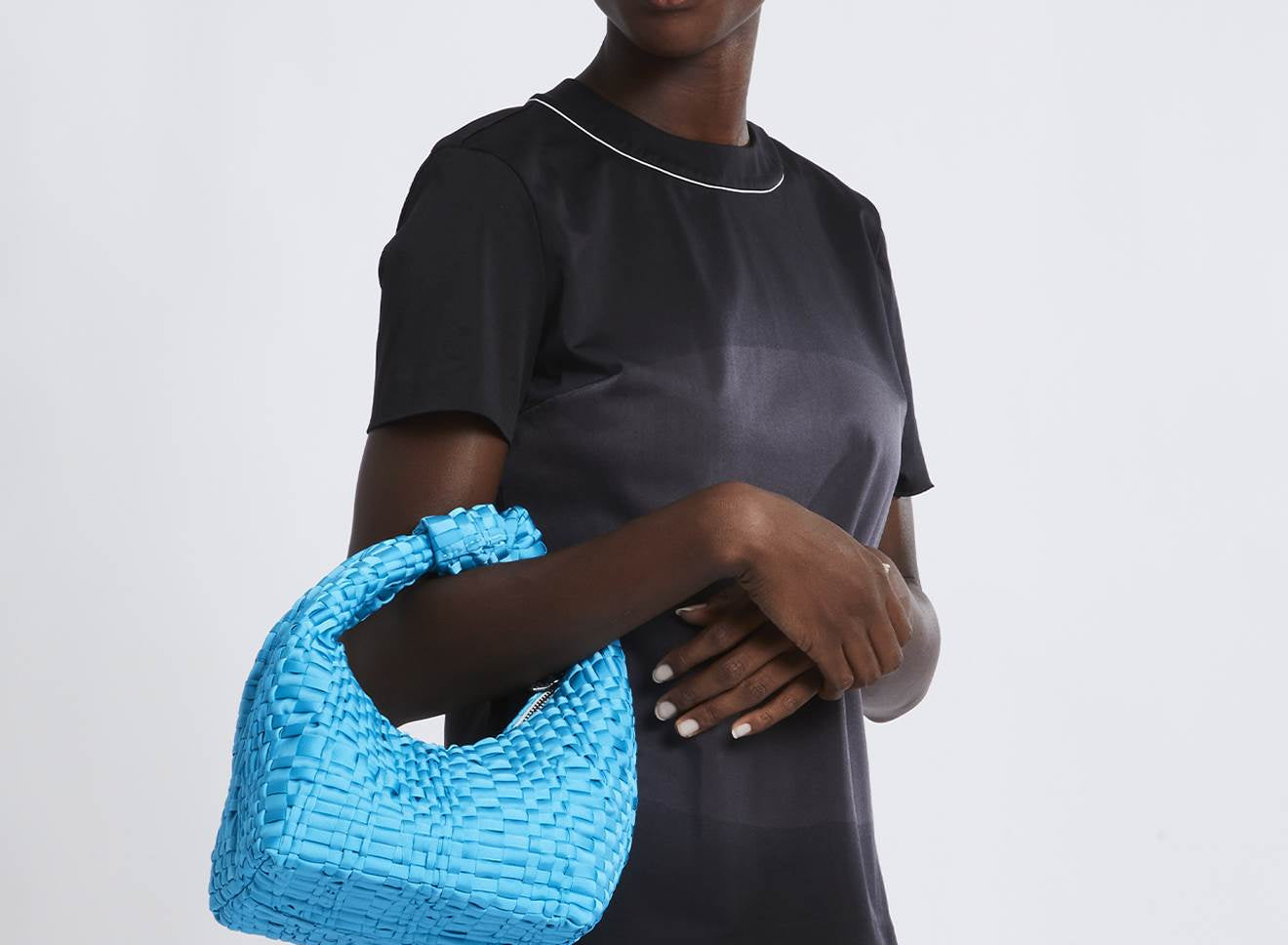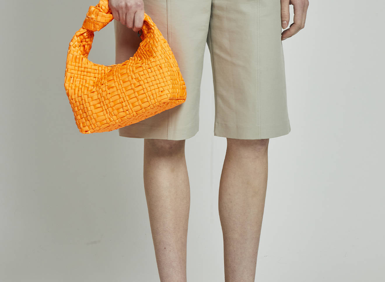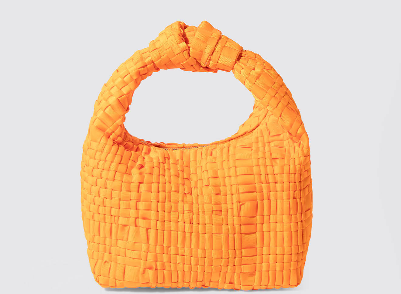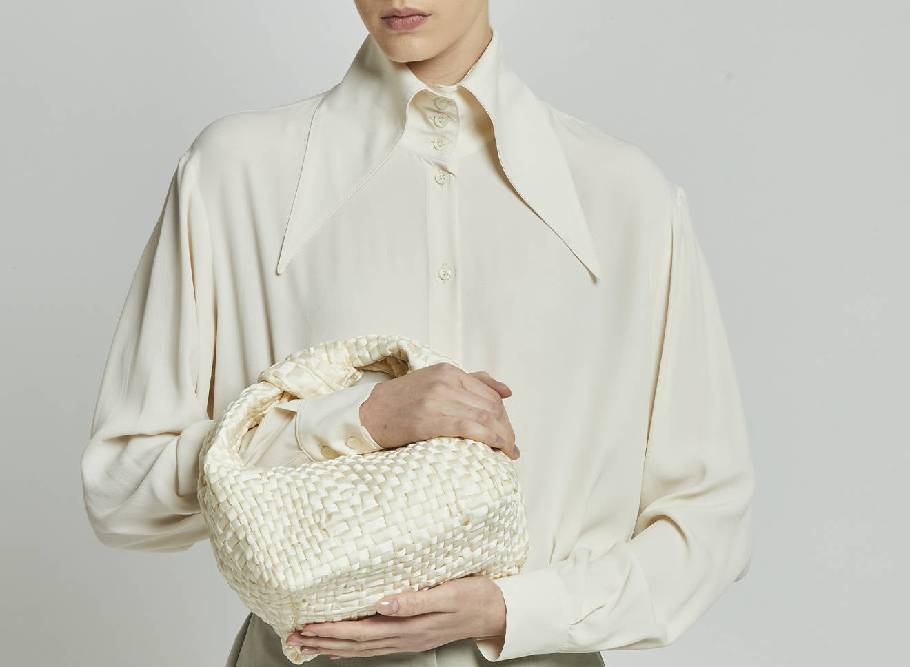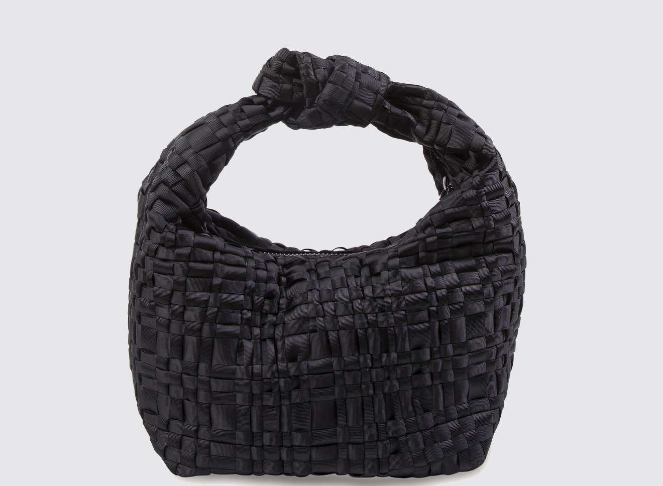 Borsa di piccole dimensioni in tessuto di nastro intrecciato, realizzato a mano su antichi telai. Dal design semplice, disponibile in diversi colori tinta unita, è perfetta per la stagione estiva. Dotata di chiusura a zip, manico a fusciacca con nodo, costituisce un modello compatto, dallo stile fresco e vivace. Interamente disegnata e prodotta in Italia.