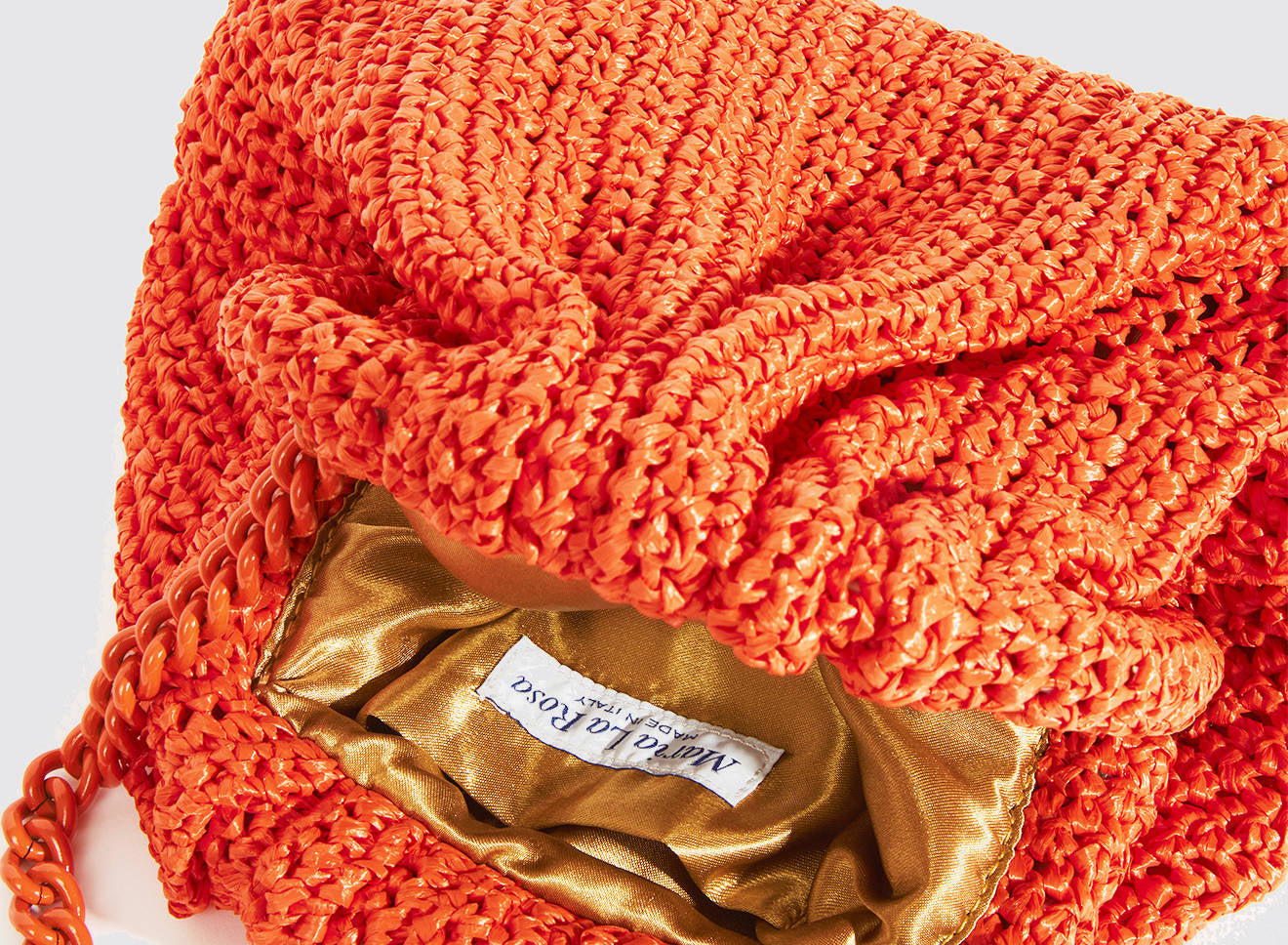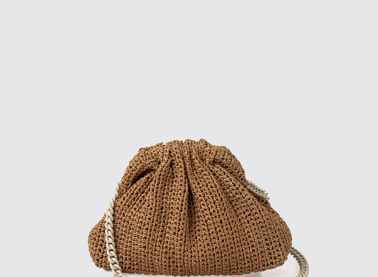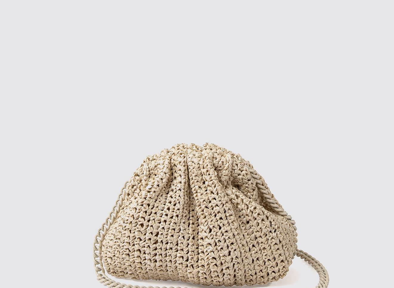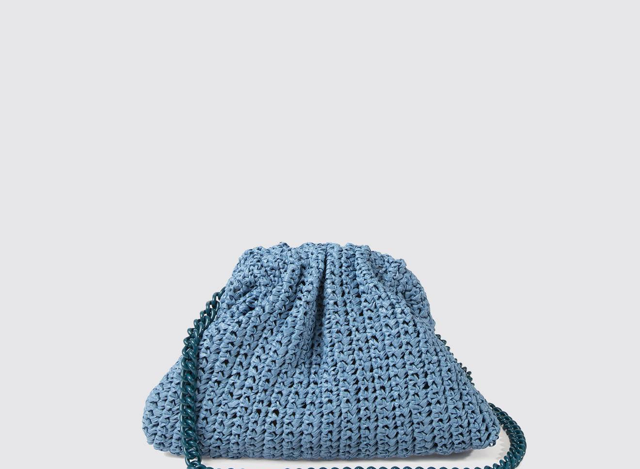 Clutch da donna di piccole dimensioni in rafia, realizzata interamente a mano con la tecnica crochet. Questa inedita versione ridotta dell’icon bag Maria La Rosa, è capiente quanto basta per portare con sé l'essenziale. Perfetta per tutte le stagioni, costituisce l’emblema di una nuova eleganza metropolitana.