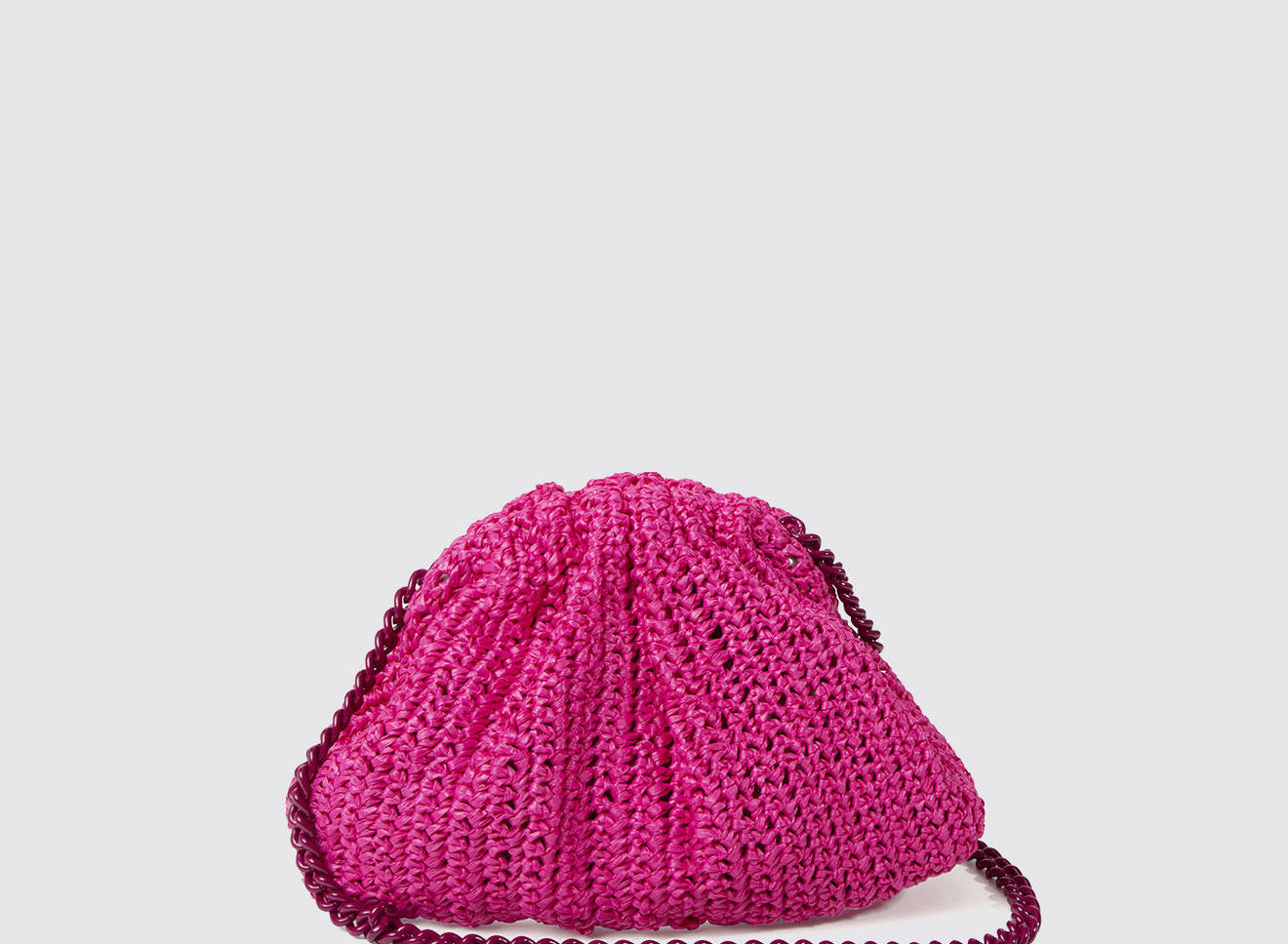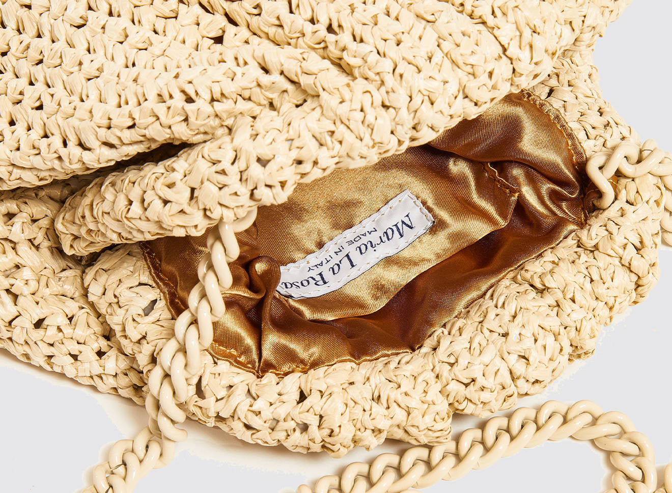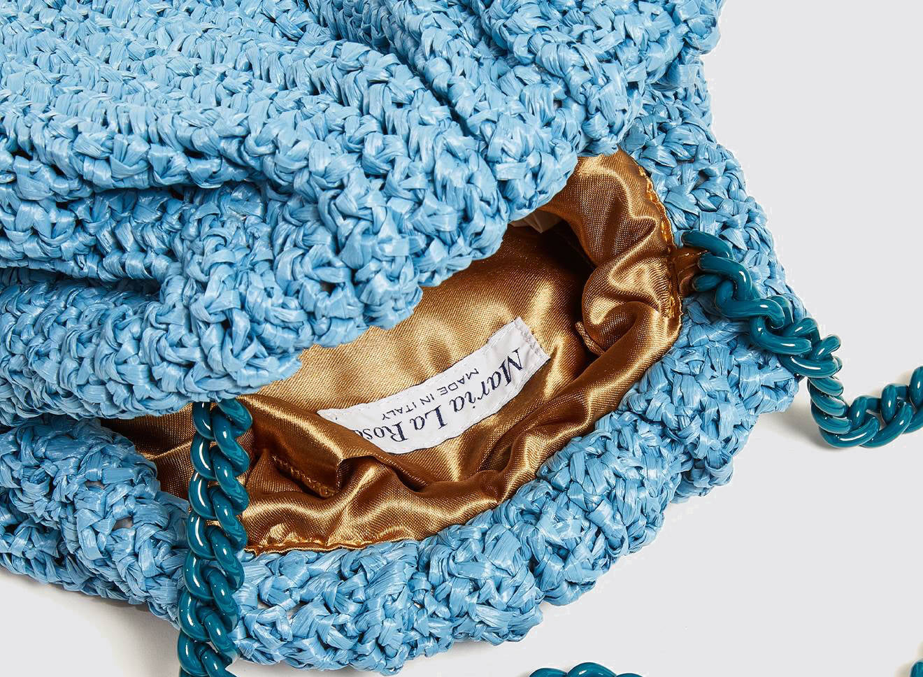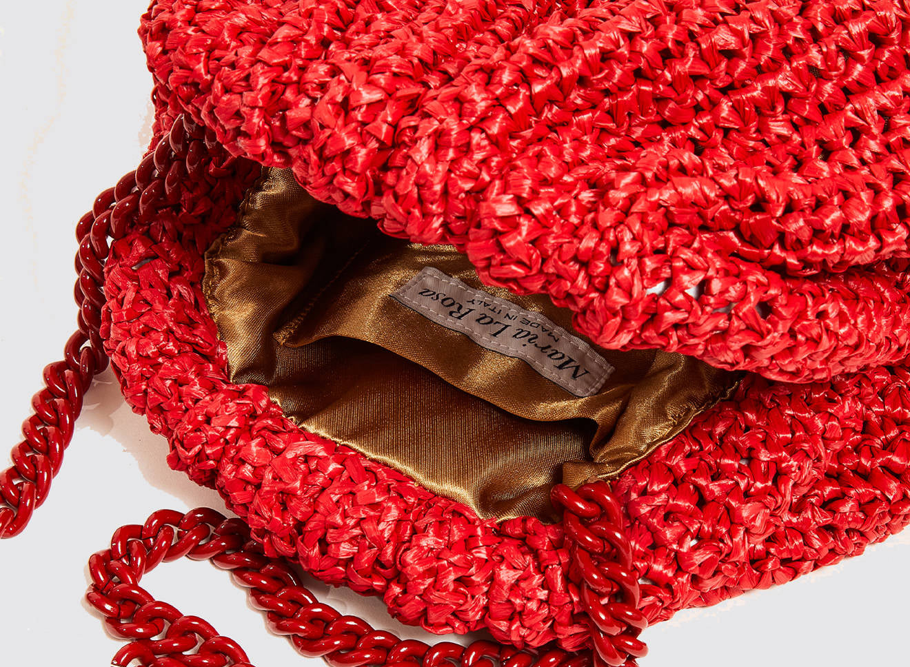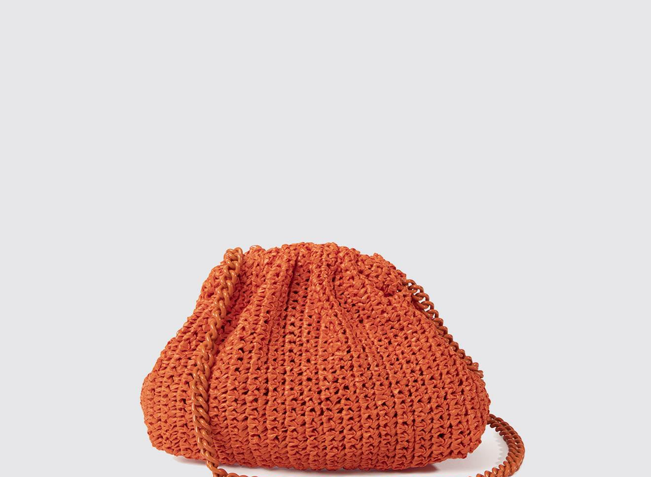 Clutch da donna di piccole dimensioni in rafia, realizzata interamente a mano con la tecnica crochet. Questa inedita versione ridotta dell’icon bag Maria La Rosa, è capiente quanto basta per portare con sé l'essenziale. Perfetta per tutte le stagioni, costituisce l’emblema di una nuova eleganza metropolitana.