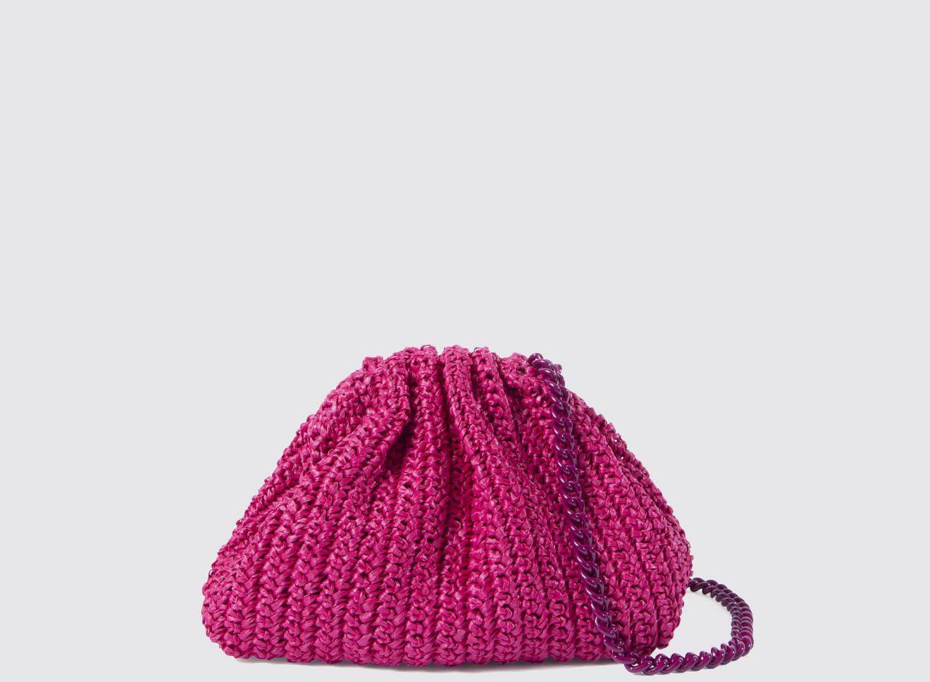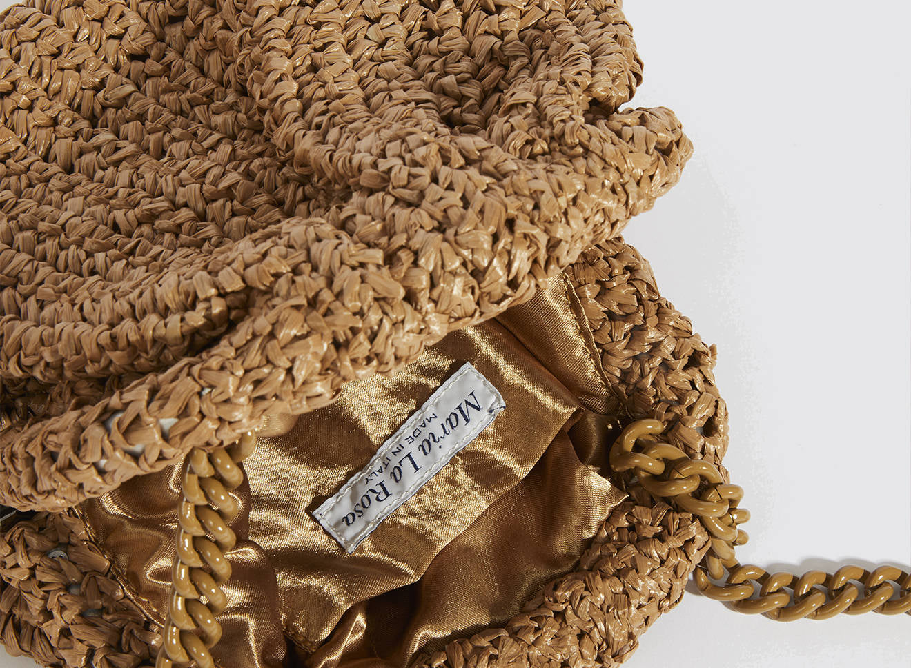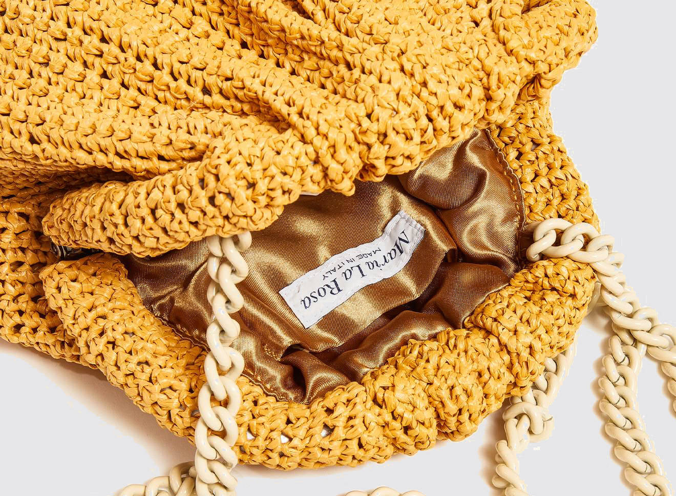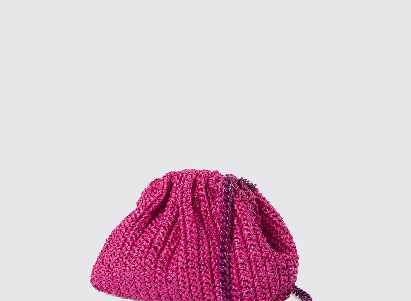 Clutch da donna di piccole dimensioni in rafia, realizzata interamente a mano con la tecnica crochet. Questa inedita versione ridotta dell’icon bag Maria La Rosa, è capiente quanto basta per portare con sé l'essenziale. Perfetta per tutte le stagioni, costituisce l’emblema di una nuova eleganza metropolitana.