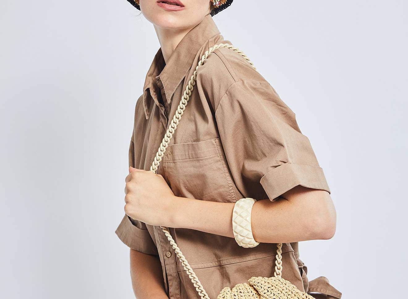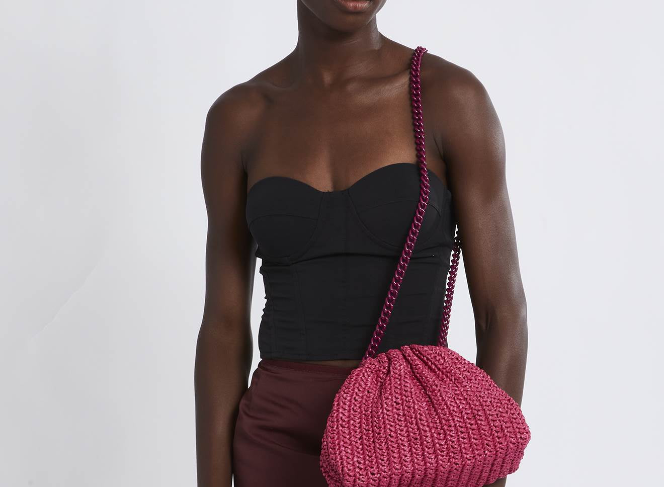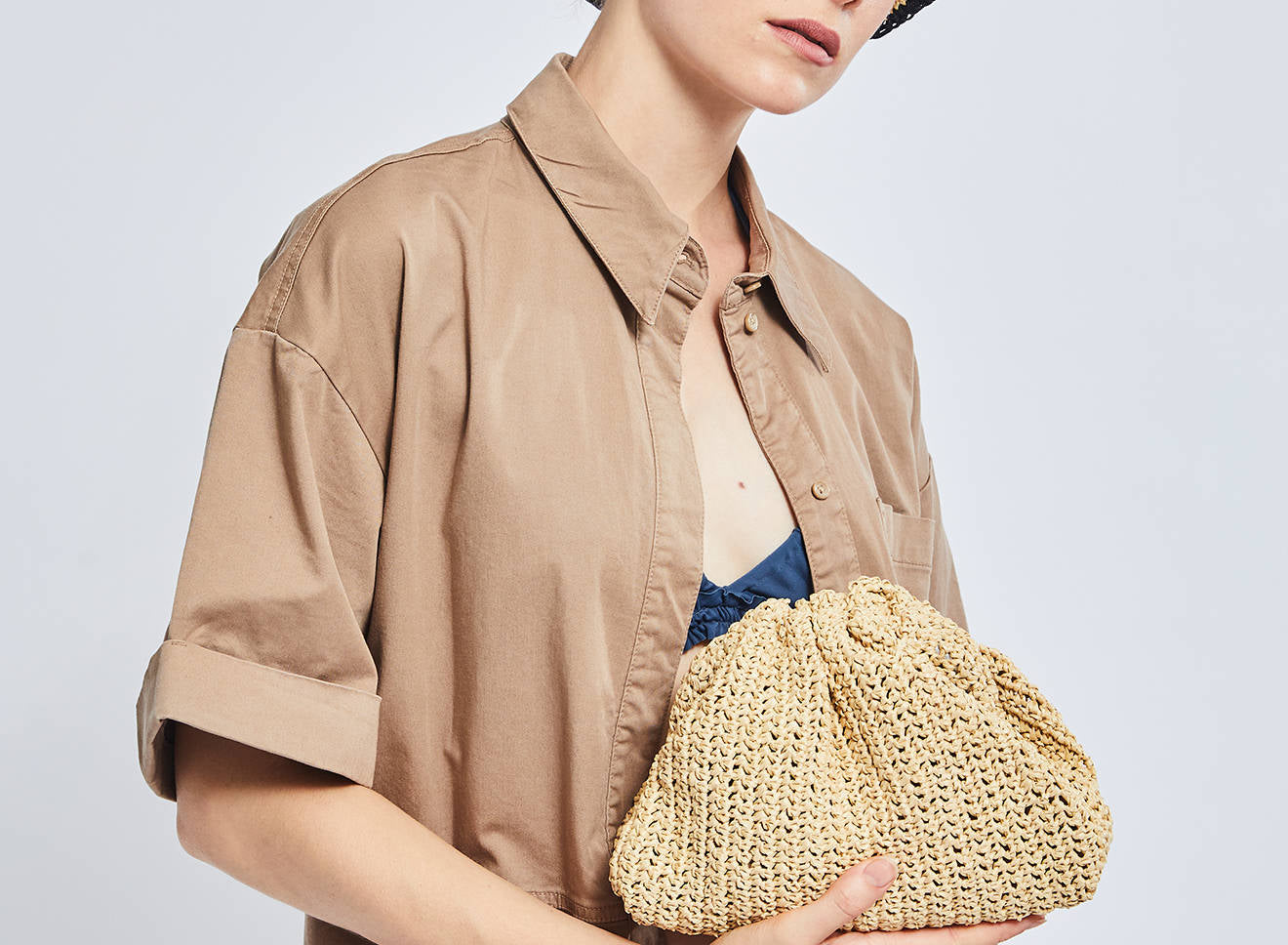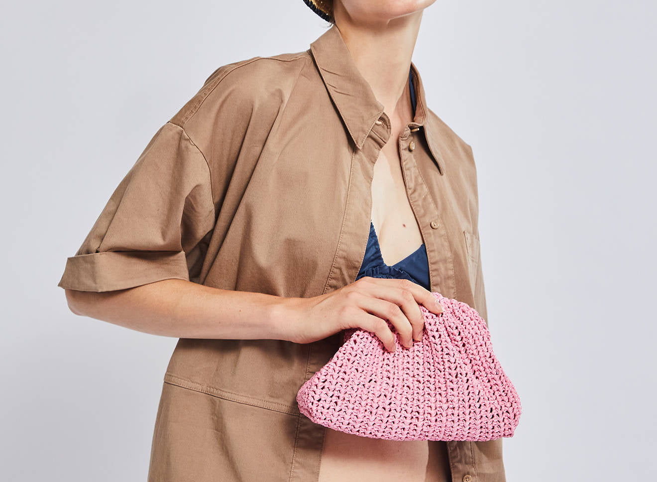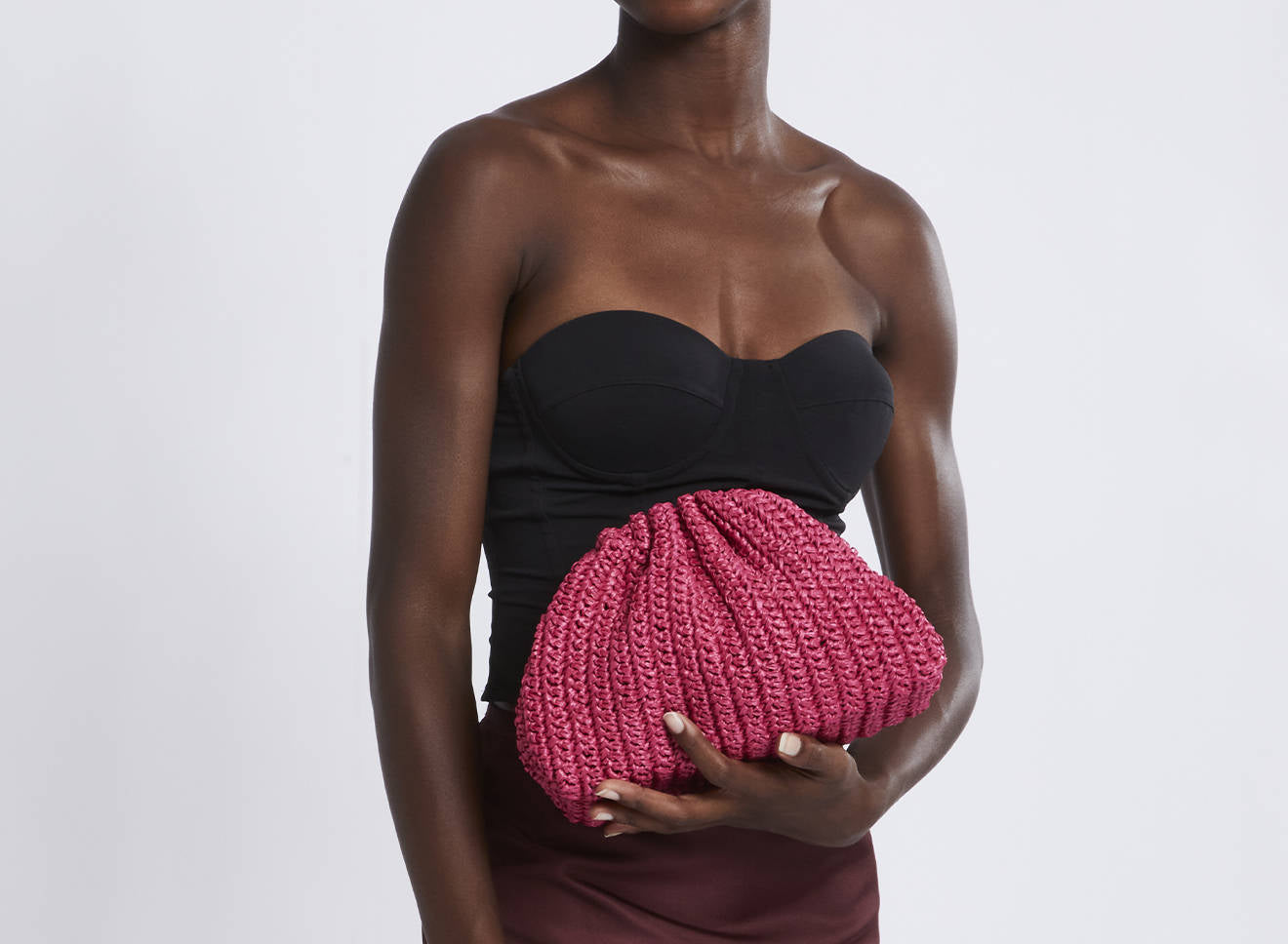 Clutch da donna di piccole dimensioni in rafia, realizzata interamente a mano con la tecnica crochet. Questa inedita versione ridotta dell’icon bag Maria La Rosa, è capiente quanto basta per portare con sé l'essenziale. Perfetta per tutte le stagioni, costituisce l’emblema di una nuova eleganza metropolitana.
