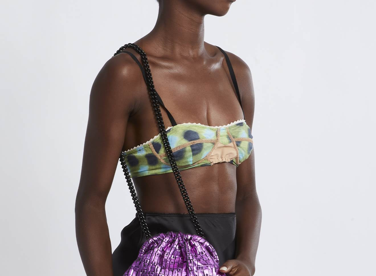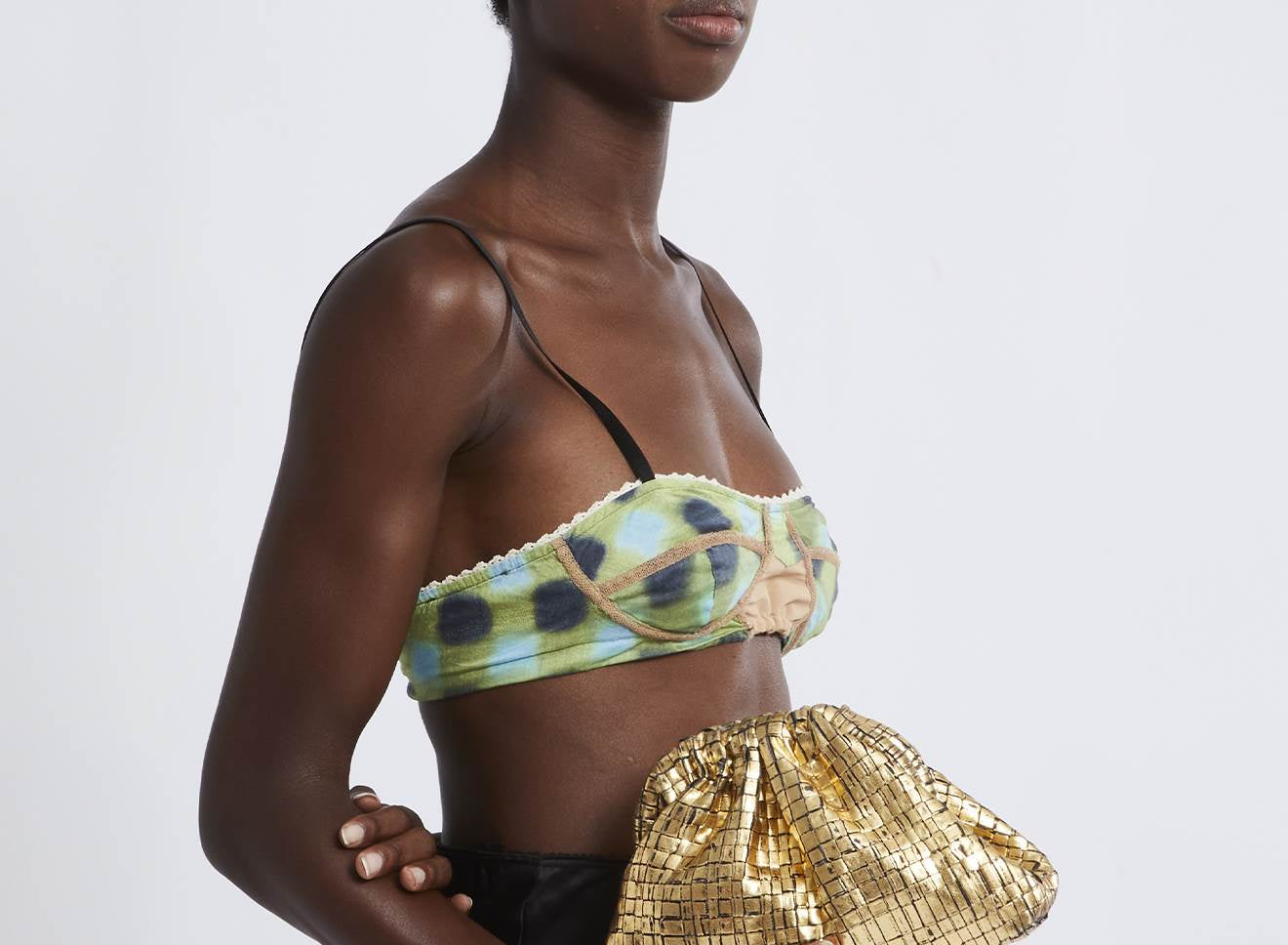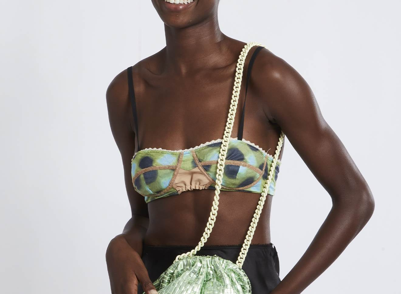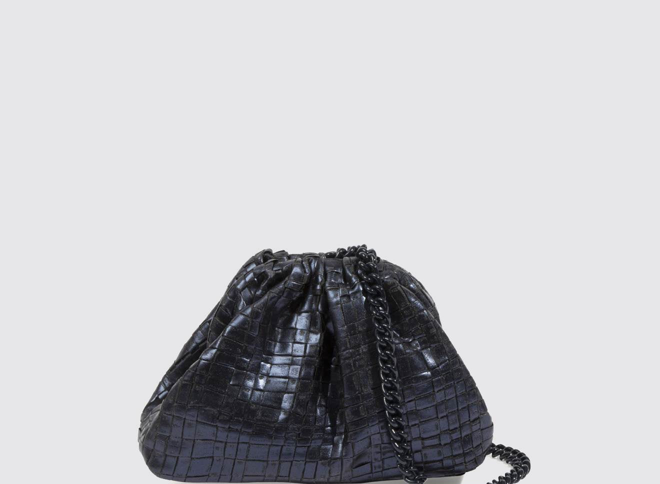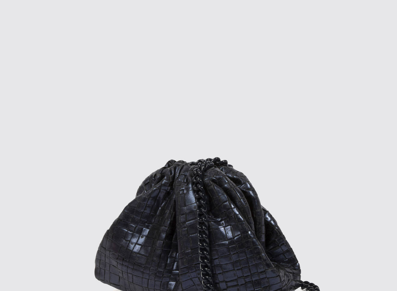 Clutch da donna di piccole dimensioni in tessuto di nastro intrecciato, realizzato a mano su antichi telai. Questo modello costituisce l’icon bag Maria La Rosa, perfetta per tutte le stagioni, emblema di una nuova eleganza metropolitana, che assicura capienza e funzionalità. L’iconica trama intrecciata, in questa nuova versione, è ricoperta di una lamina che risplende di riflessi color oro, turchese, o smeraldo. È dotata di catena abbinata per indossarla anche a tracolla.