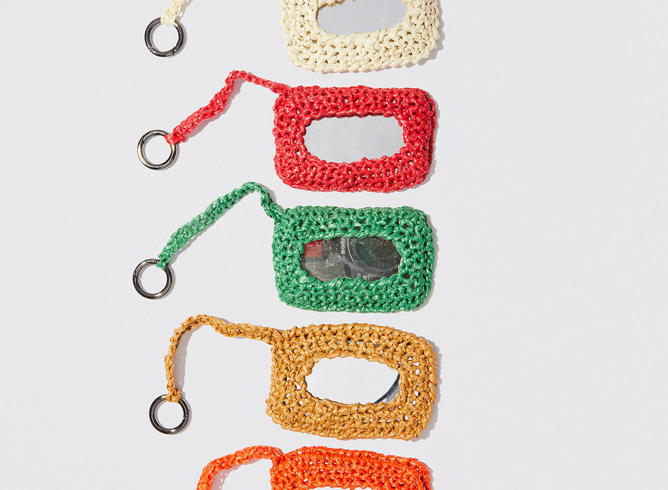 Un ciondolo decorativo pensato per accompagnare borse, zaini o chiavi.Realizzato a mano con tecnica crochet, racchiude uno specchio centrale che riflette la luce e aggiunge un dettaglio inatteso. L’anello metallico permette di agganciarlo facilmente, mentre la texture artigianale e il colore naturale lo rendono un piccolo accento di stile, leggero e immediato.