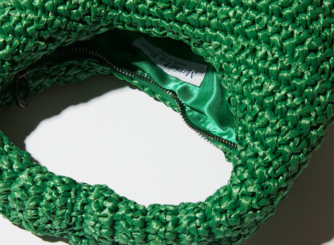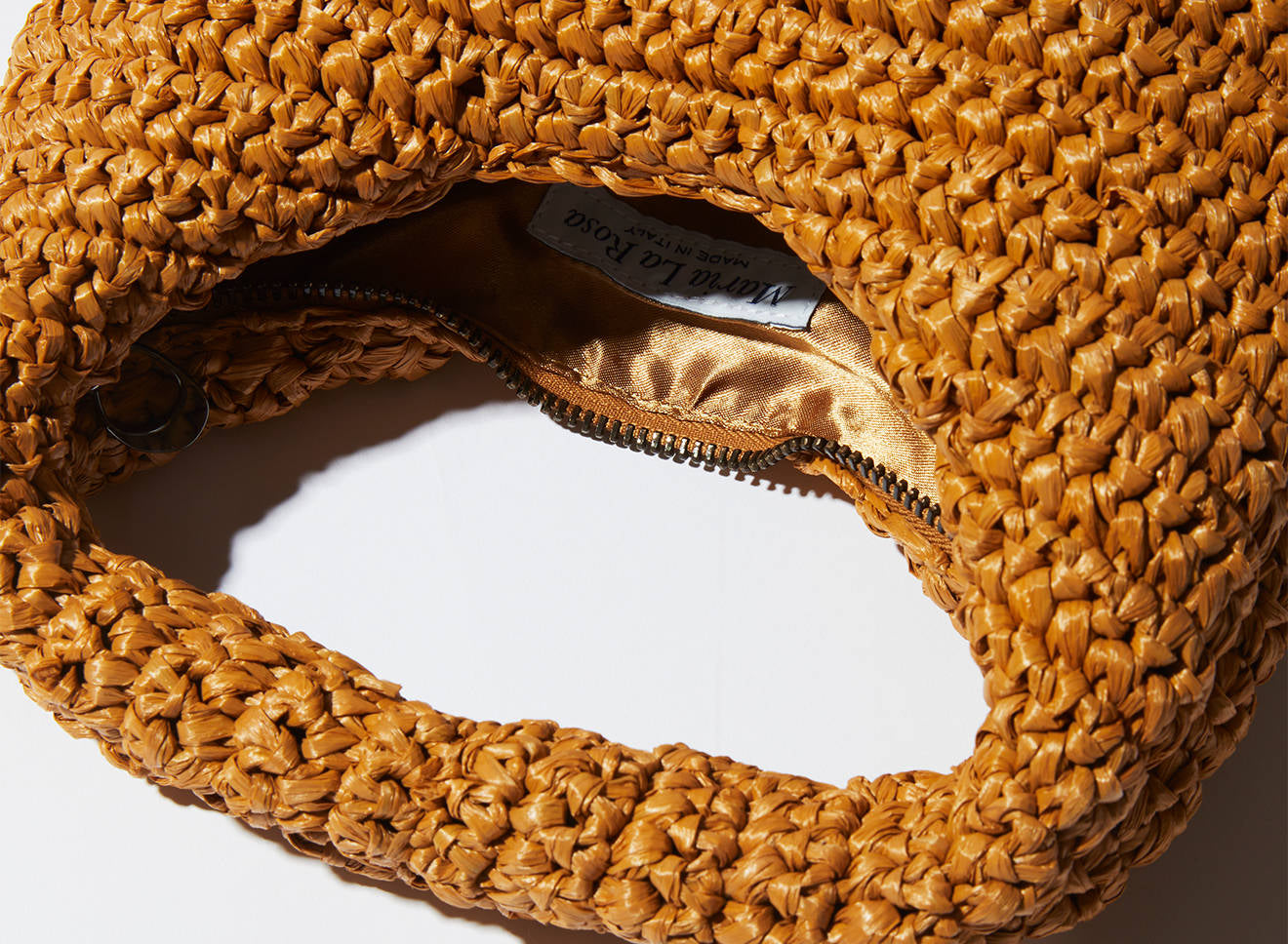 Hobo bag in rafia realizzata con la tecnica crochet. Questa borsa artigianale unisce la bellezza del crochet alla praticità di una chiusura con zip, offrendo uno stile unico e una funzionalità impeccabile, ideale per l'uso quotidiano. Perfetta per la stagione estiva, la rafia è leggera ma abbastanza robusta da garantire durata nel tempo.Un accessorio senza tempo che unisce praticità e stile, la nostra Nana Solid è l’ideale per chi cerca una borsa versatile, comoda e di tendenza. Interamente disegnata e prodotta in Italia.