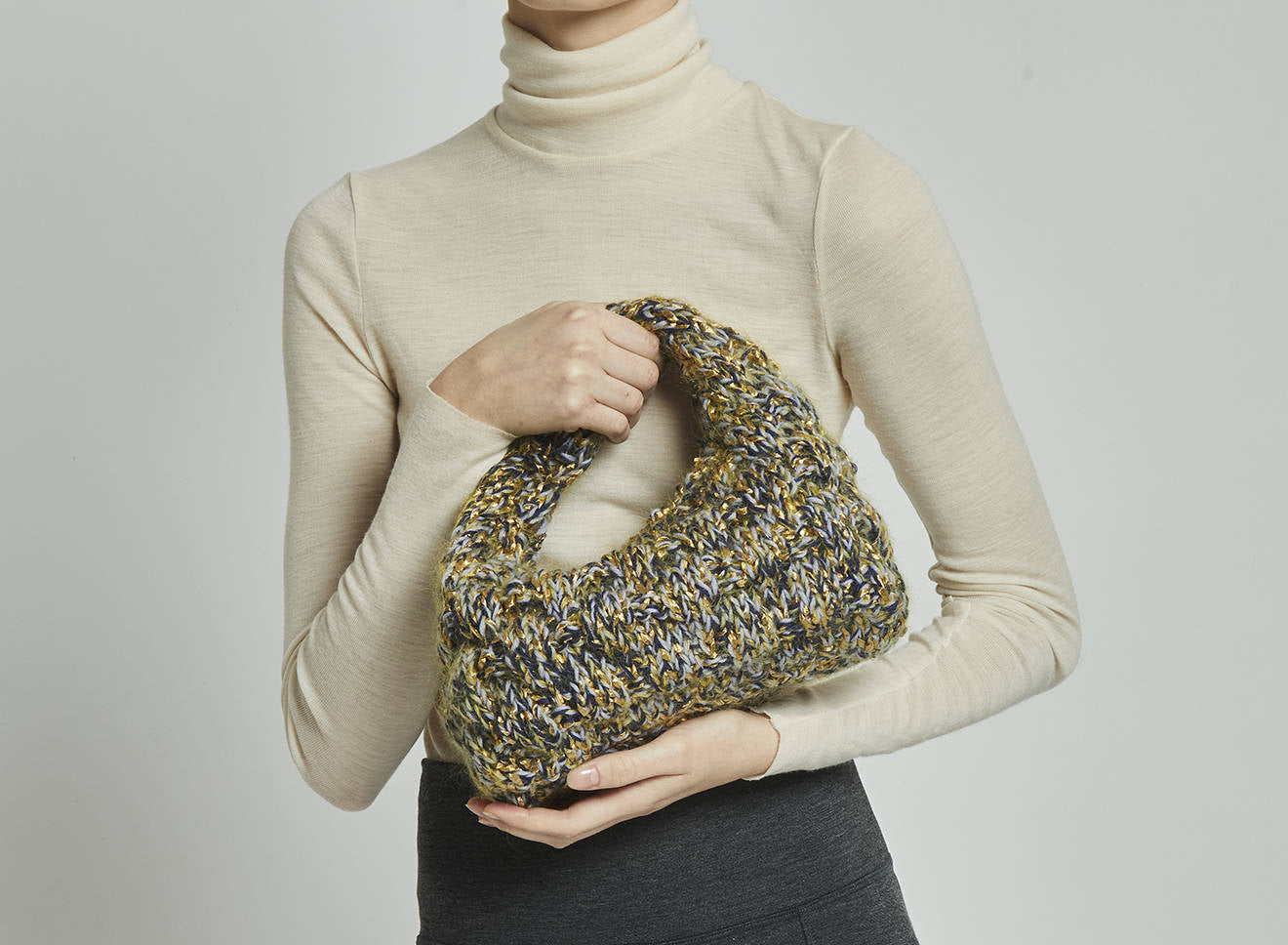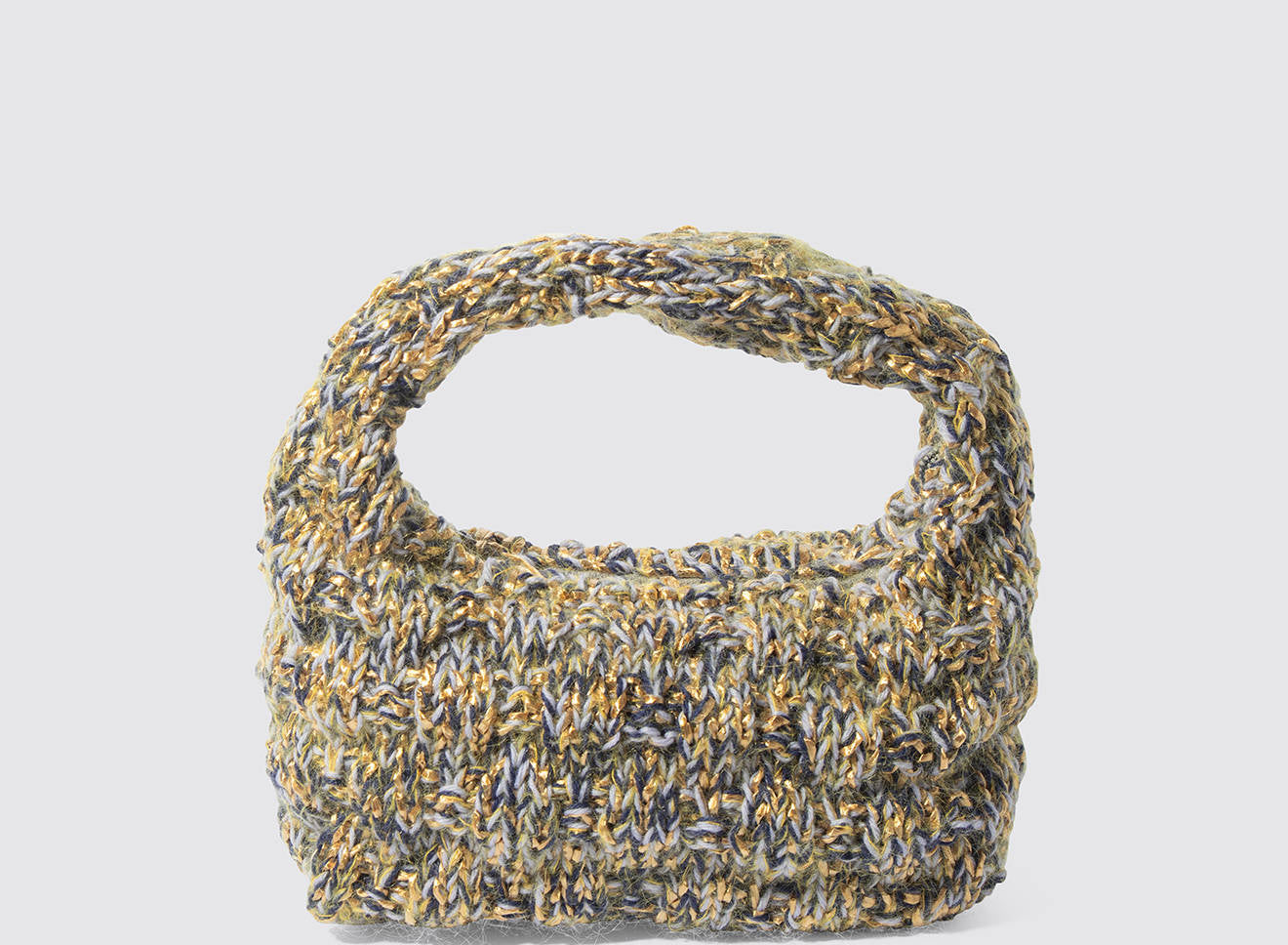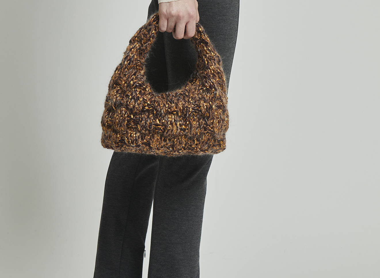 Borsa a spalla realizzata in morbida lana lavorata a maglia, dal design avvolgente e artigianale. La texture corposa e tridimensionale aggiunge carattere e calore, rendendola l’accessorio ideale per completare con stile i look di stagione. Comoda e versatile, unisce il fascino della lavorazione manuale all’eleganza contemporanea. Interamente disegnata e prodotta in Italia.