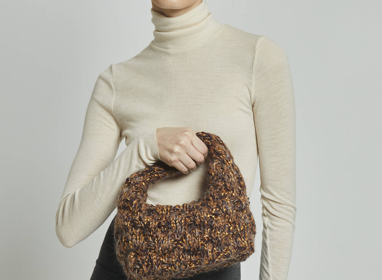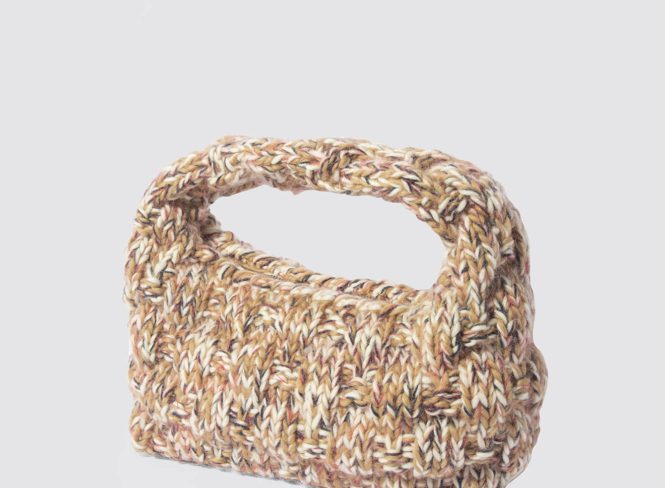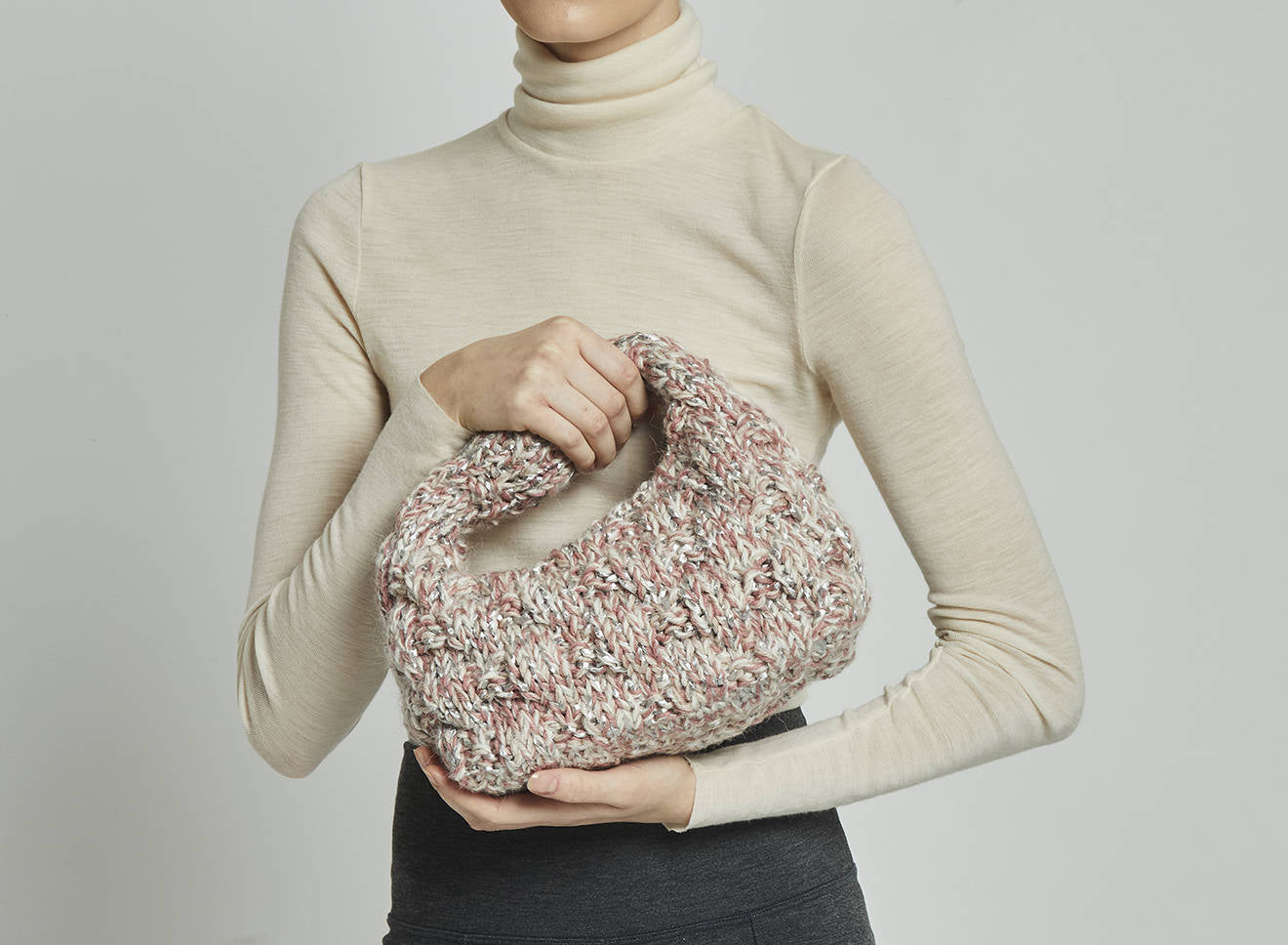 Borsa a spalla realizzata in morbida lana lavorata a maglia, dal design avvolgente e artigianale. La texture corposa e tridimensionale aggiunge carattere e calore, rendendola l’accessorio ideale per completare con stile i look di stagione. Comoda e versatile, unisce il fascino della lavorazione manuale all’eleganza contemporanea. Interamente disegnata e prodotta in Italia.