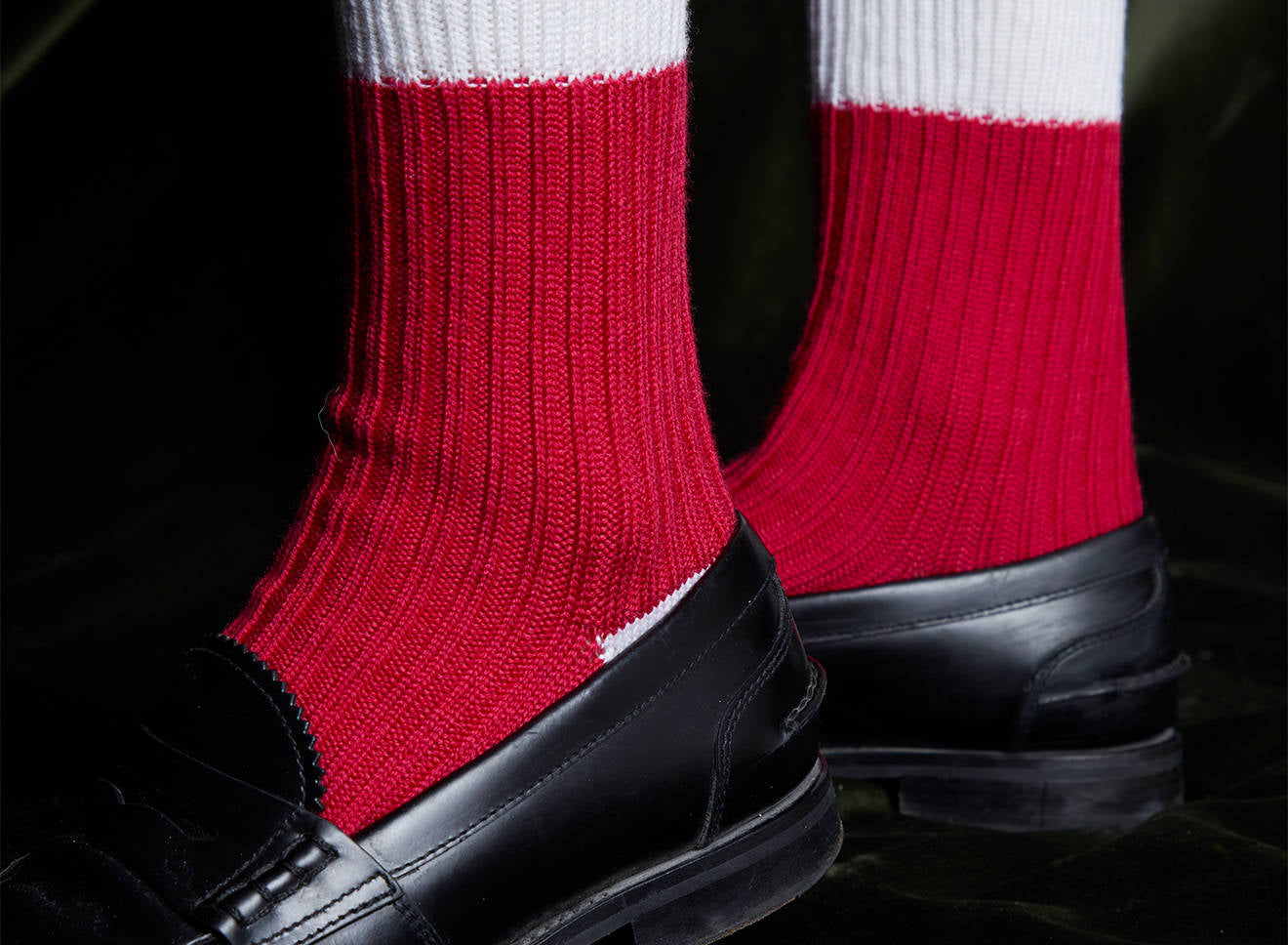 Calzini da donna in lana, a costine, impreziosite da elastico a contrasto nella parte superiore.