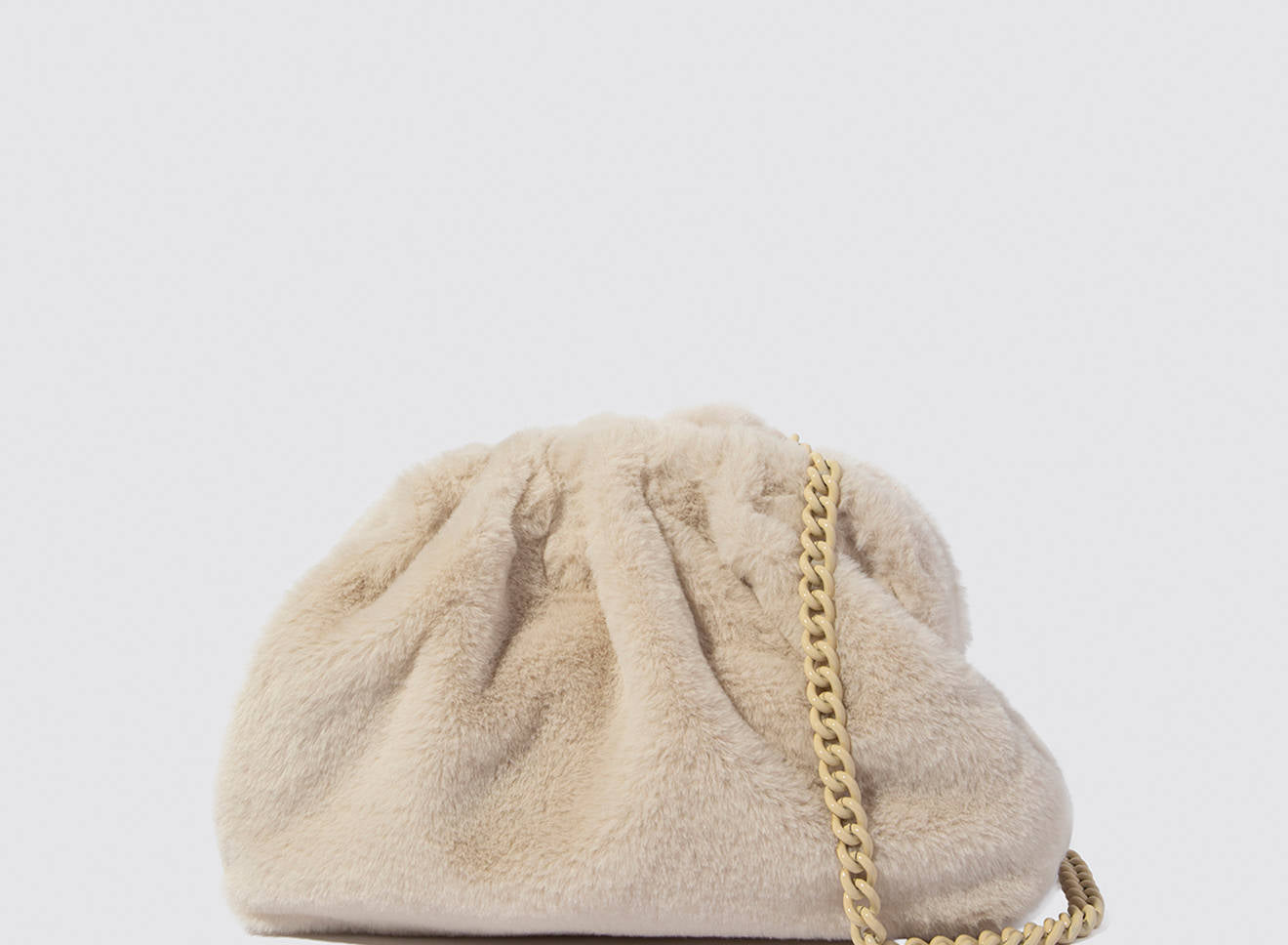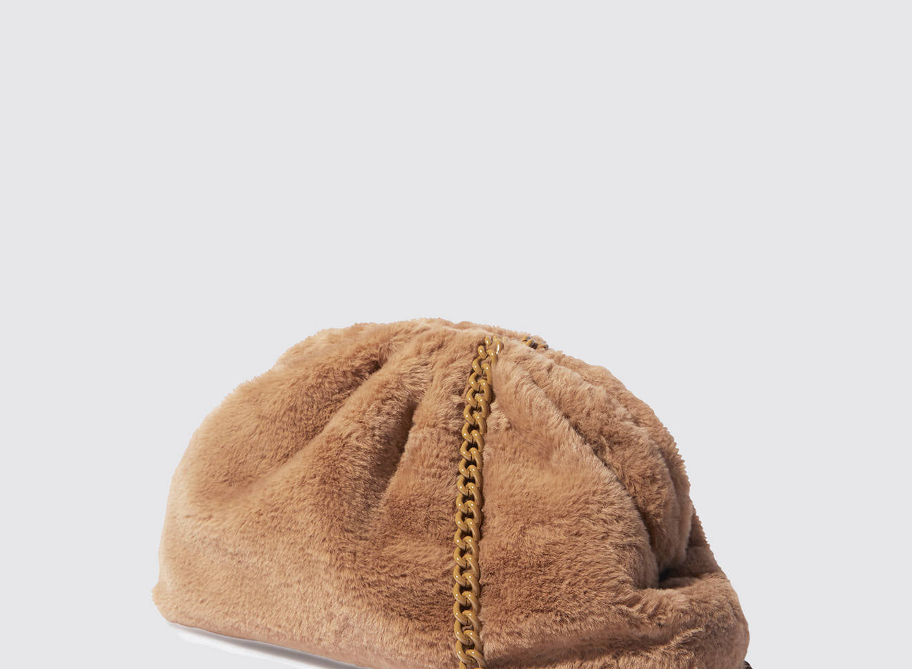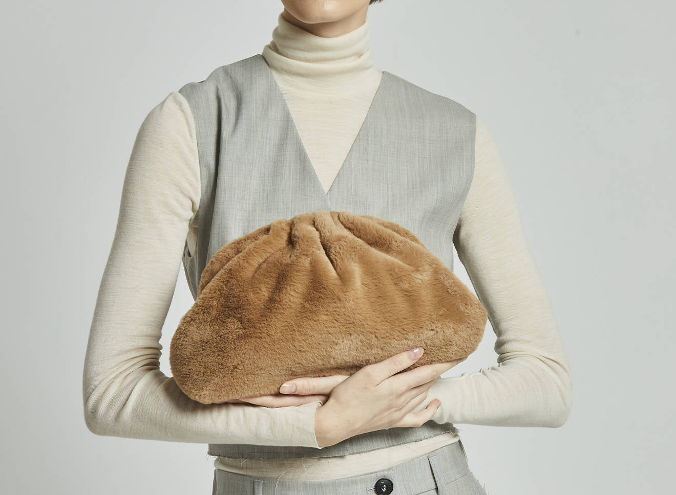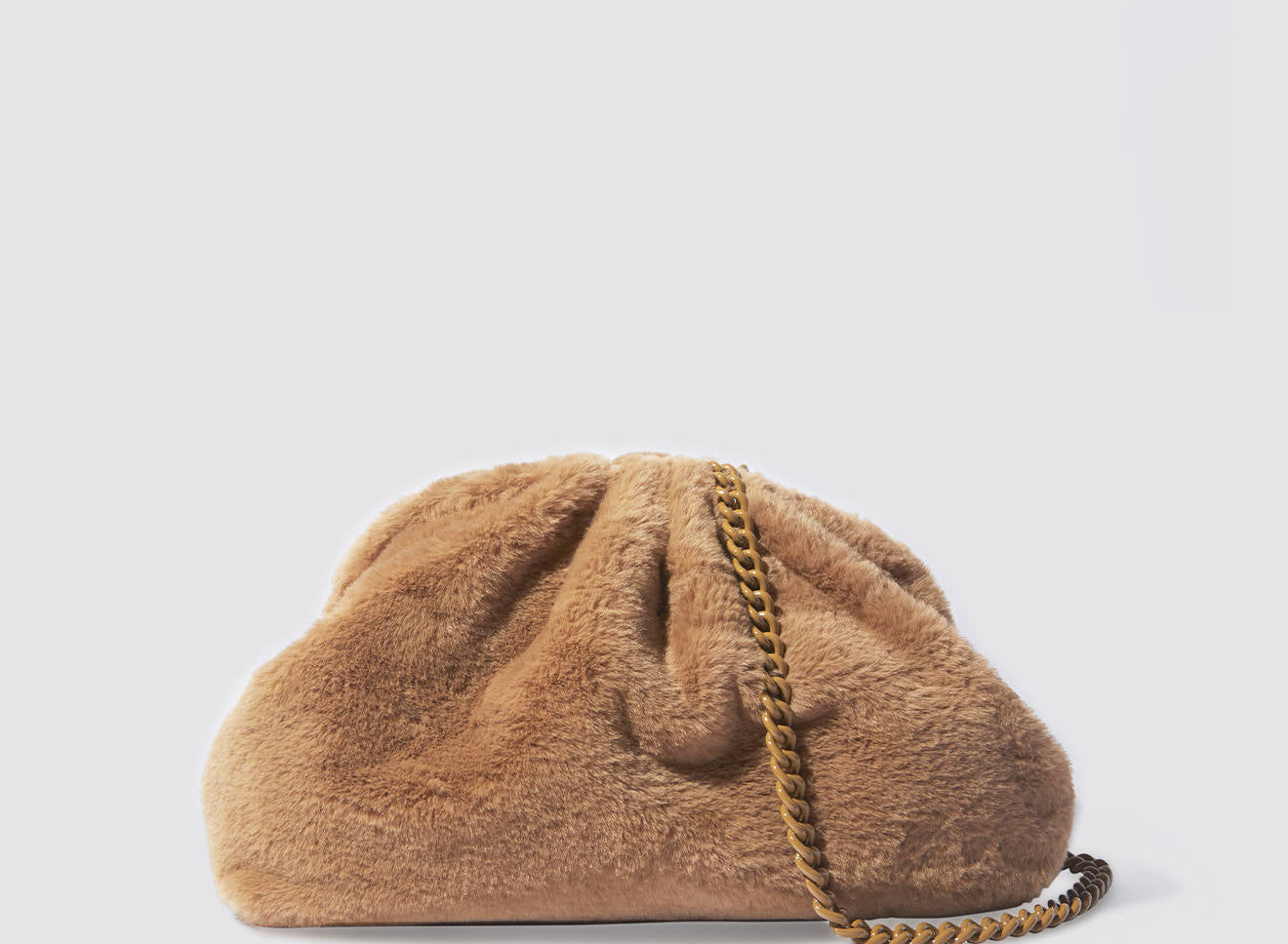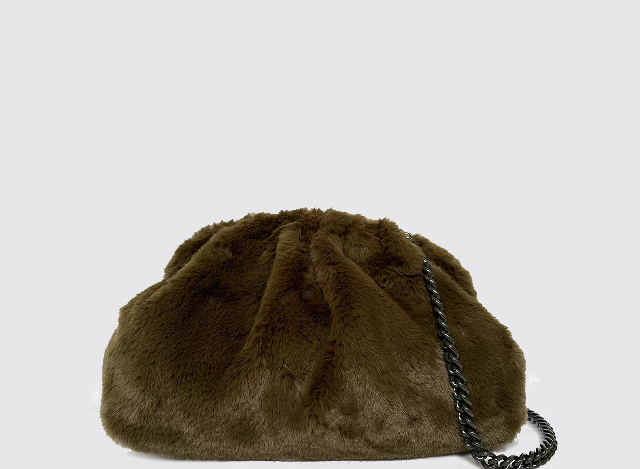 Clutch da donna di medie dimensioni in pelliccia sintetica.