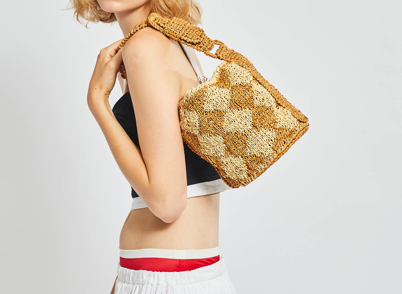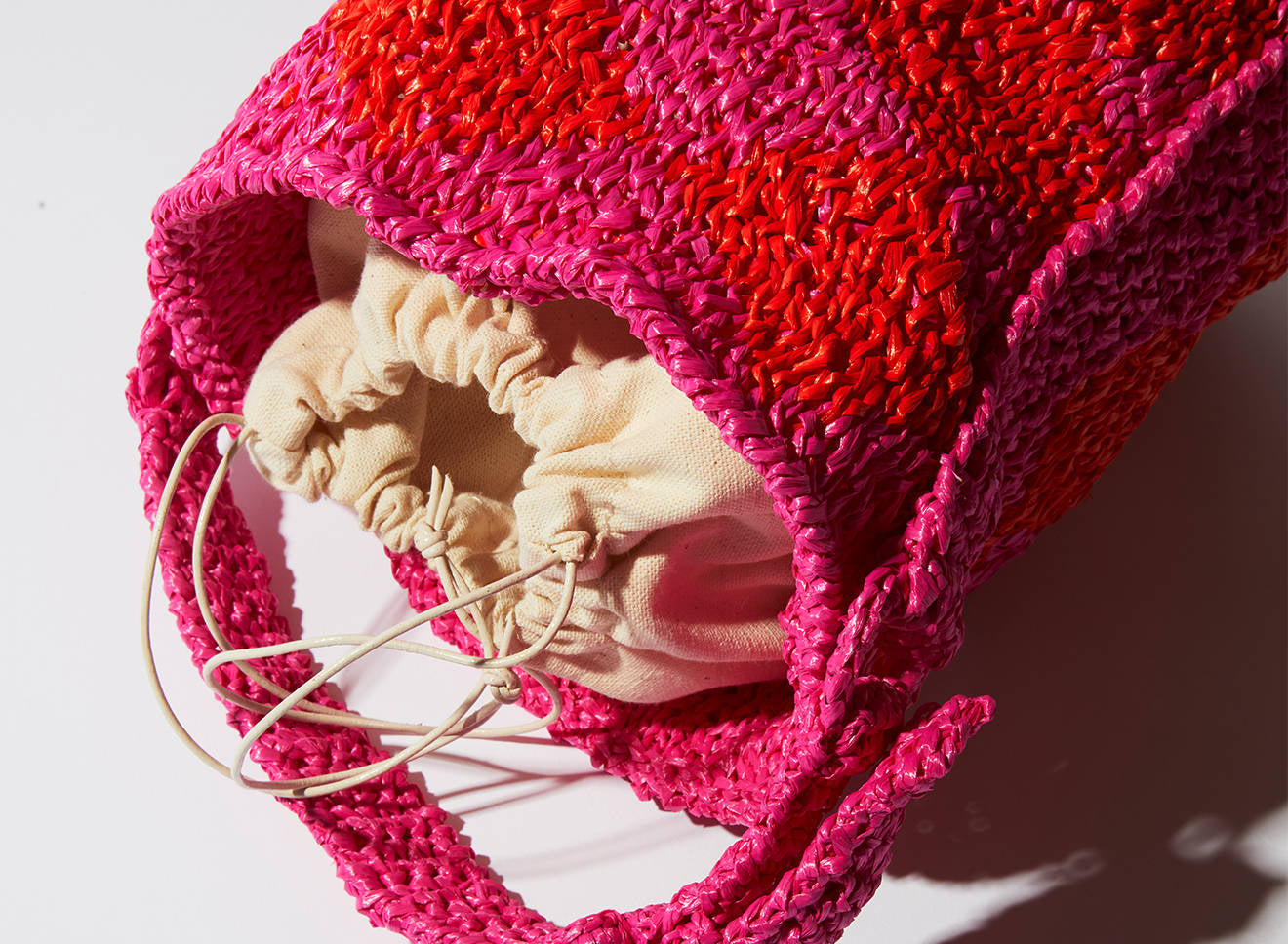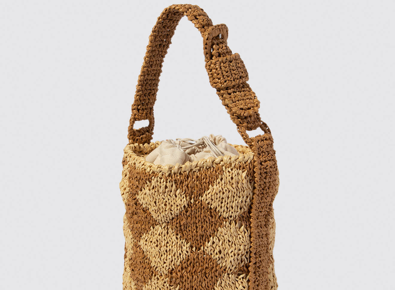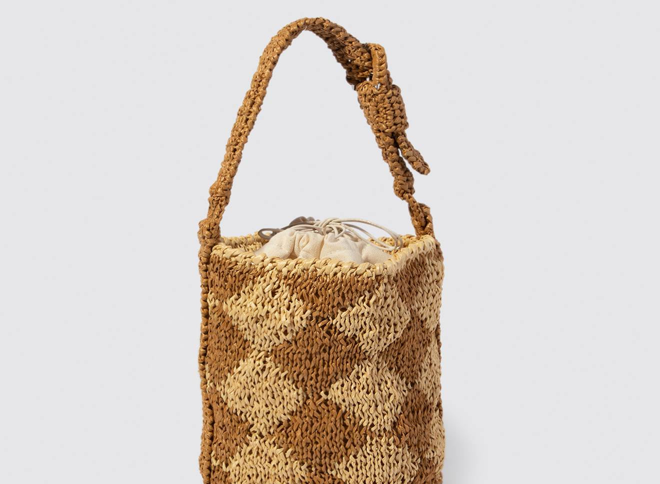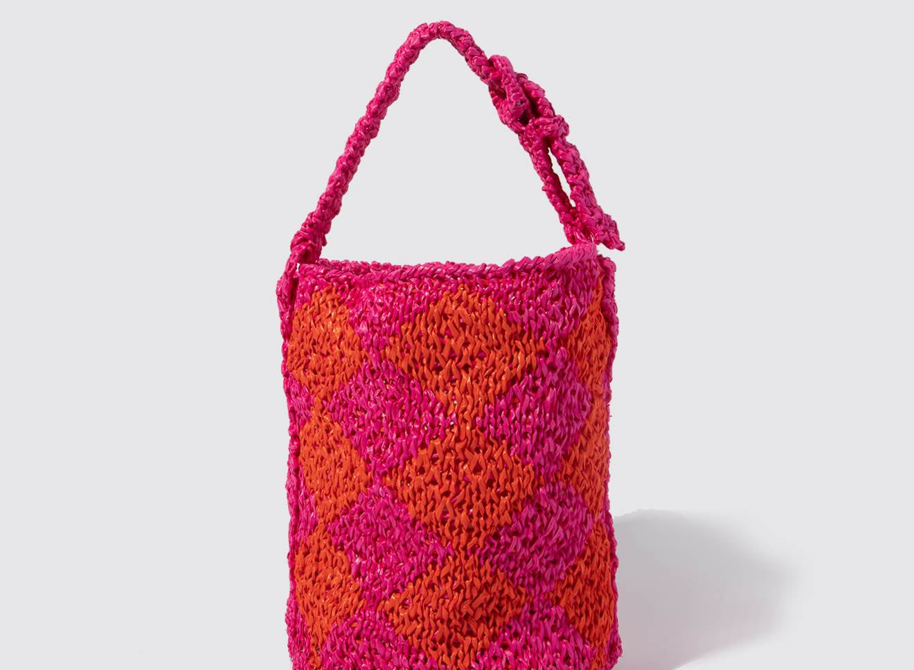 Borsa da donna di medie dimensioni, in tessuto di rafia, realizzato a mano con tecnica crochet. Questa borsa unisce il fascino rustico della rafia alla raffinatezza del design a crochet, creando un accessorio unico che si distingue per il suo stile boho-chic e la sua praticità.La sua forma minimale è arricchita da un motivo a rombi in tonalità naturali ma anche più accese e vivaci. Perfetta per il mare, una passeggiata in città o una serata estiva, questa borsa è l'accessorio ideale per chi cerca praticità, stile e un design unico. Interamente disegnata e prodotta in Italia.