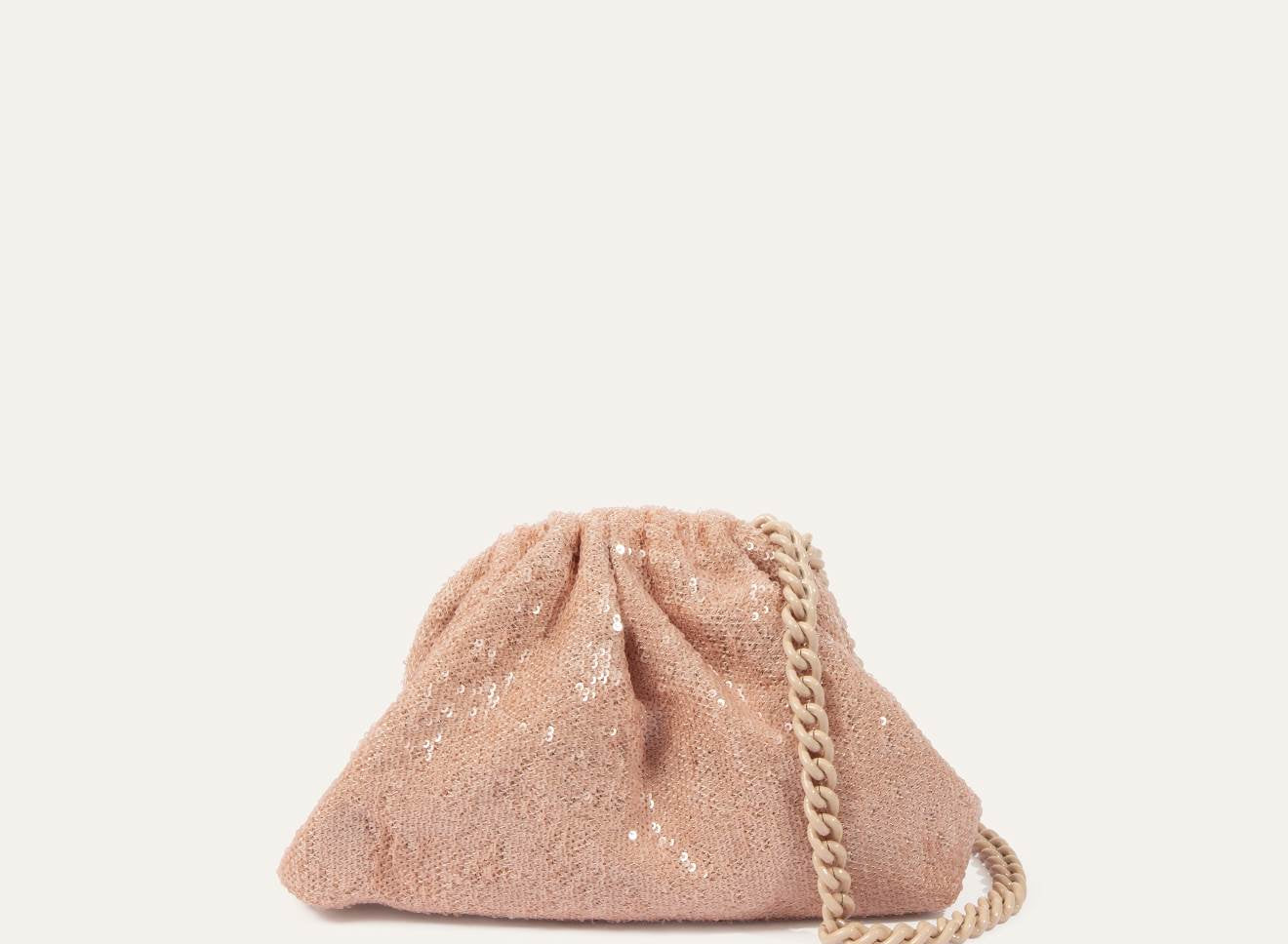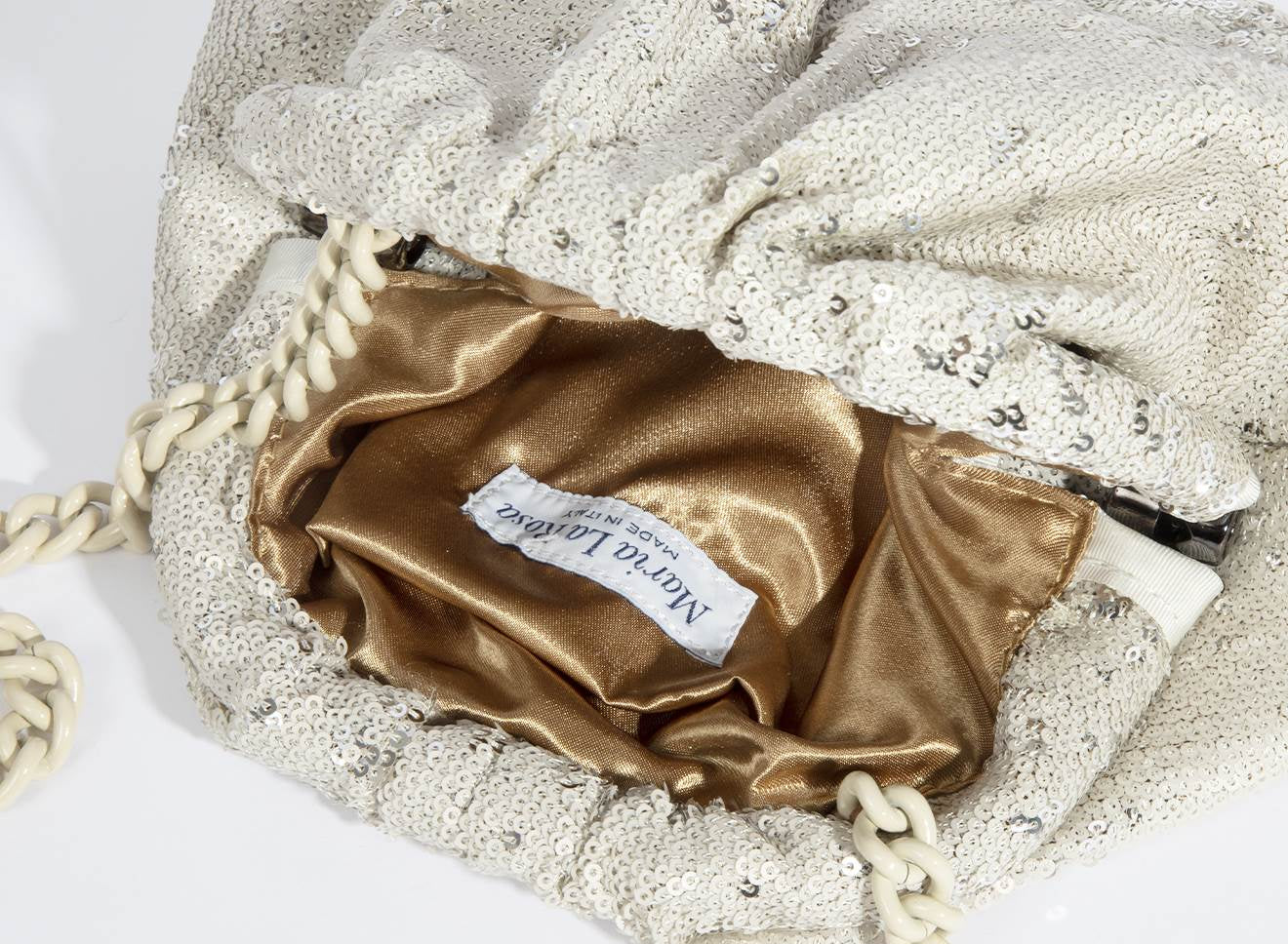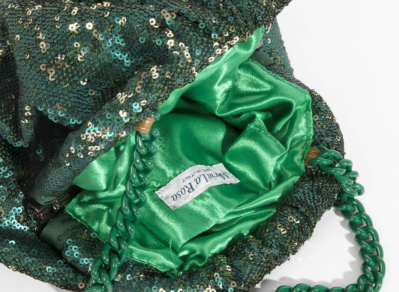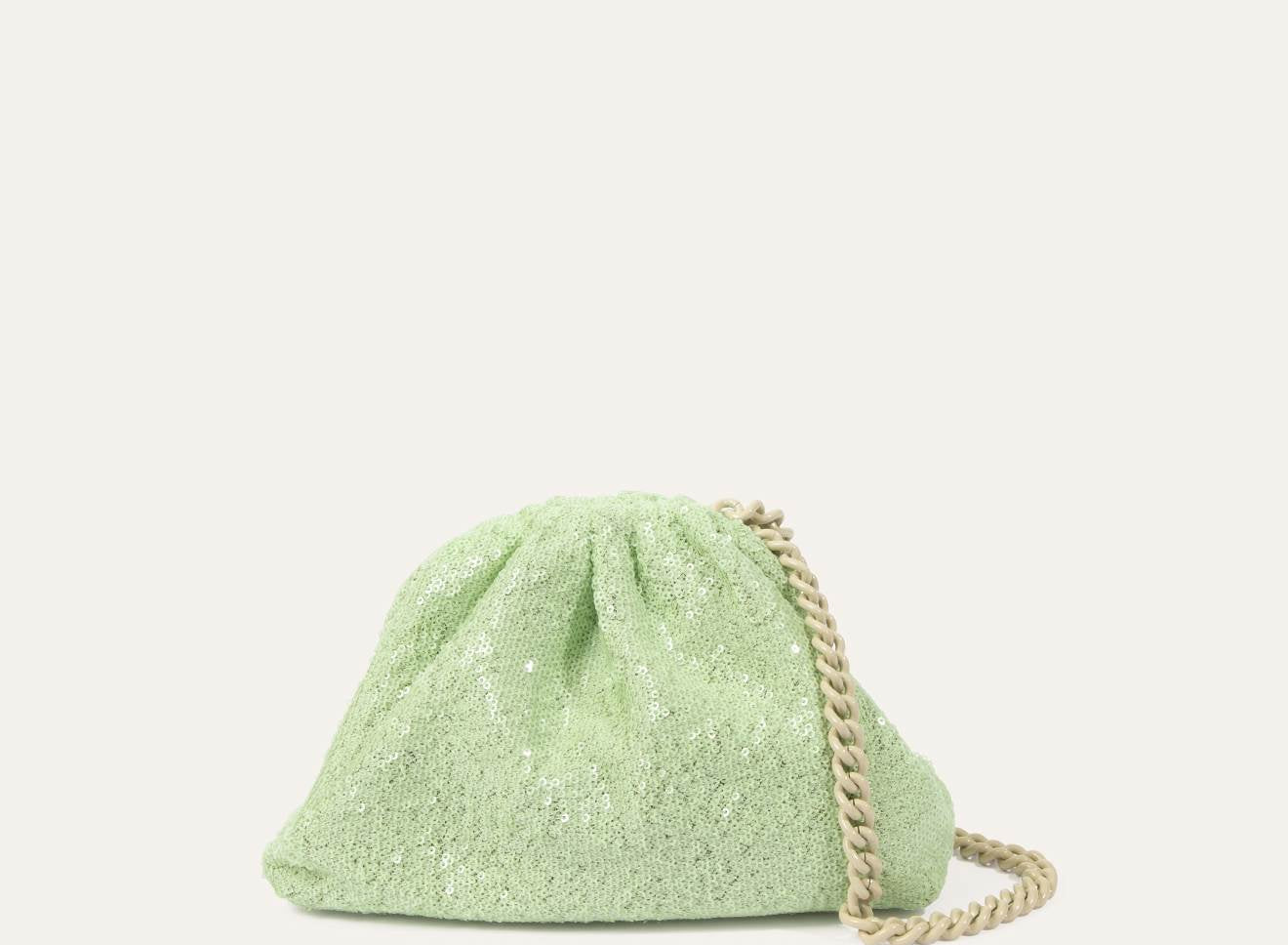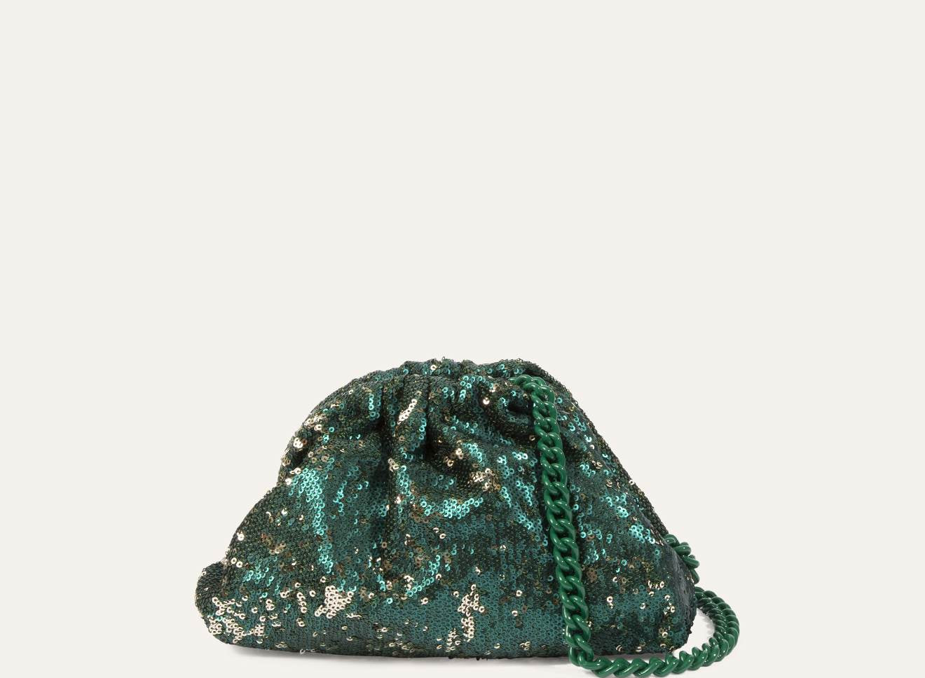 Clutch da donna di piccole dimensioni realizzata in tessuto paillettes. Questo modello costituisce l’icon bag Maria La Rosa, perfetta per tutte le stagioni, emblema di una nuova eleganza metropolitana, che assicura capienza e funzionalità. Il tessuto in paillettes le conferisce una lucente eleganza, disponibile in molteplici varianti colore. È dotata di catena abbinata per indossarla anche a tracolla.