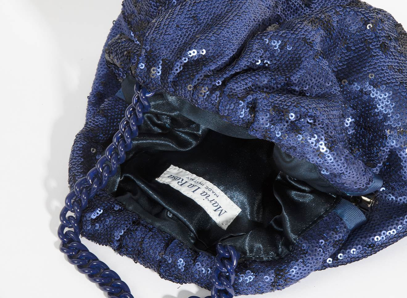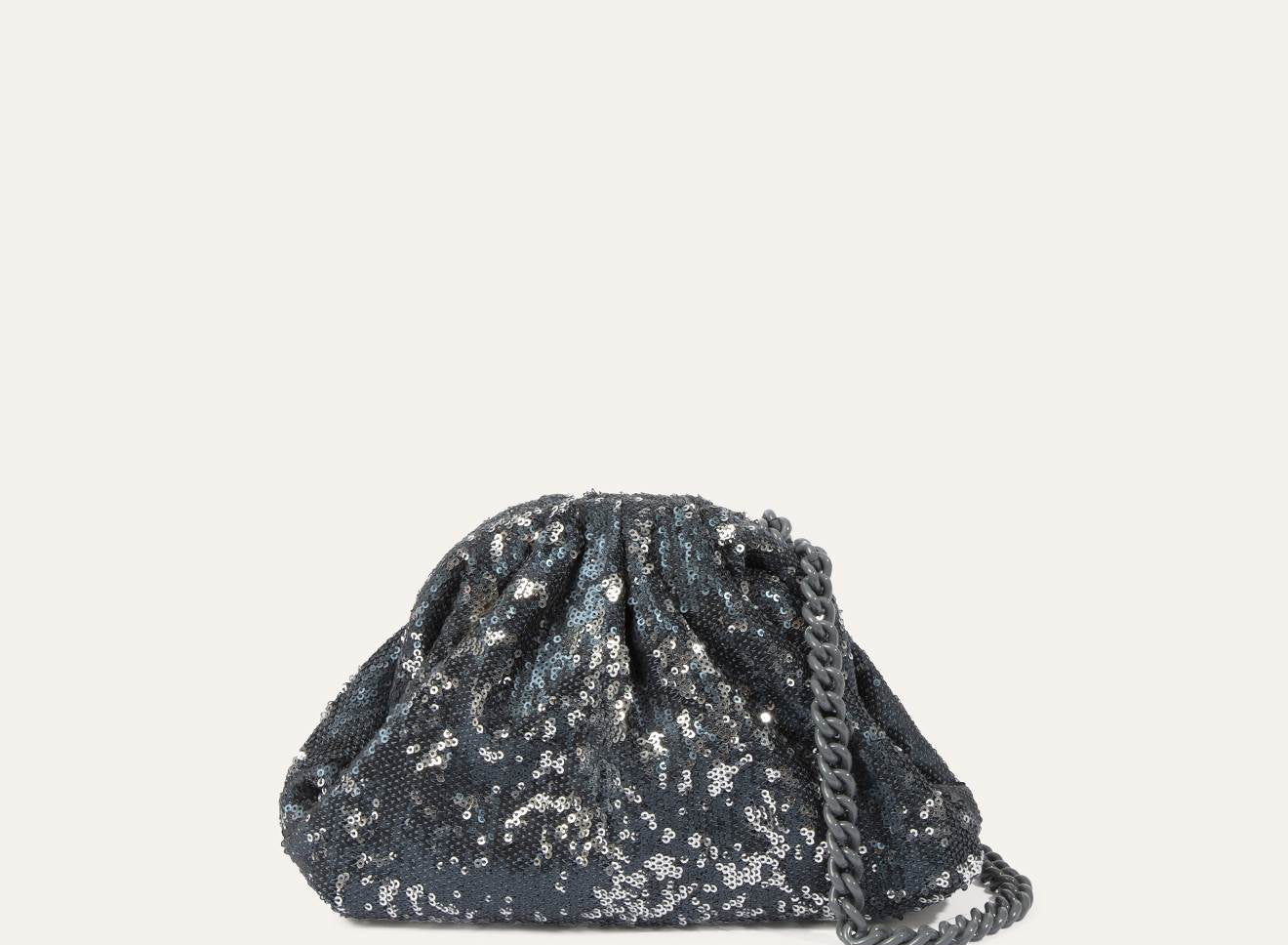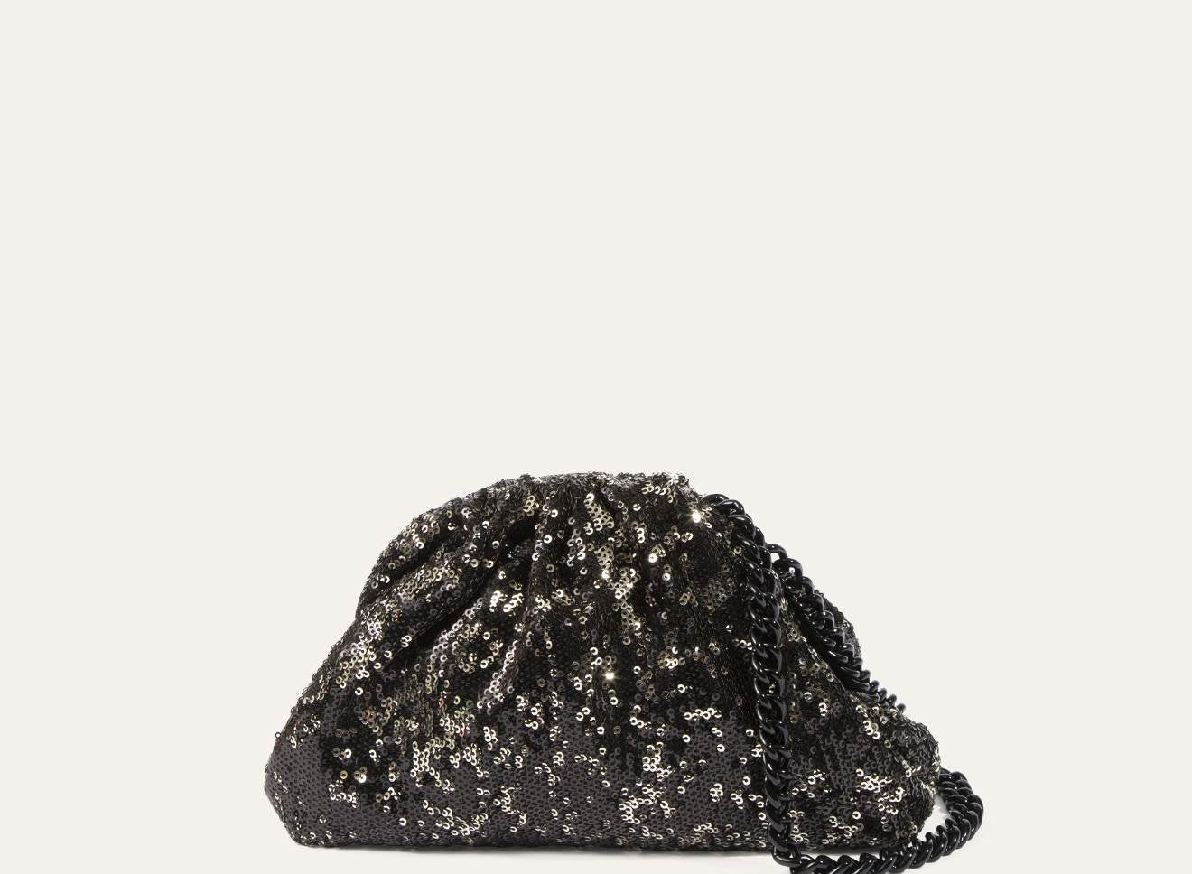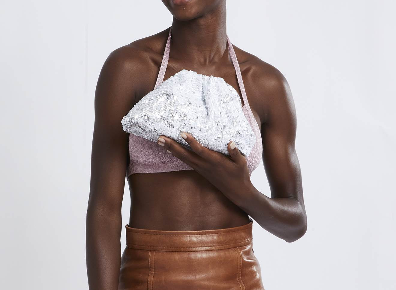 Clutch da donna di piccole dimensioni realizzata in tessuto paillettes. Questo modello costituisce l’icon bag Maria La Rosa, perfetta per tutte le stagioni, emblema di una nuova eleganza metropolitana, che assicura capienza e funzionalità. Il tessuto in paillettes le conferisce una lucente eleganza, disponibile in molteplici varianti colore. È dotata di catena abbinata per indossarla anche a tracolla.