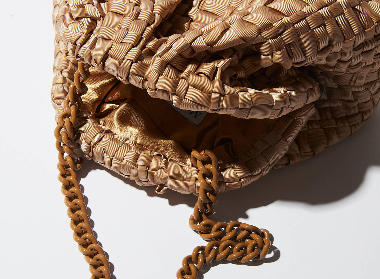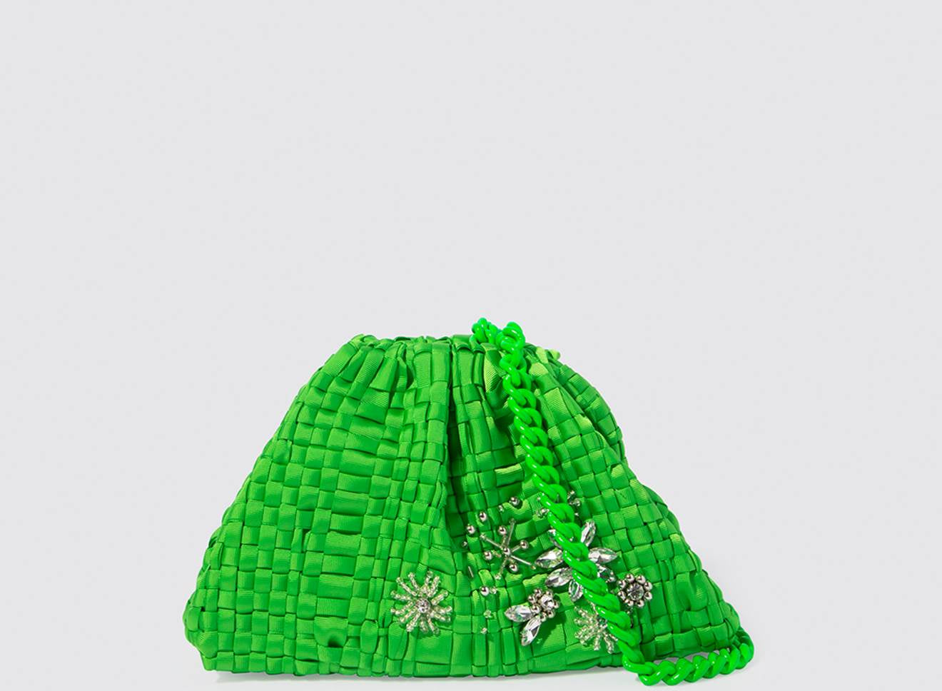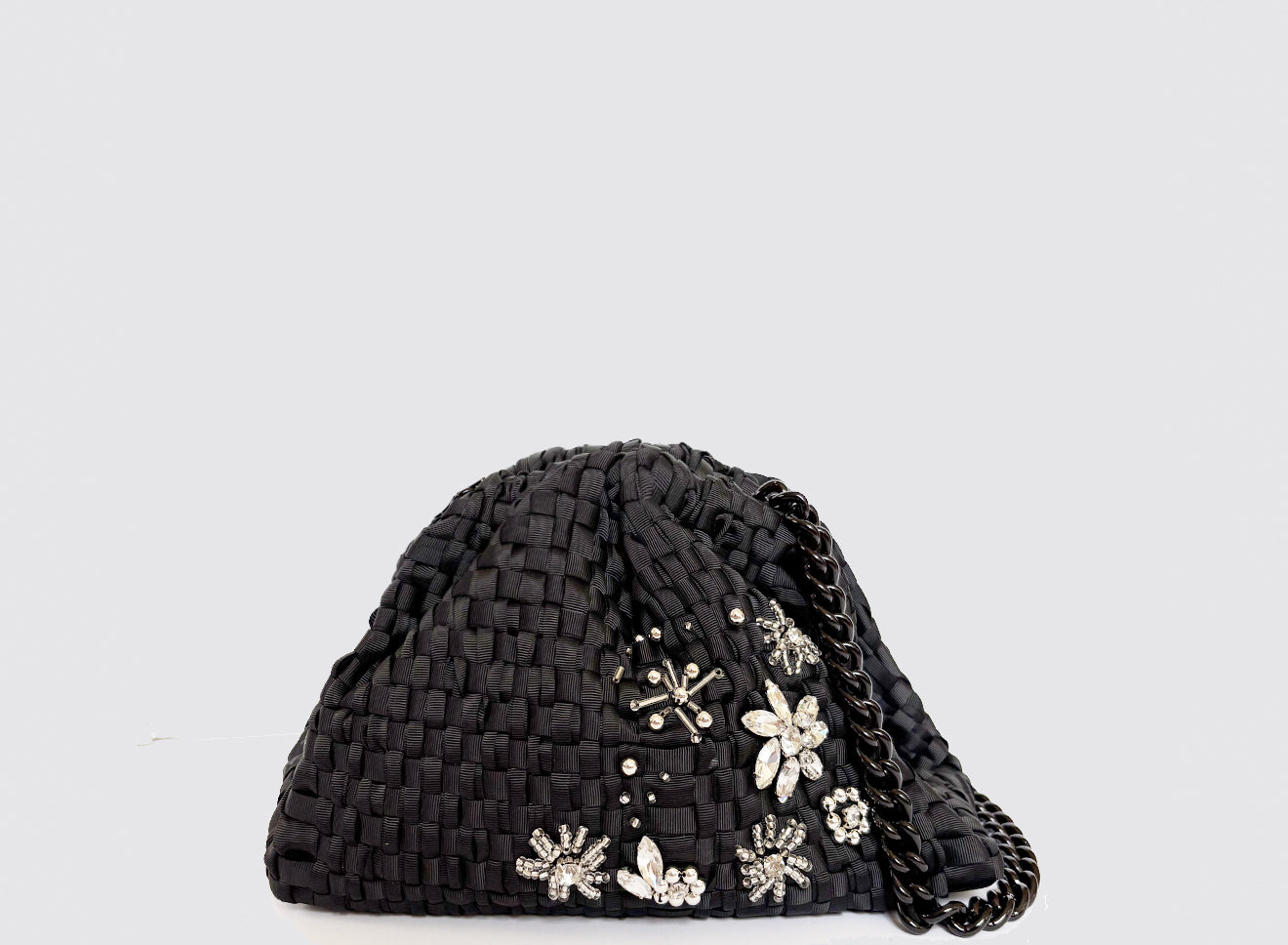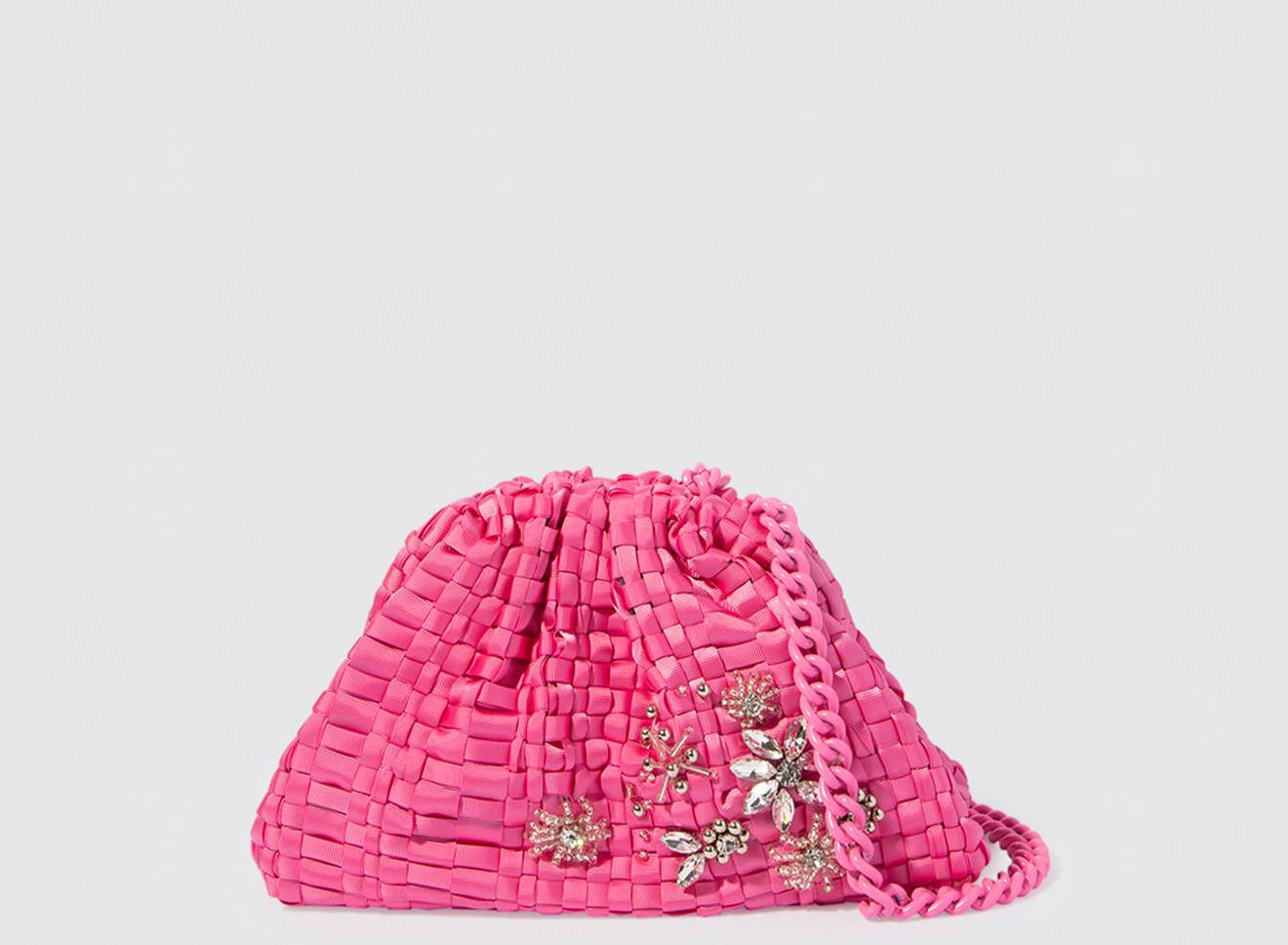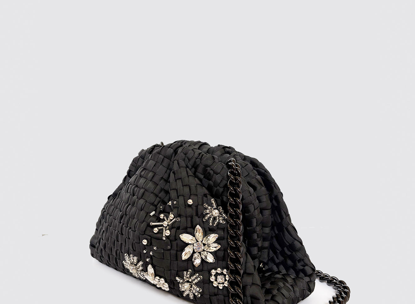 Clutch da donna di piccole dimensioni in tessuto di nastro intrecciato, realizzato a mano su antichi telai. Questa inedita versione ridotta dell’icon bag Maria La Rosa, è capiente quanto basta per portare con sé l'essenziale. Perfetta per tutte le stagioni, costituisce l’emblema di una nuova eleganza metropolitana.Questo modello prende il nome dalle preziose applicazioni ricamate a mano.È dotata di catena ton sur ton per indossarla anche a tracolla e tante sono le varietà cromatiche tra cui poter scegliere.Interamente disegnata e prodotta in Italia.