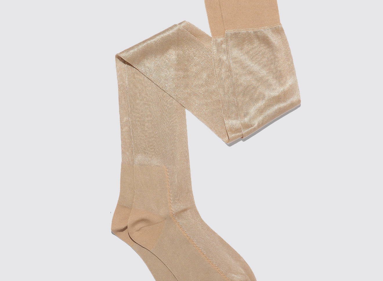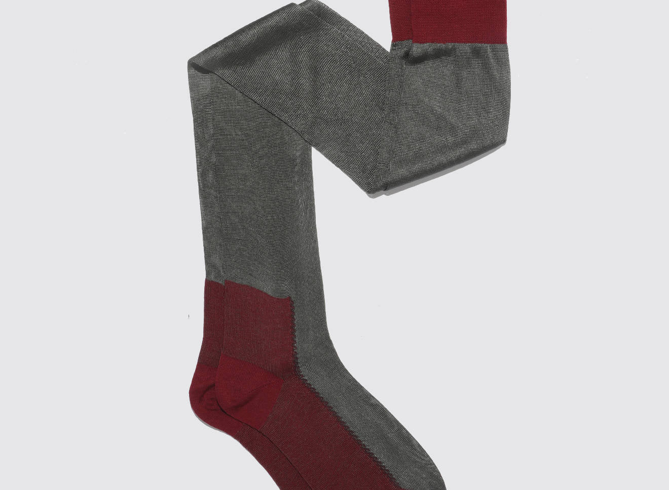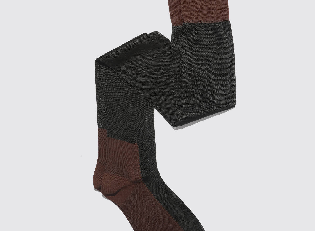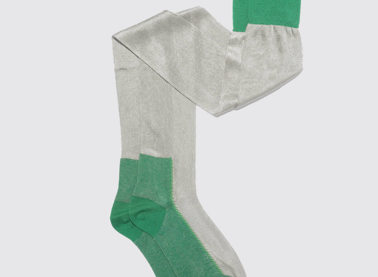 Calze over-the-knee velate in filato leggero, caratterizzate da delicati contrasti di lavorazione che slanciano la gamba con eleganza naturale. La texture morbida avvolge senza costringere, garantendo una vestibilità confortevole e raffinata. Perfette con gonne, abiti o stivali, aggiungono un accento sofisticato a qualsiasi look. Realizzate in Italia con la consueta cura artigianale del brand.