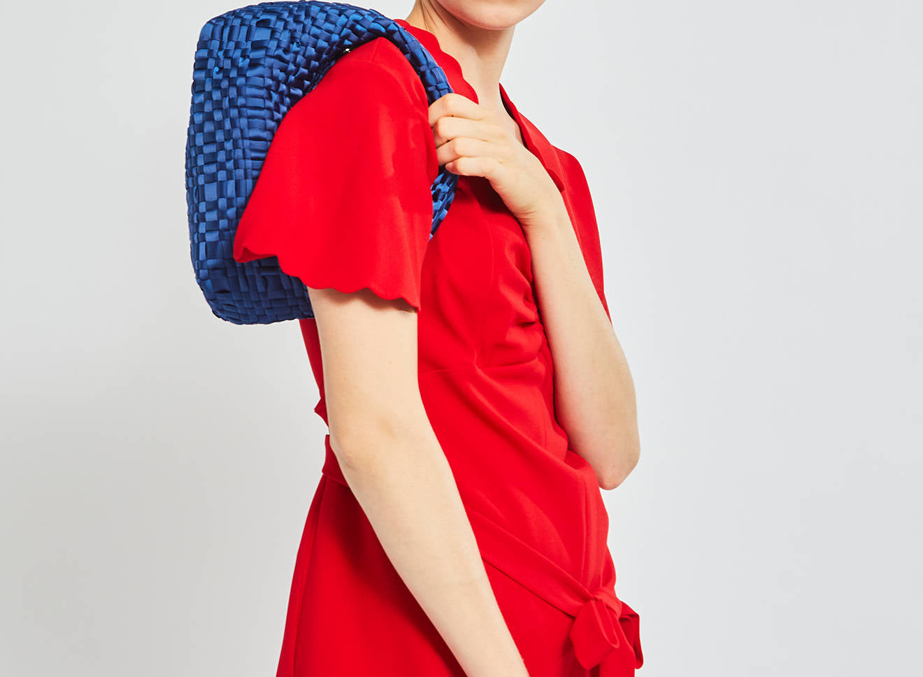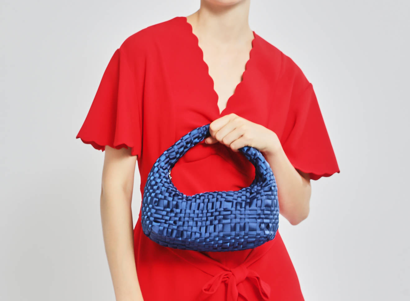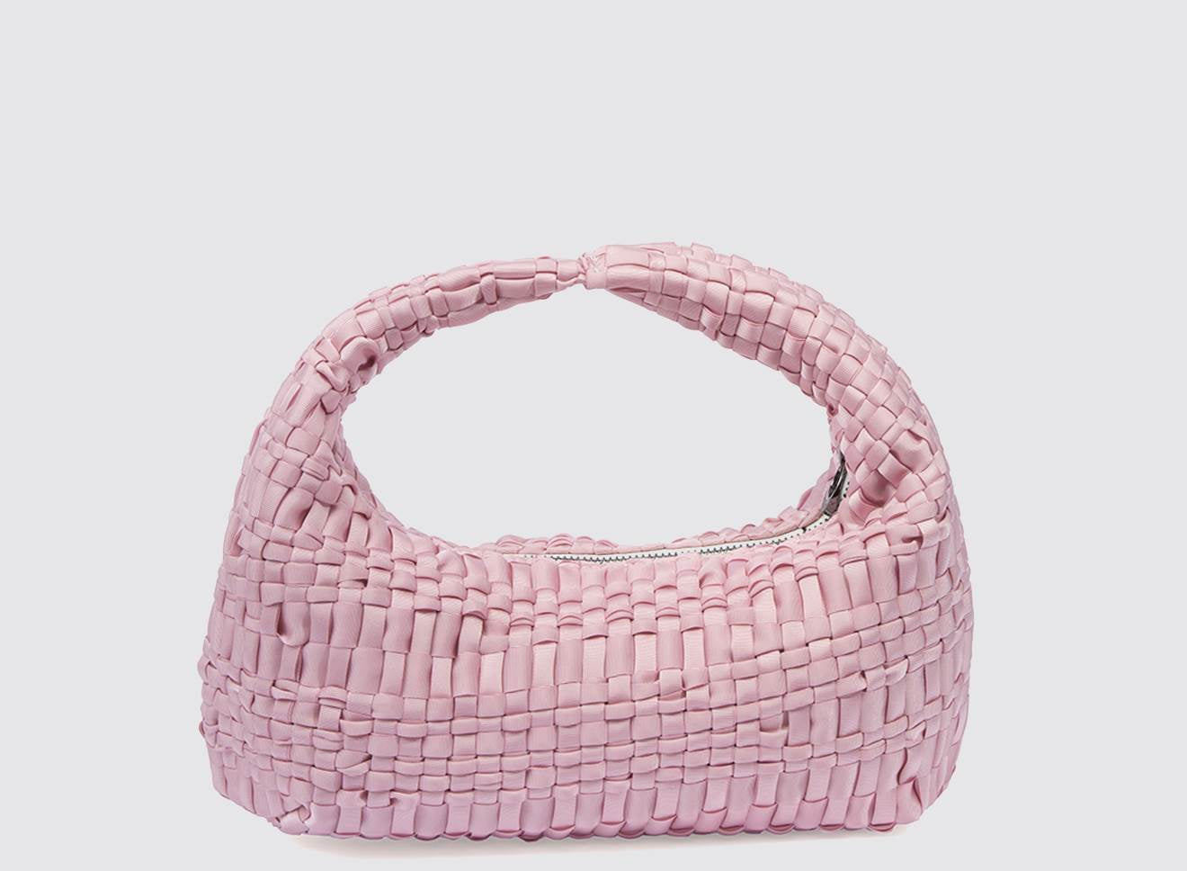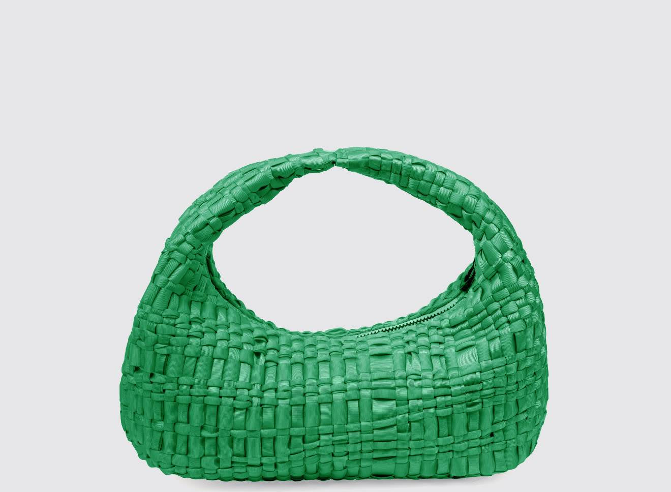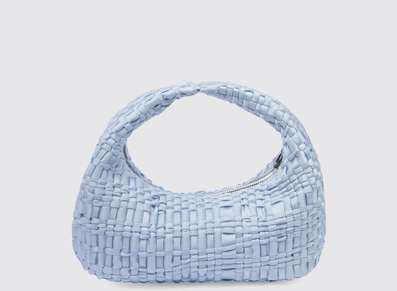 Borsa di piccole dimensioni in tessuto di nastro intrecciato, realizzato a mano su antichi telai. Dal design semplice, disponibile in diversi colori tinta unita, è perfetta per la stagione estiva. Dotata di chiusura a zip, manico a fusciacca con nodo, costituisce un modello compatto, dallo stile fresco e vivace. Interamente disegnata e prodotta in Italia.