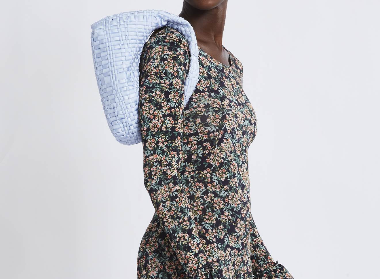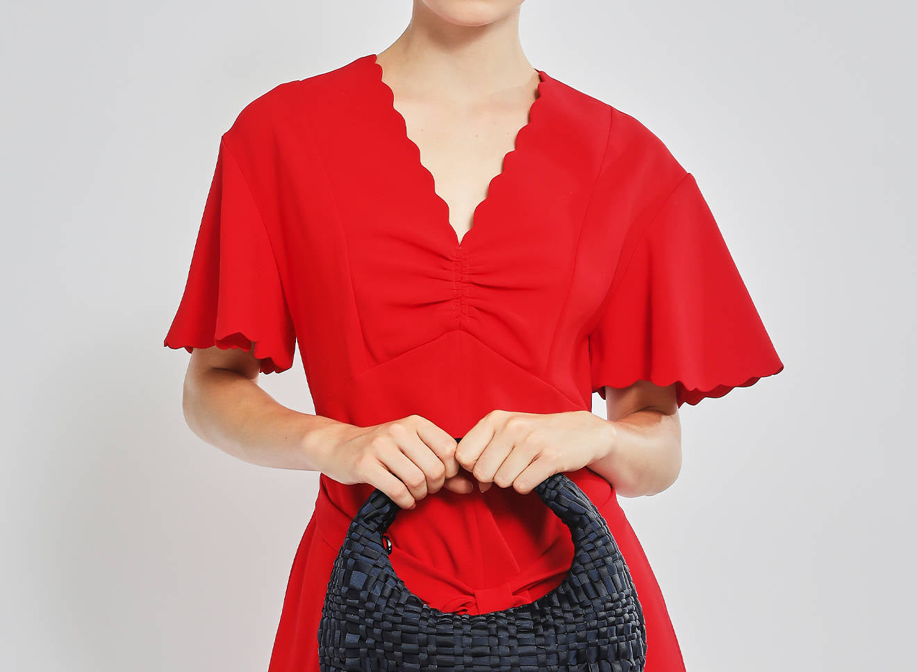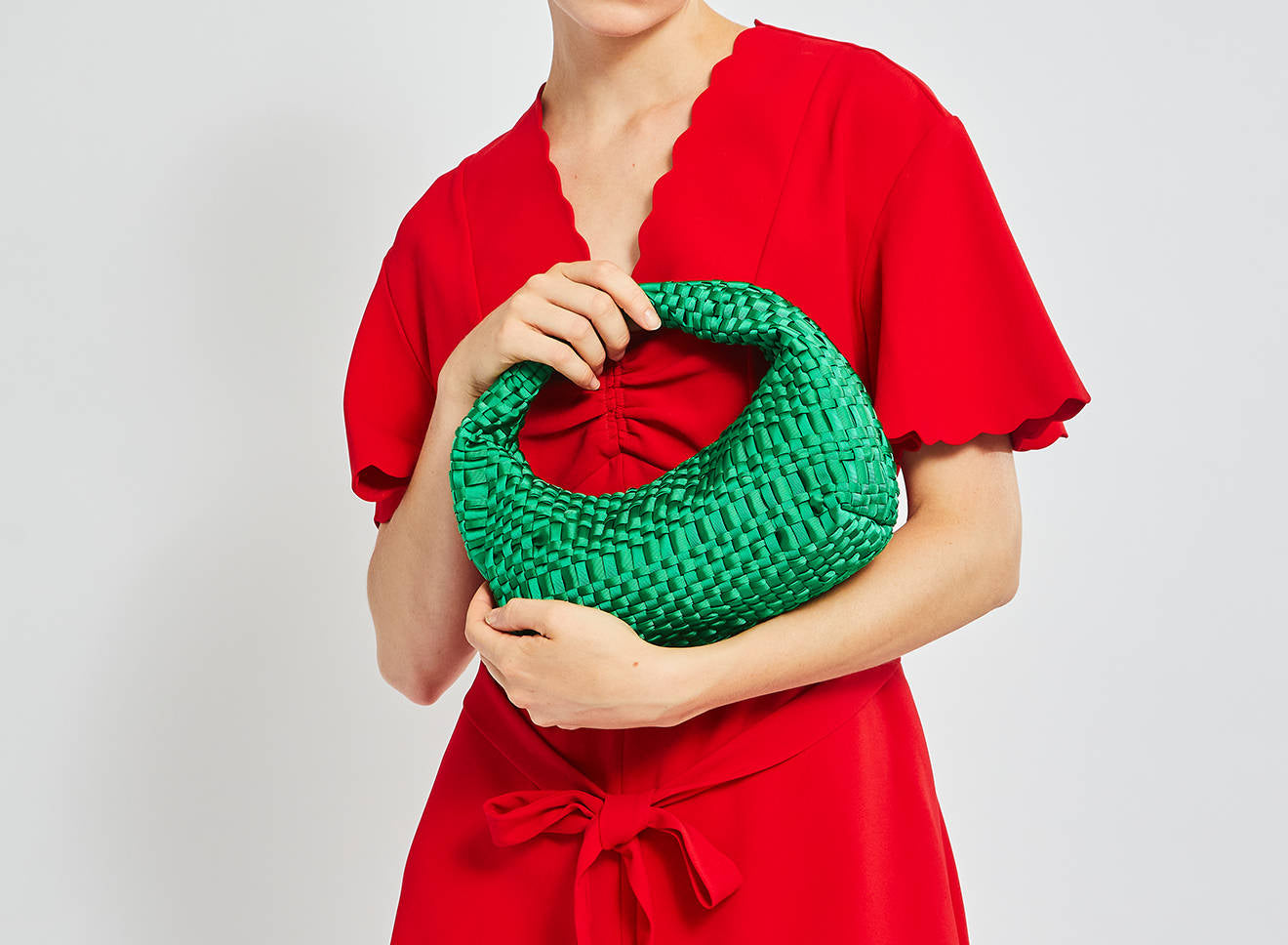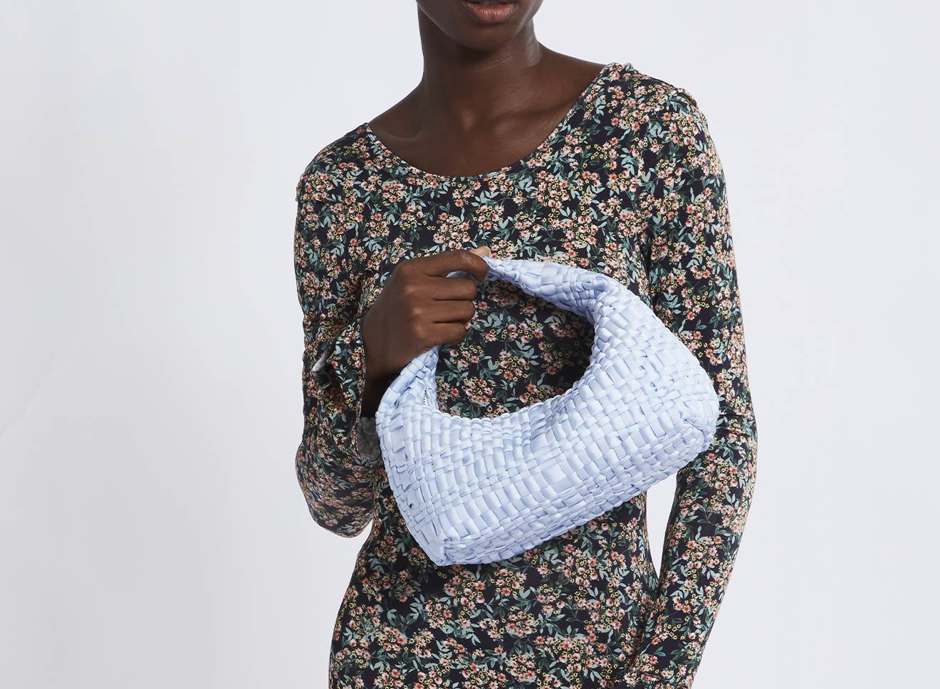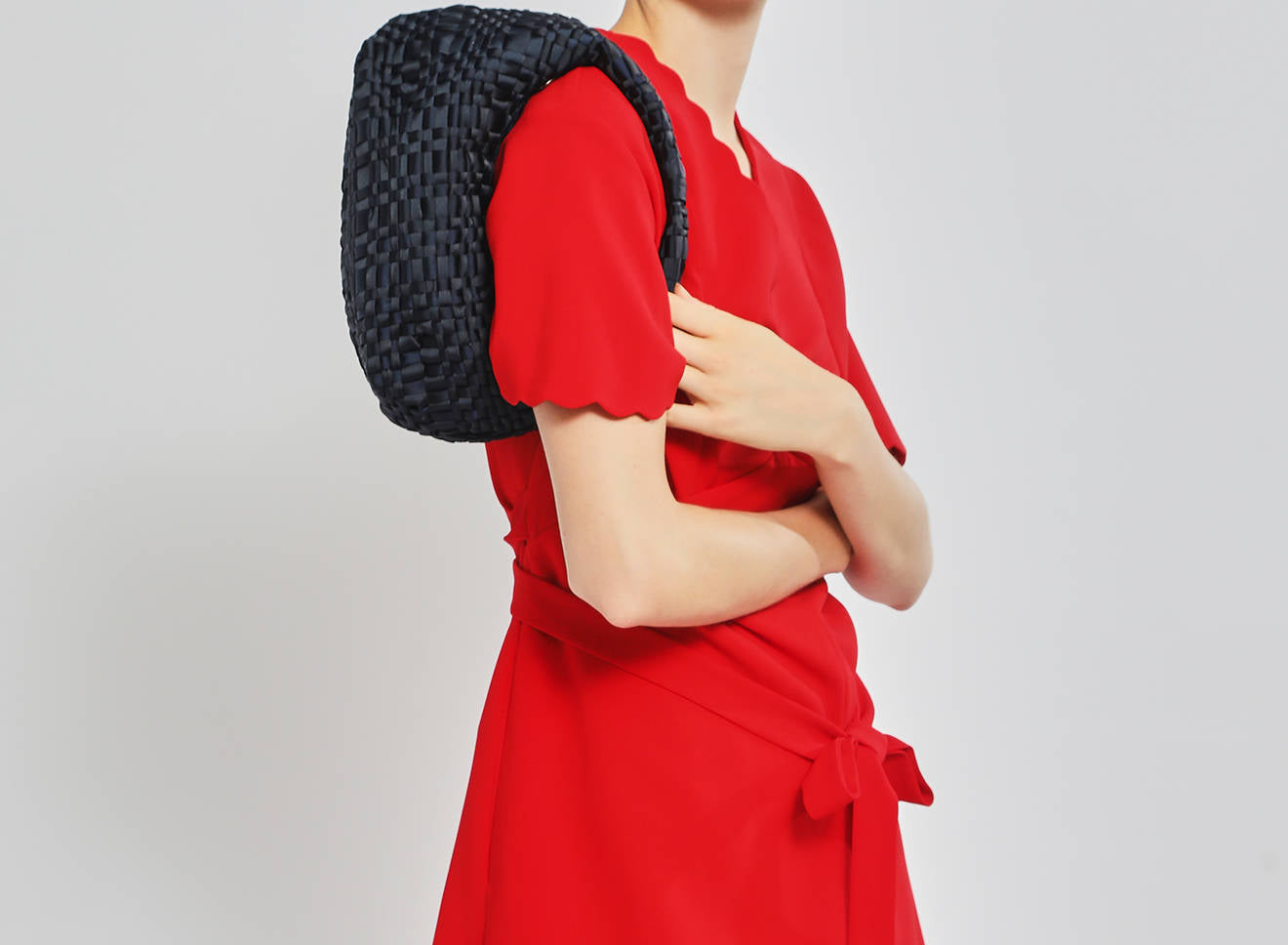 Borsa di piccole dimensioni in tessuto di nastro intrecciato, realizzato a mano su antichi telai. Dal design semplice, disponibile in diversi colori tinta unita, è perfetta per la stagione estiva. Dotata di chiusura a zip, manico a fusciacca con nodo, costituisce un modello compatto, dallo stile fresco e vivace. Interamente disegnata e prodotta in Italia.