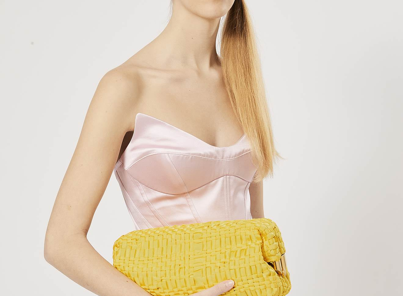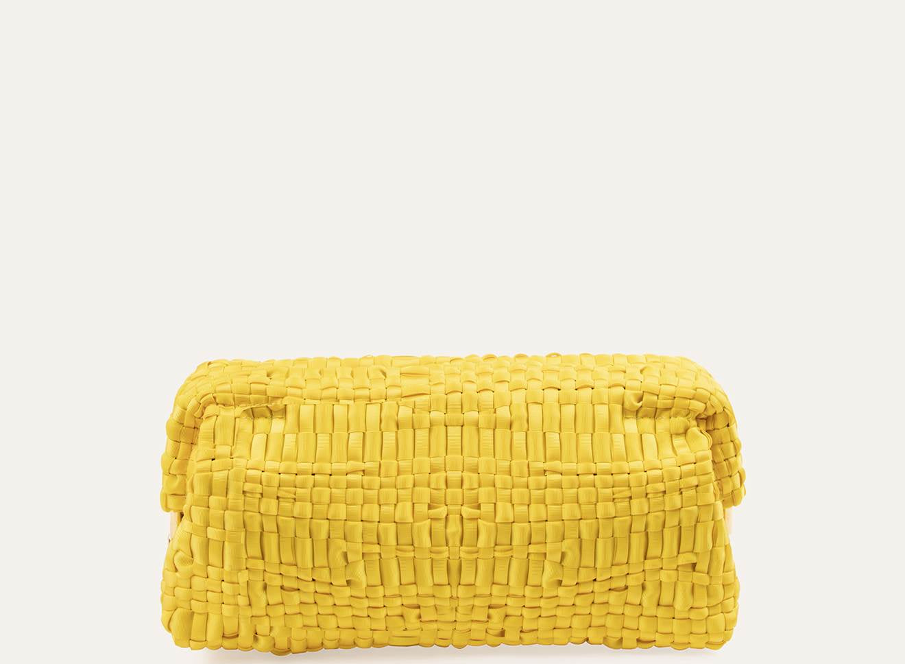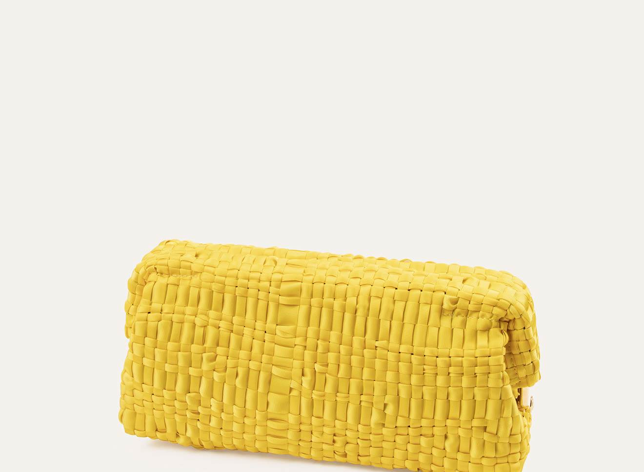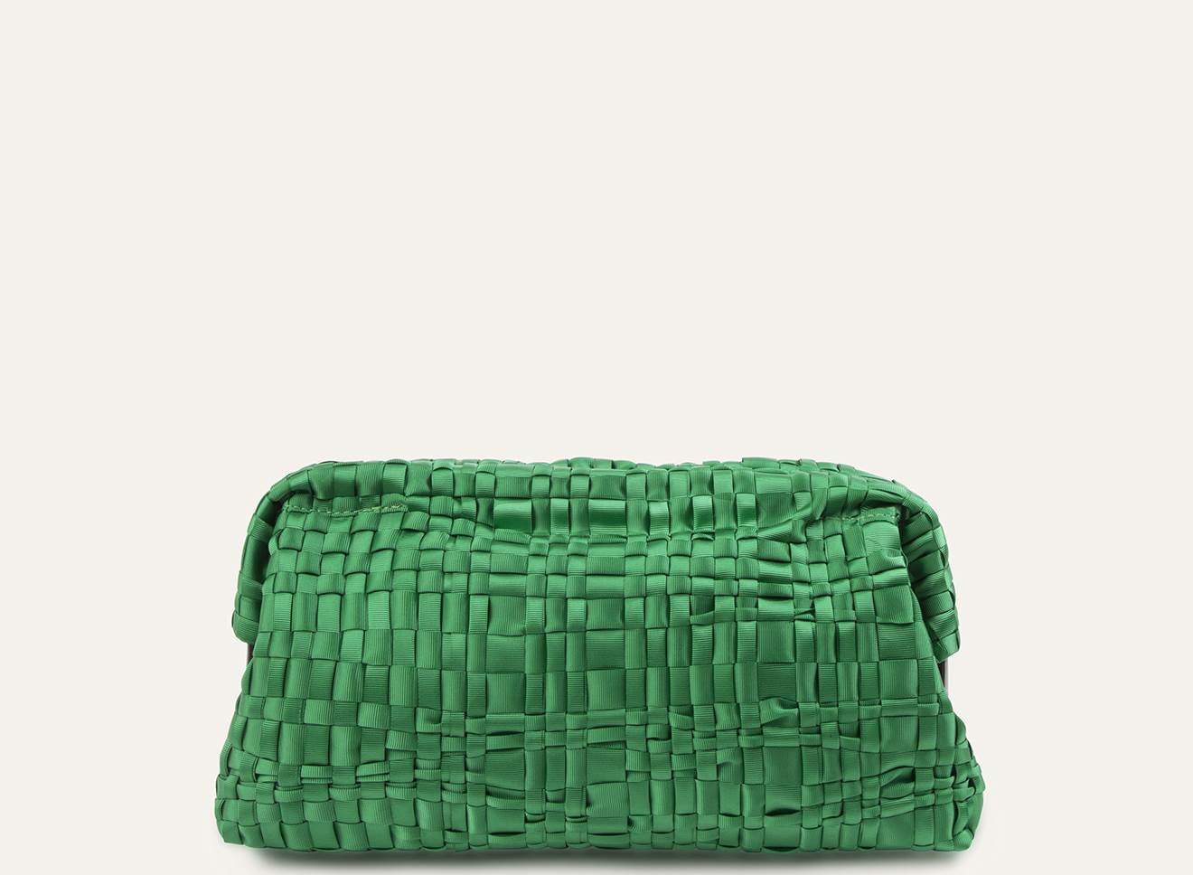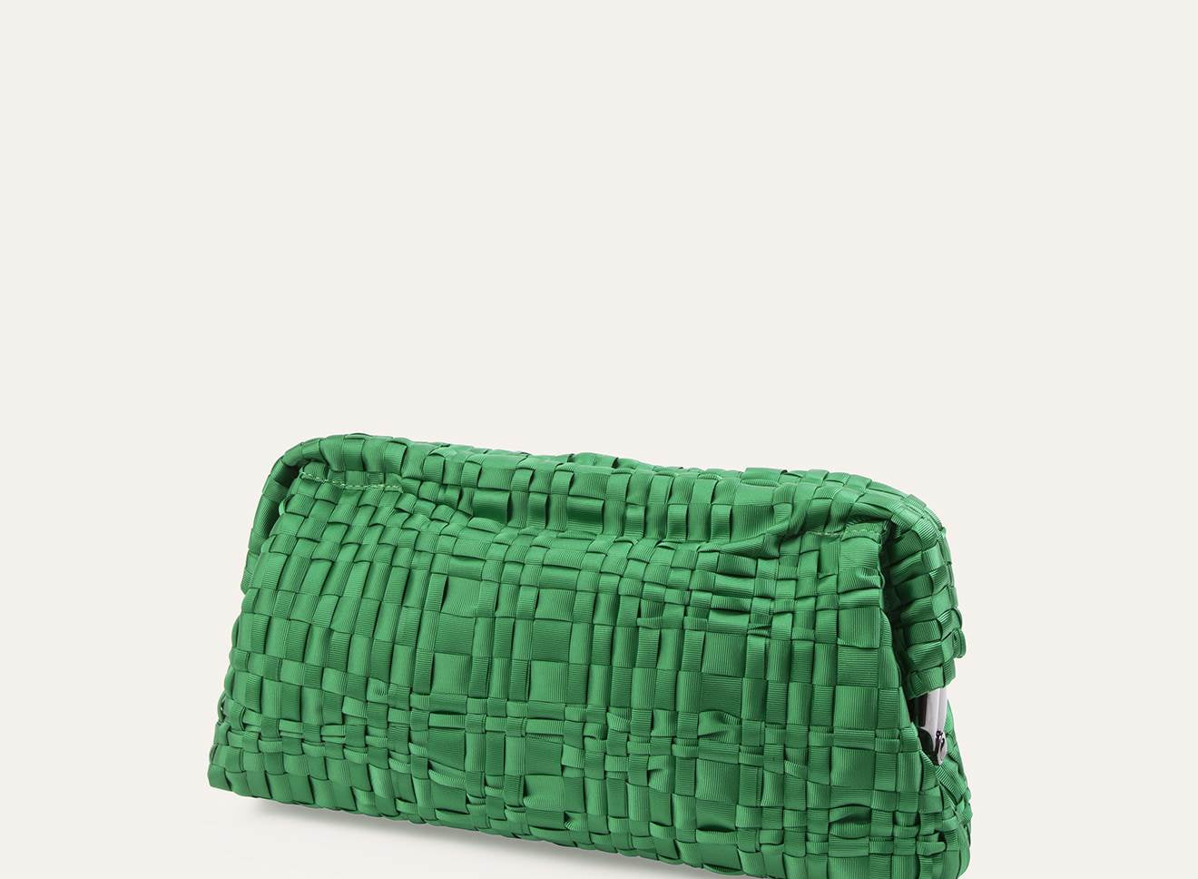 Baguette da donna di medie dimensioni in tessuto di nastro intrecciato, realizzato a mano su antichi telai. Questa inedita versione clutch Maria La Rosa, è capiente quanto basta per portare con sé l'essenziale. Perfetta per tutte le stagioni, costituisce l’emblema di una nuova eleganza metropolitana. È dotata di catena ton sur ton per indossarla anche a tracolla e tante sono le varietà cromatiche tra cui poter scegliere: dalle sfumature naturali a quelle fluo, fino alle tonalità più scure, quali il verde foresta e il nero.