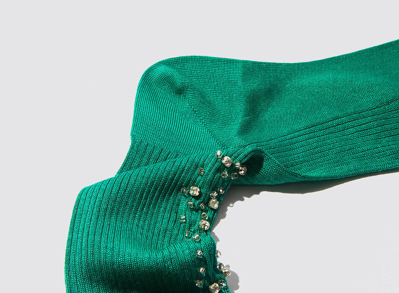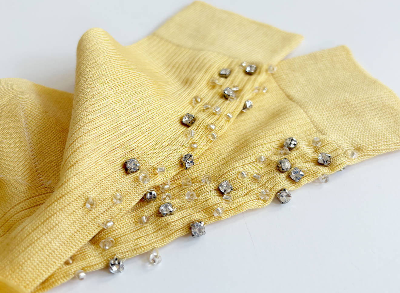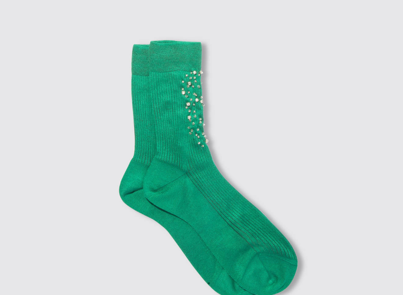Un tocco di eleganza artigianale per ogni passo. Queste calze in seta pregiata si distinguono per la texture fine e confortevole, arricchita da un ricamo realizzato interamente a mano. Le delicate applicazioni donano luce e raffinatezza, rendendole perfette per aggiungere un dettaglio prezioso a ogni look.