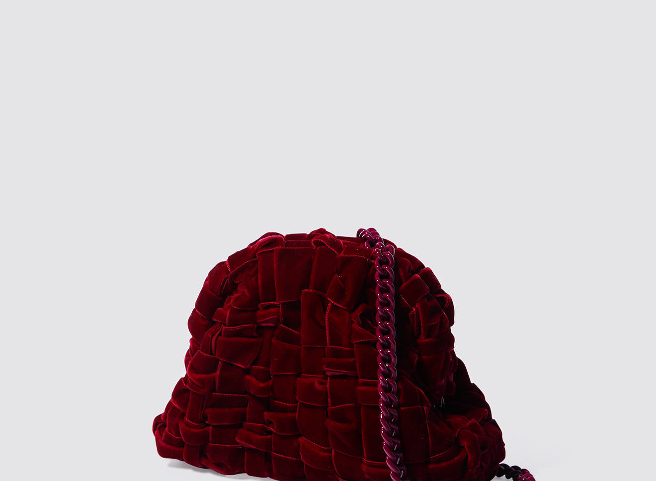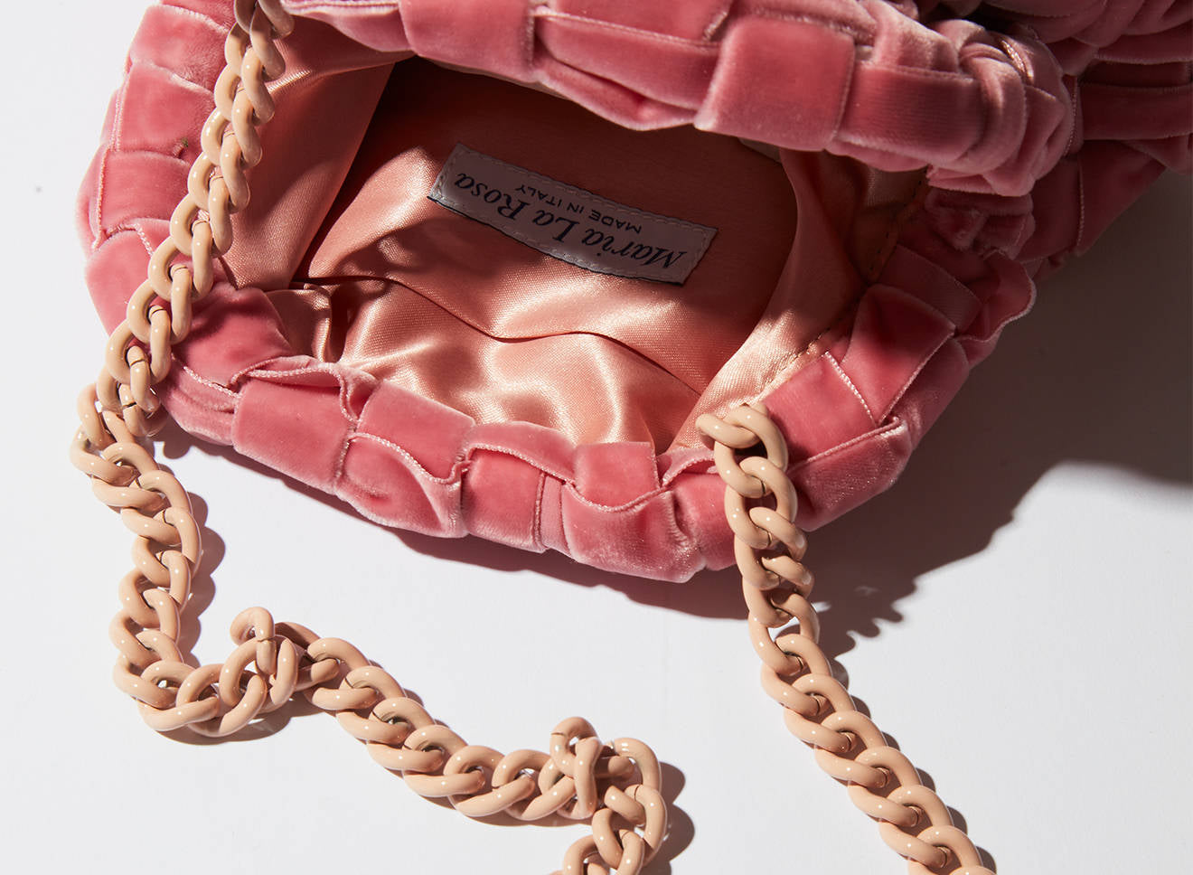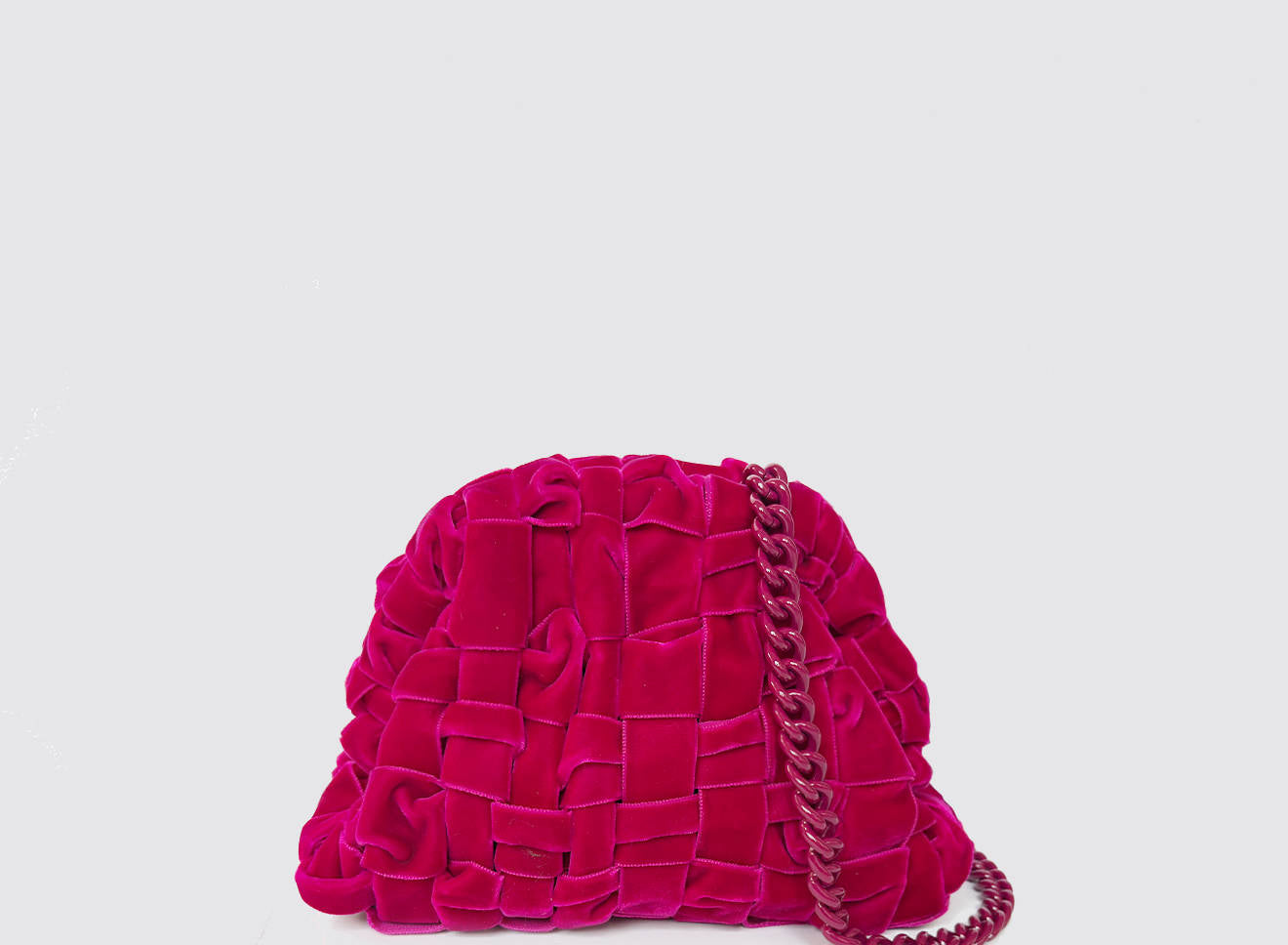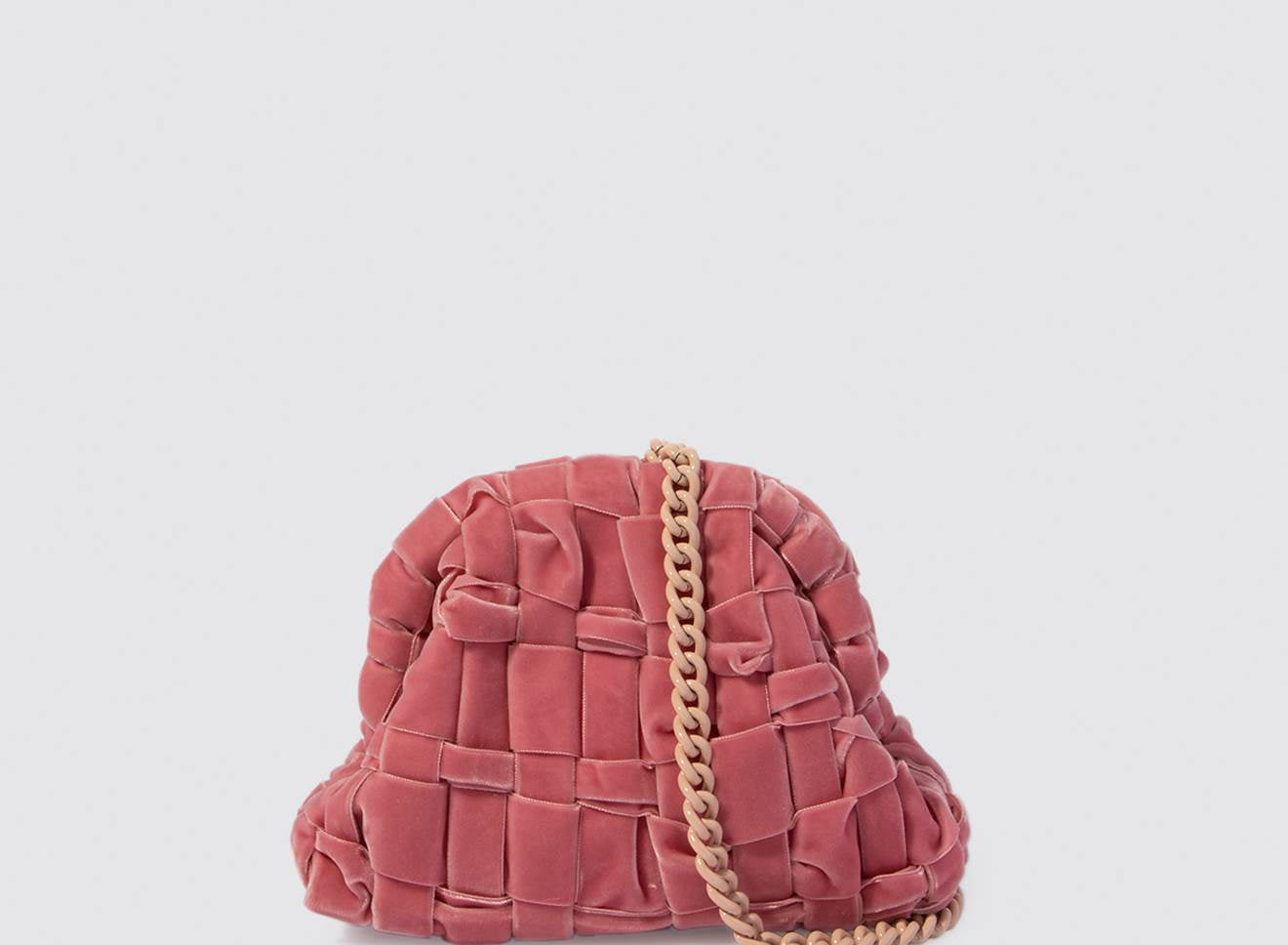 Clutch da donna di piccole dimensioni in tessuto di nastro di velluto intrecciato, realizzato a mano su antichi telai. Questo modello costituisce l’icon bag Maria La Rosa, perfetta per la stagione invernale, emblema di una nuova eleganza metropolitana, che assicura capienza e funzionalità.