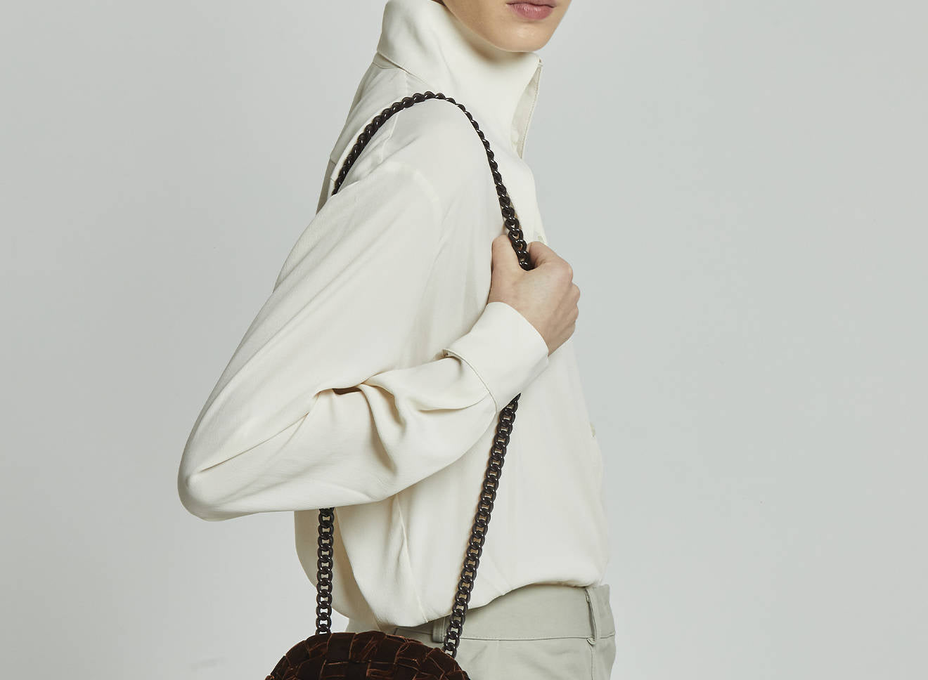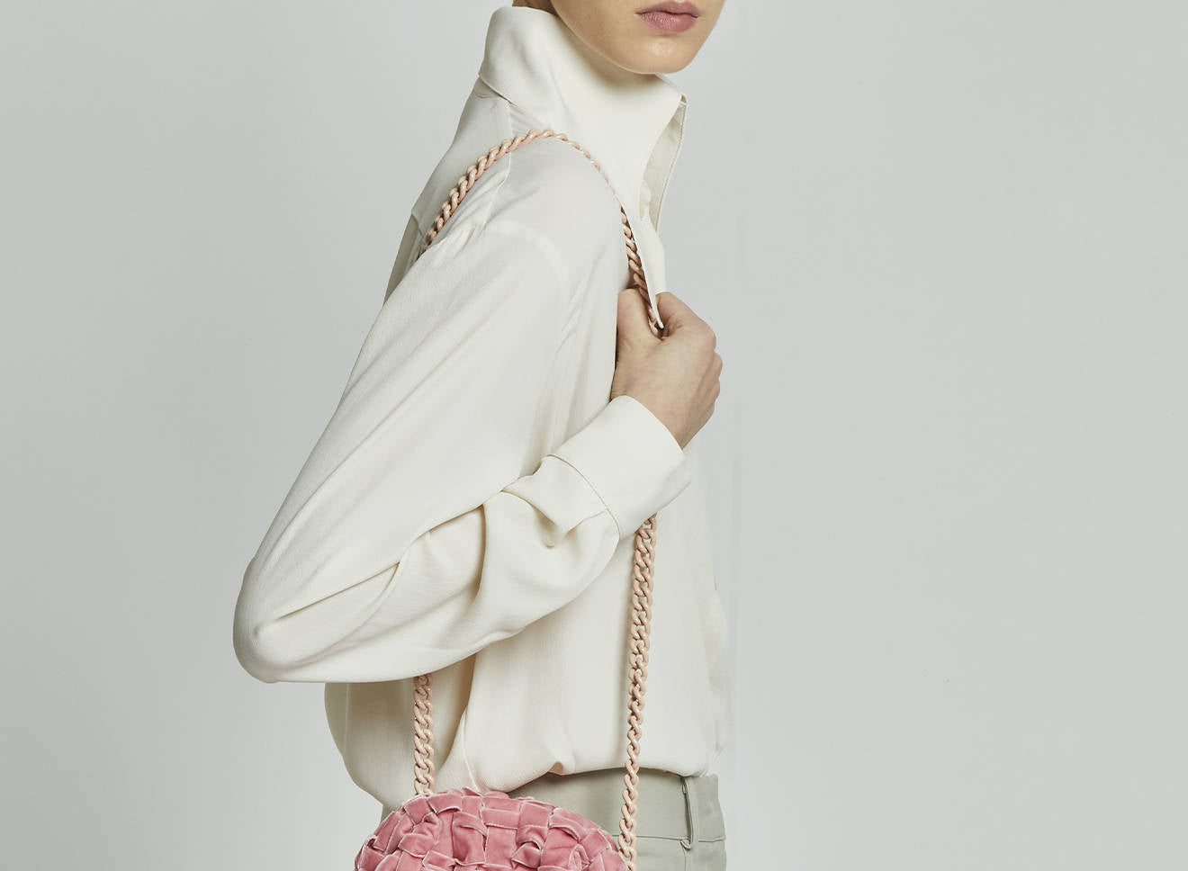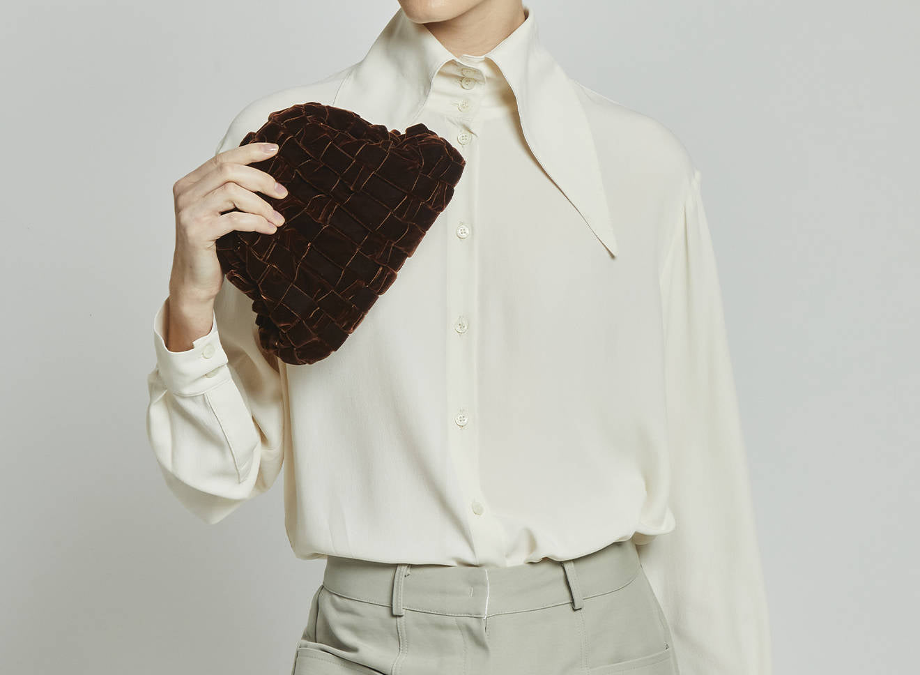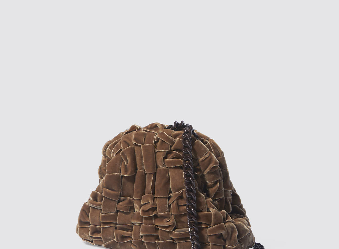 Clutch da donna di piccole dimensioni in tessuto di nastro di velluto intrecciato, realizzato a mano su antichi telai. Questo modello costituisce l’icon bag Maria La Rosa, perfetta per la stagione invernale, emblema di una nuova eleganza metropolitana, che assicura capienza e funzionalità.
