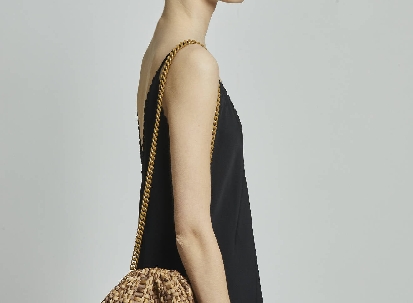 È dotata di catena ton sur ton per indossarla anche a tracolla.