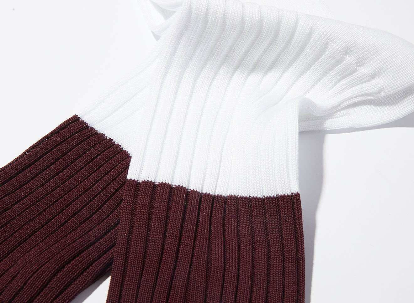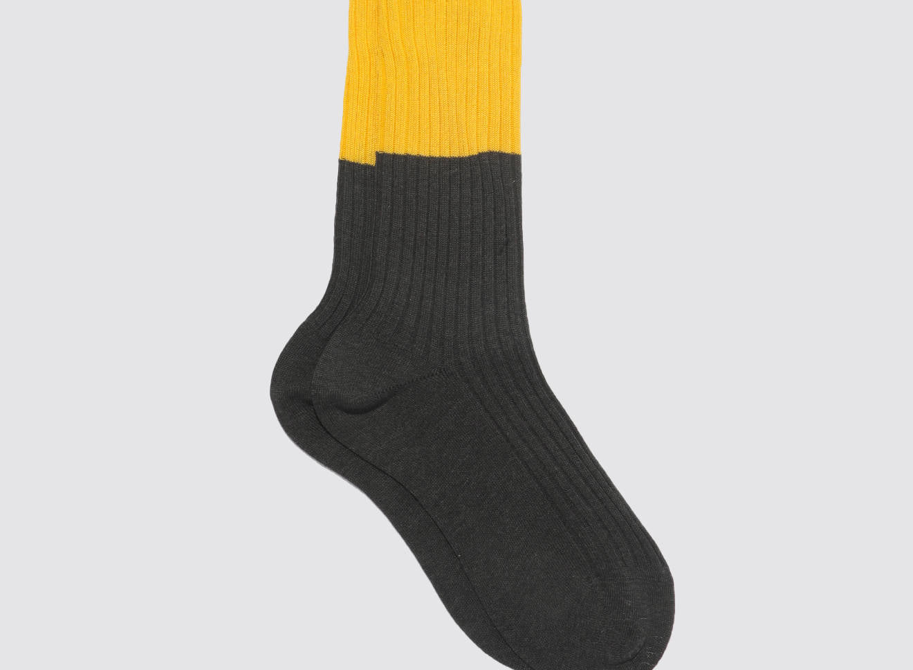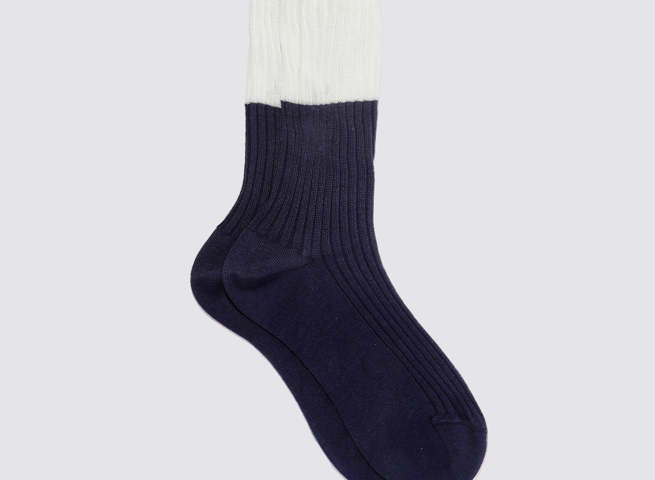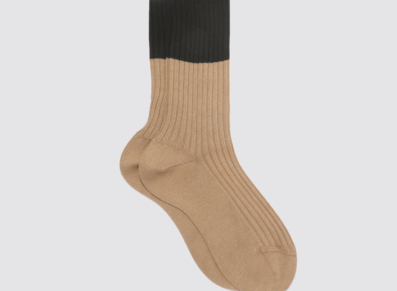 Calzini da donna in cotone, a costine, impreziosite da elastico a contrasto nella parte superiore.