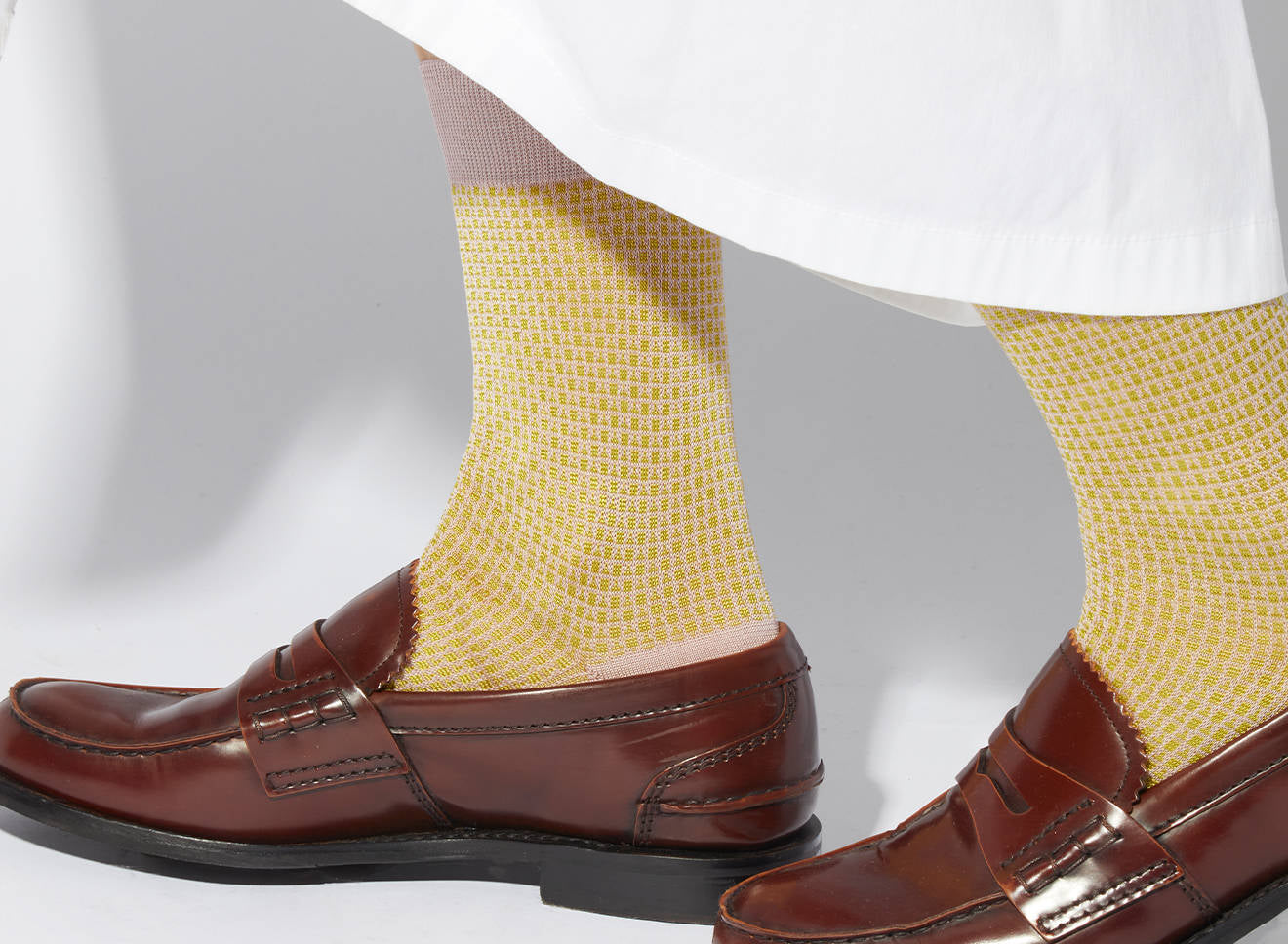 Aggiungi un tocco di stile al tuo look quotidiano con queste calze dal design moderno. Garantiscono comfort e traspirabilità per tutto il giorno e offrono una sensazione morbida e leggera sulla pelle. La finitura lievemente lucida e le combinazioni cromatiche delicate e raffinate le rendono perfette per chi cerca stile e qualità in un accessorio quotidiano.